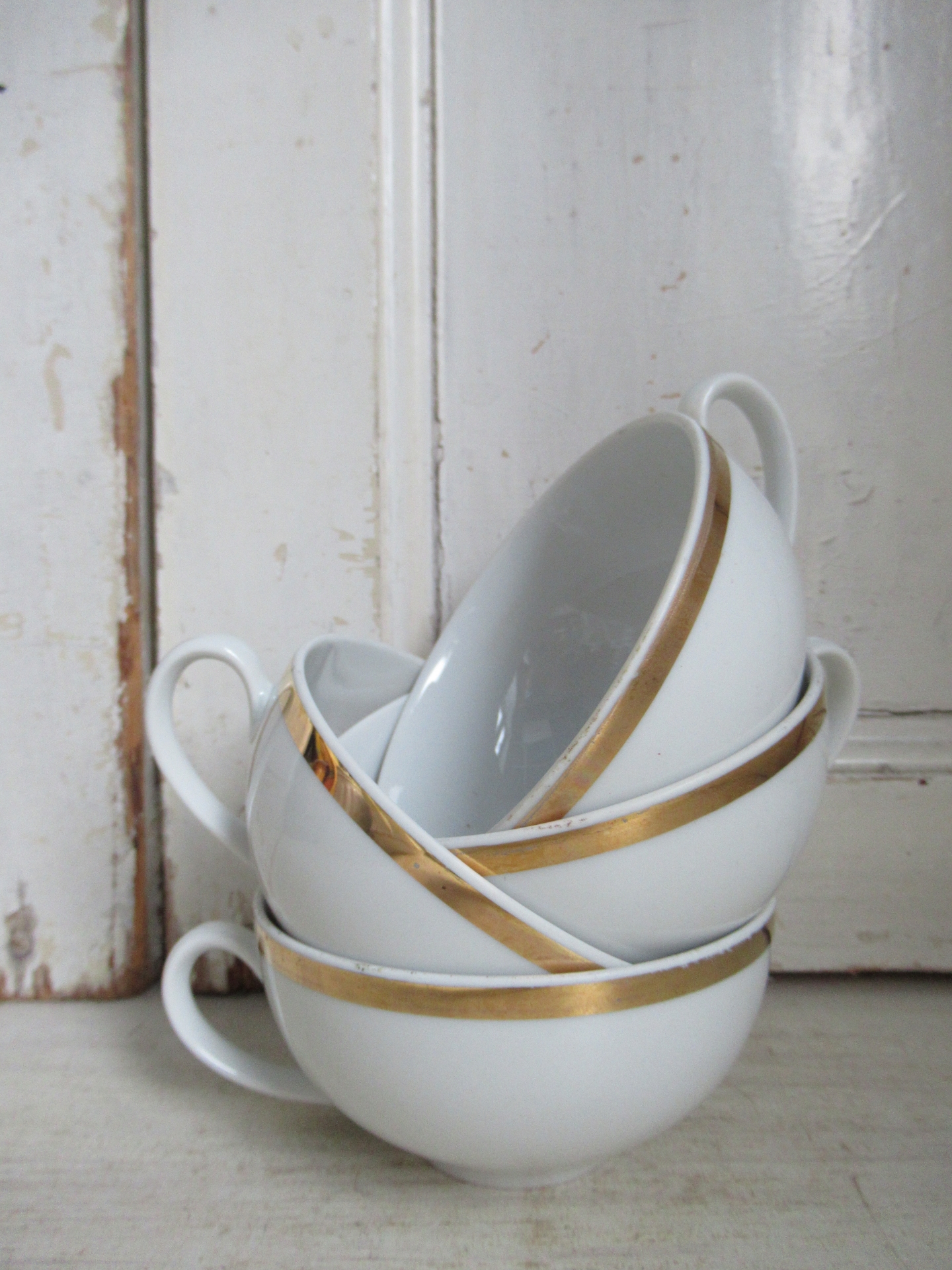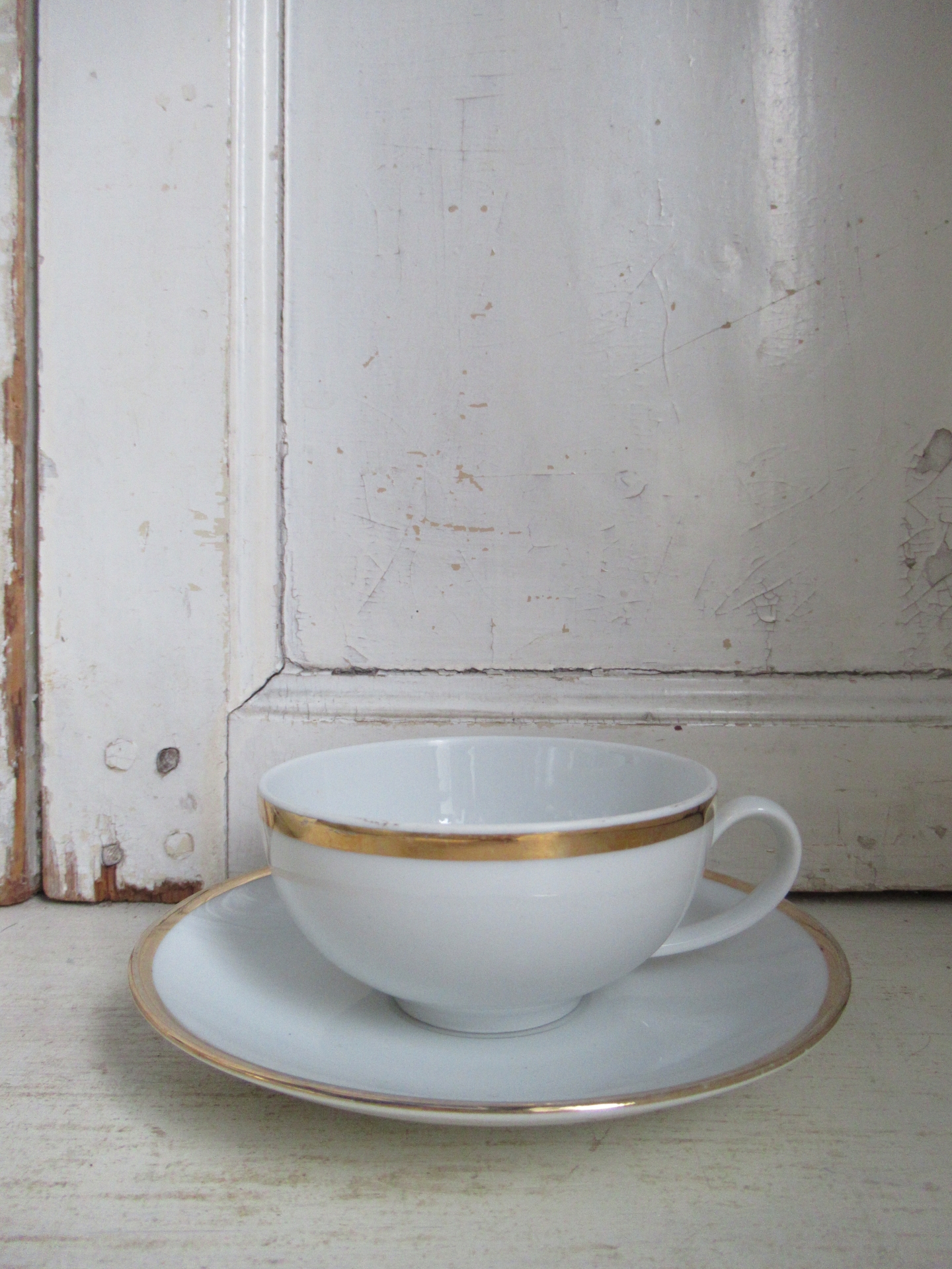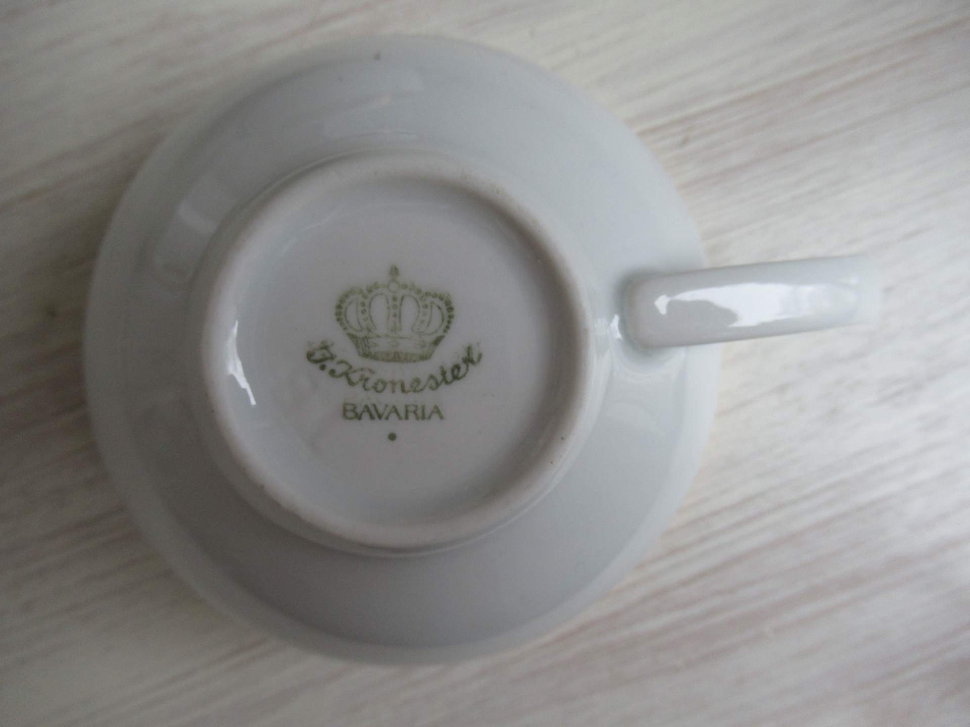 4 oude kop en schotels, 1 extra schotel, Bavaria, setprijs (doorsnede kop 9,5 cm, hoogte 5 cm)
