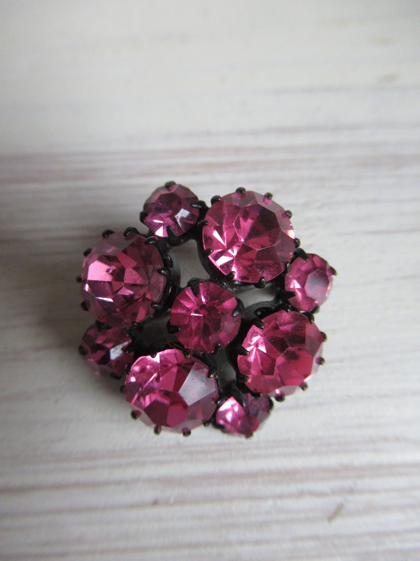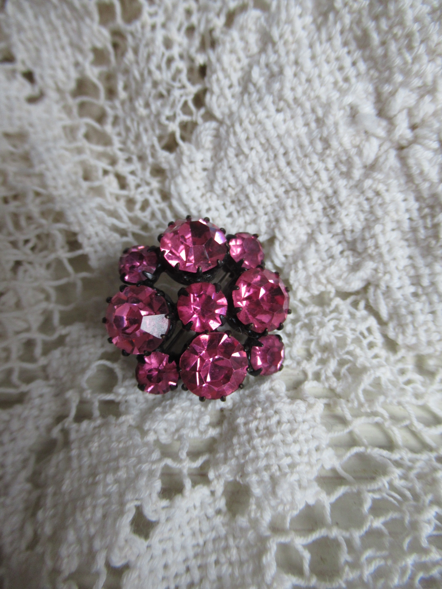 roze strass broche, niet oud wel leuk, met veiligheidssluiting (doorsnede 2,5 cm)