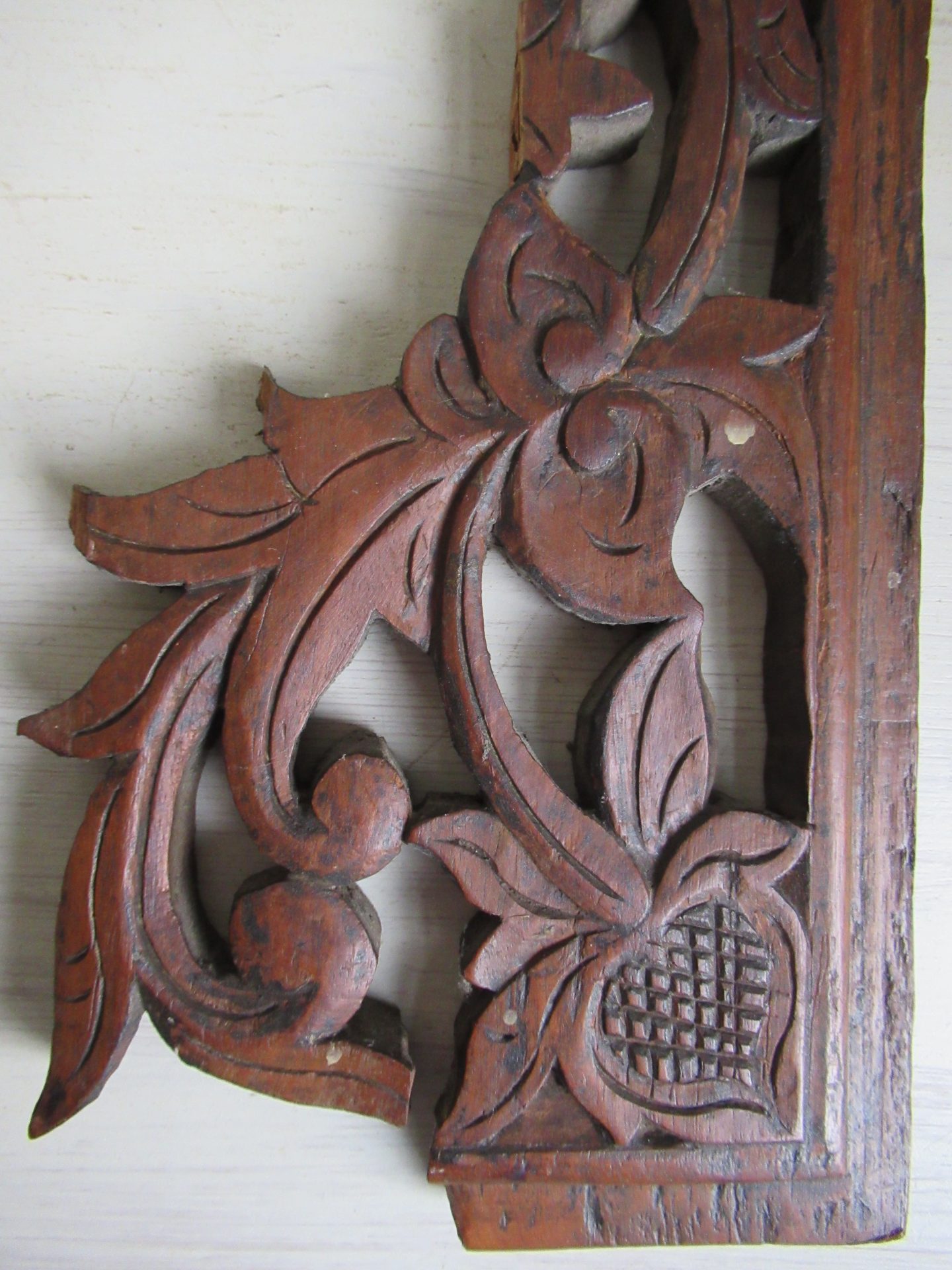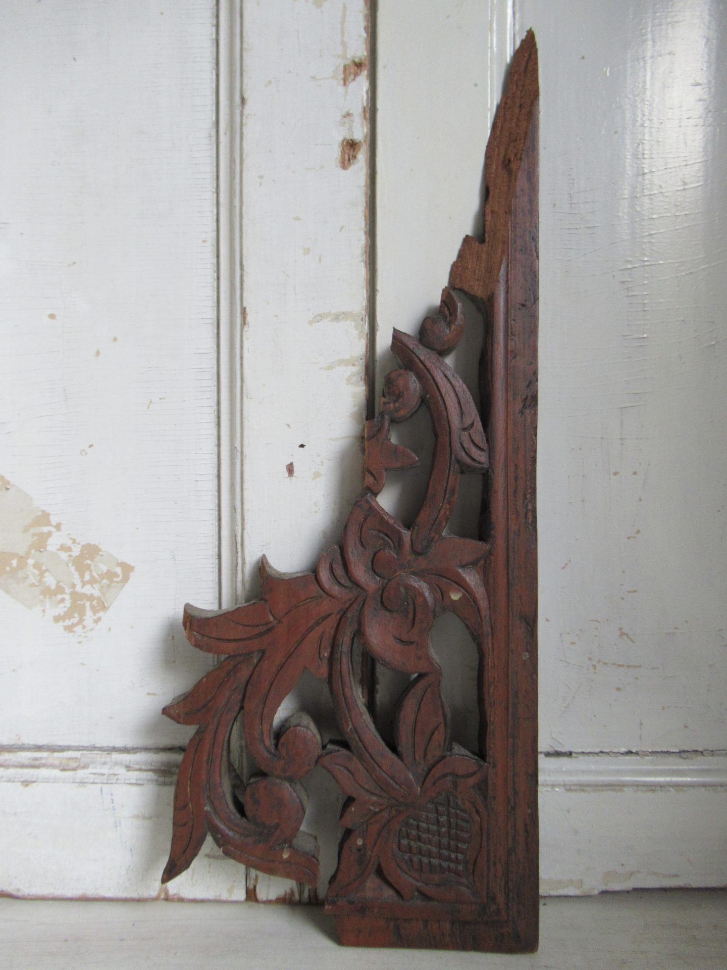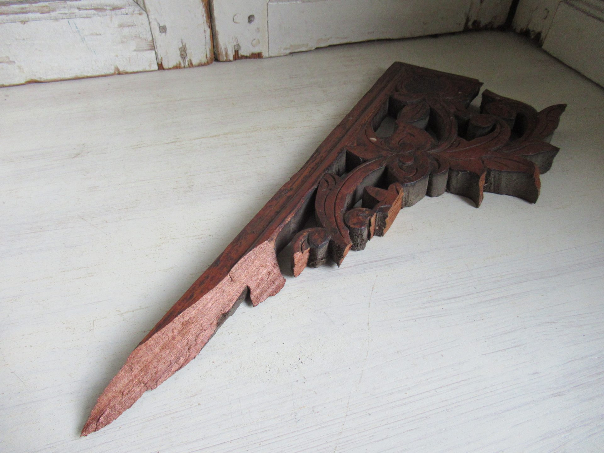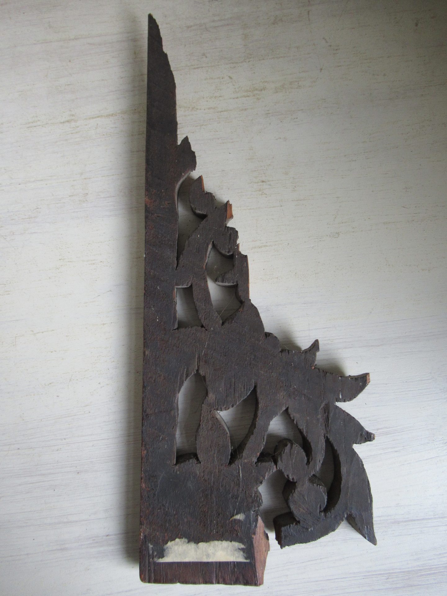 deel van een oud houtsnijwerk, afgebroken, maar nog steeds decoratief (43 bij 17 cm)