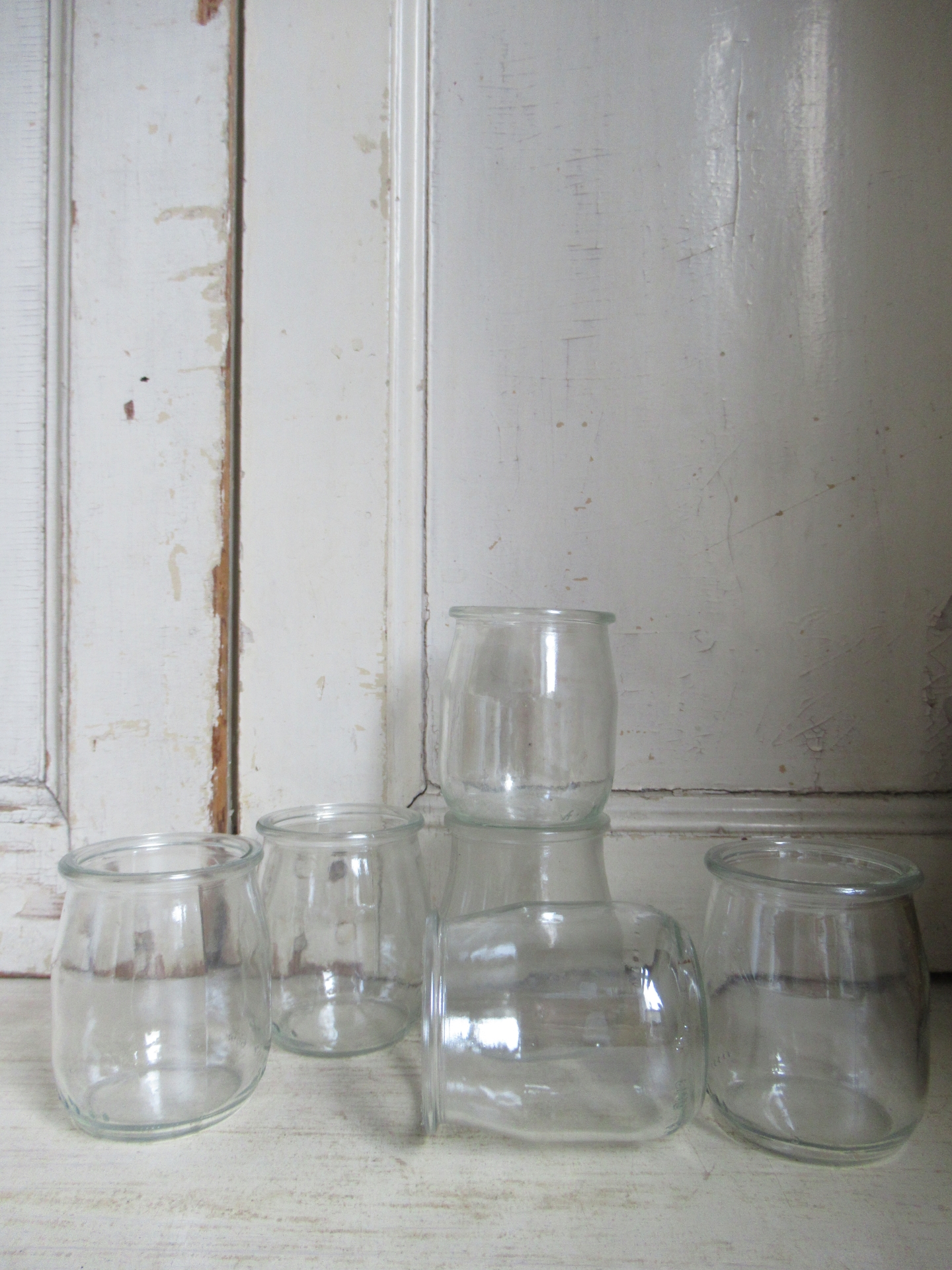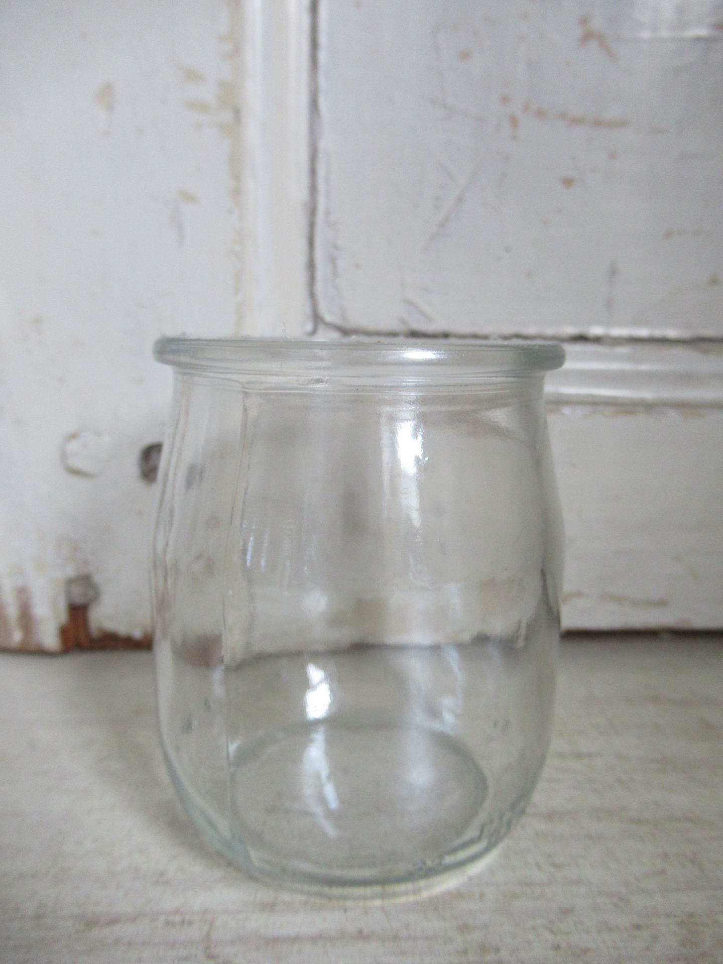klein Frans glazen potje, leuk met een lichtje, of als klein vaasje, bijvoorbeeld, prijs is per stuk (hoogte 7 cm)