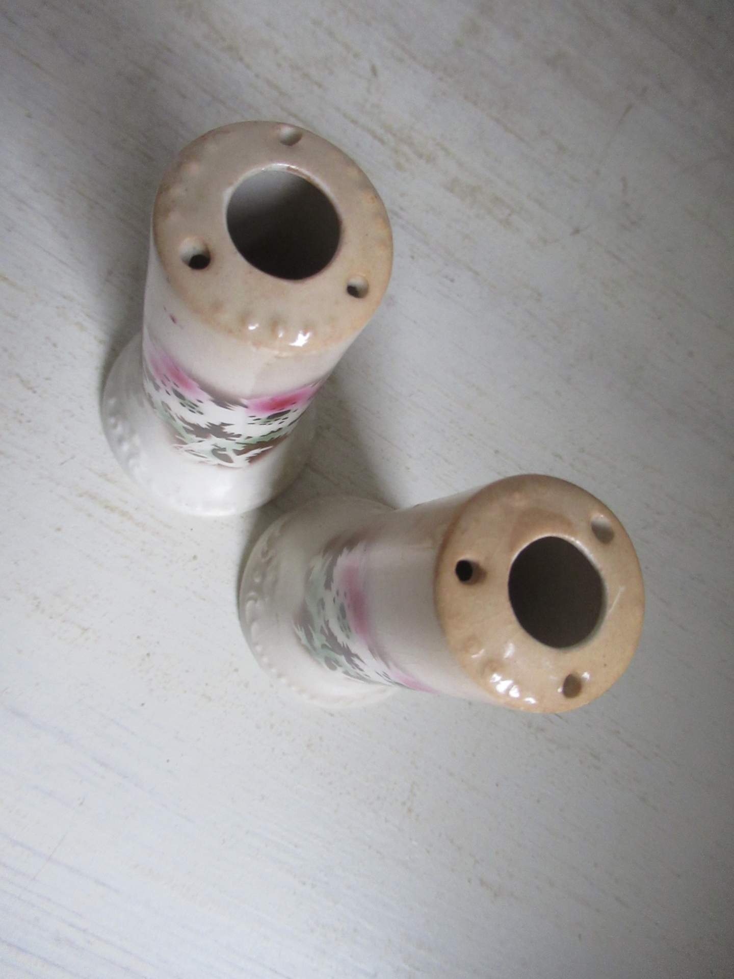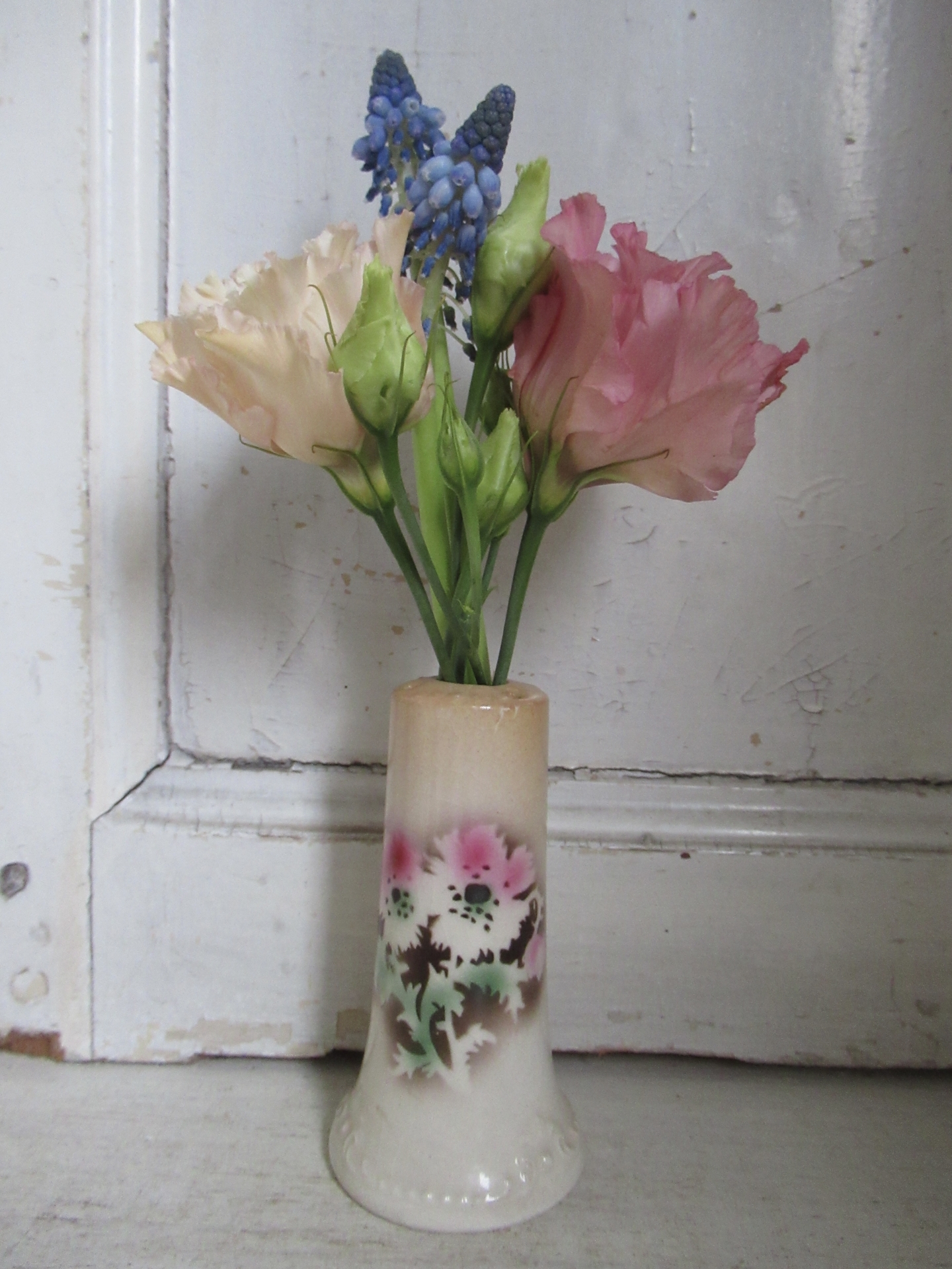 klein oud Engels vaasje, tenminste dat is wat ik ervan heb gemaakt, geen idee of dat het ook oorspronkelijk is, prijs is per stuk (hoogte 10 cm)