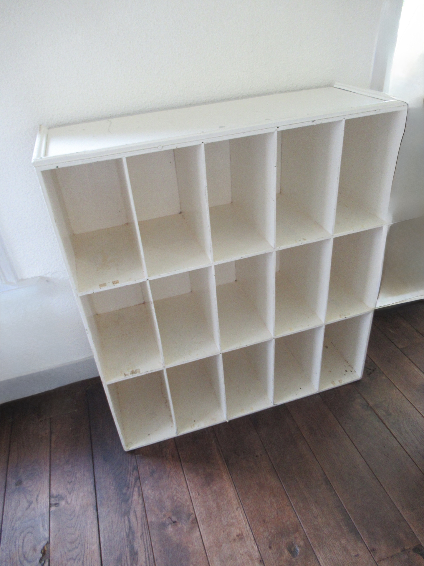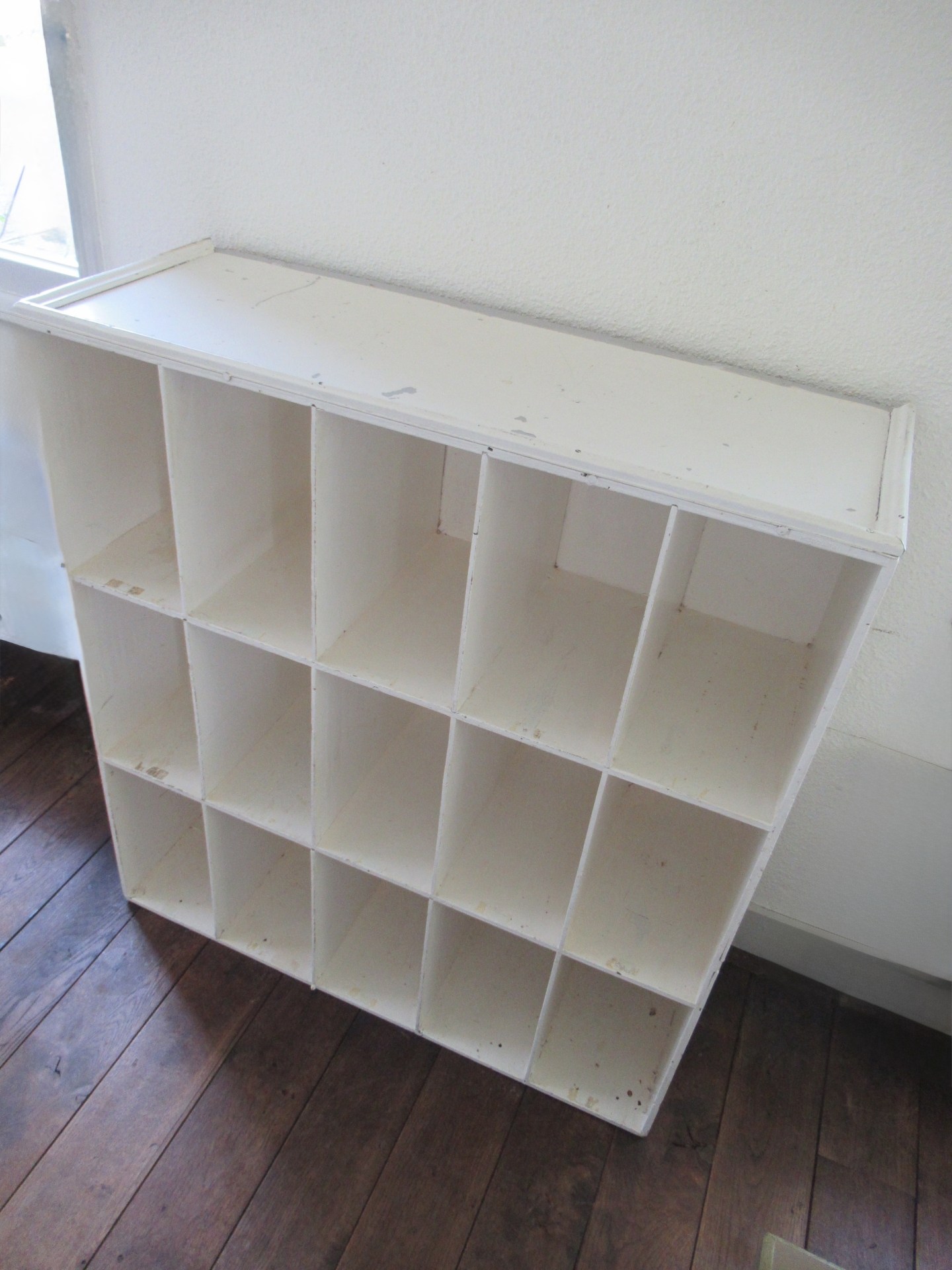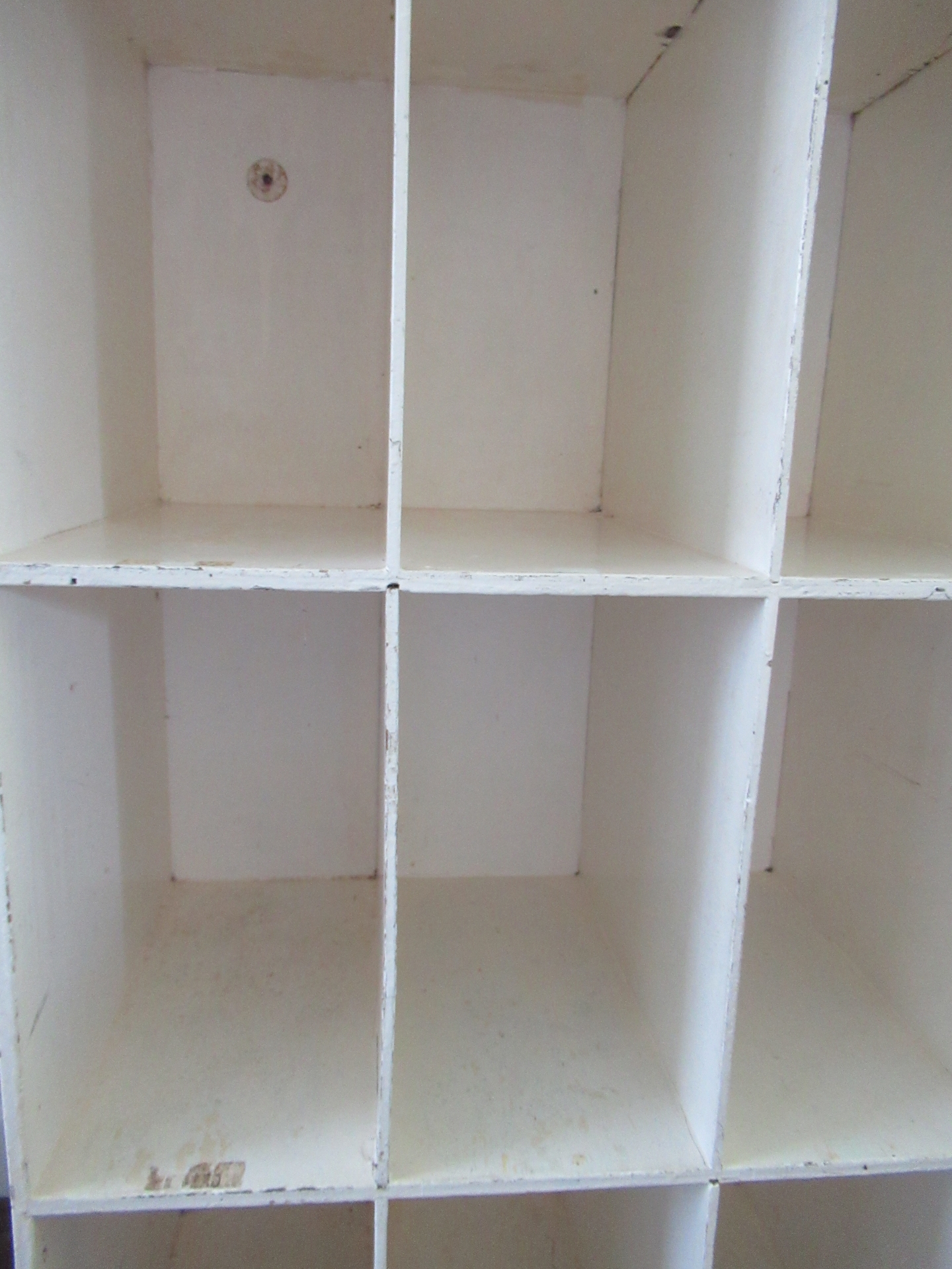 mooie oude vakkenkast, postkast, aan de bovenkant ontbreekt een sierlatje, niet storend, hij heeft gehangen: er zitten daarvoor 2 gaatjes in (94 cm breed, 102 cm hoog en 36 cm diep)