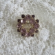 oude broche, paarse strass steentjes in zilverkleurig metaal, strikje, met veiligheidssluiting (3,5 bij 3 cm)