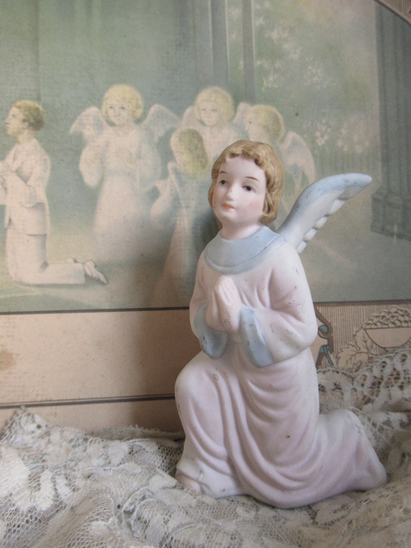 oud engeltje, biscuit porselein (hoogte 11 cm)