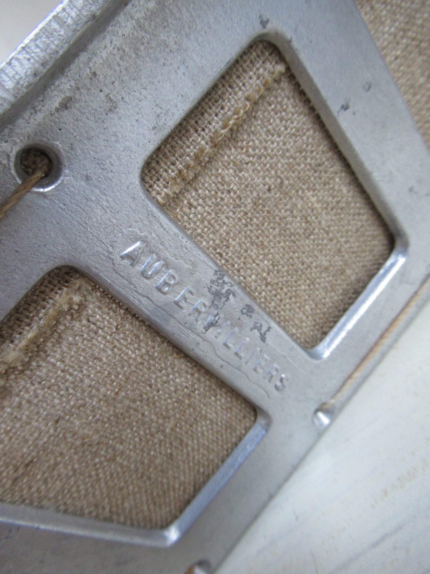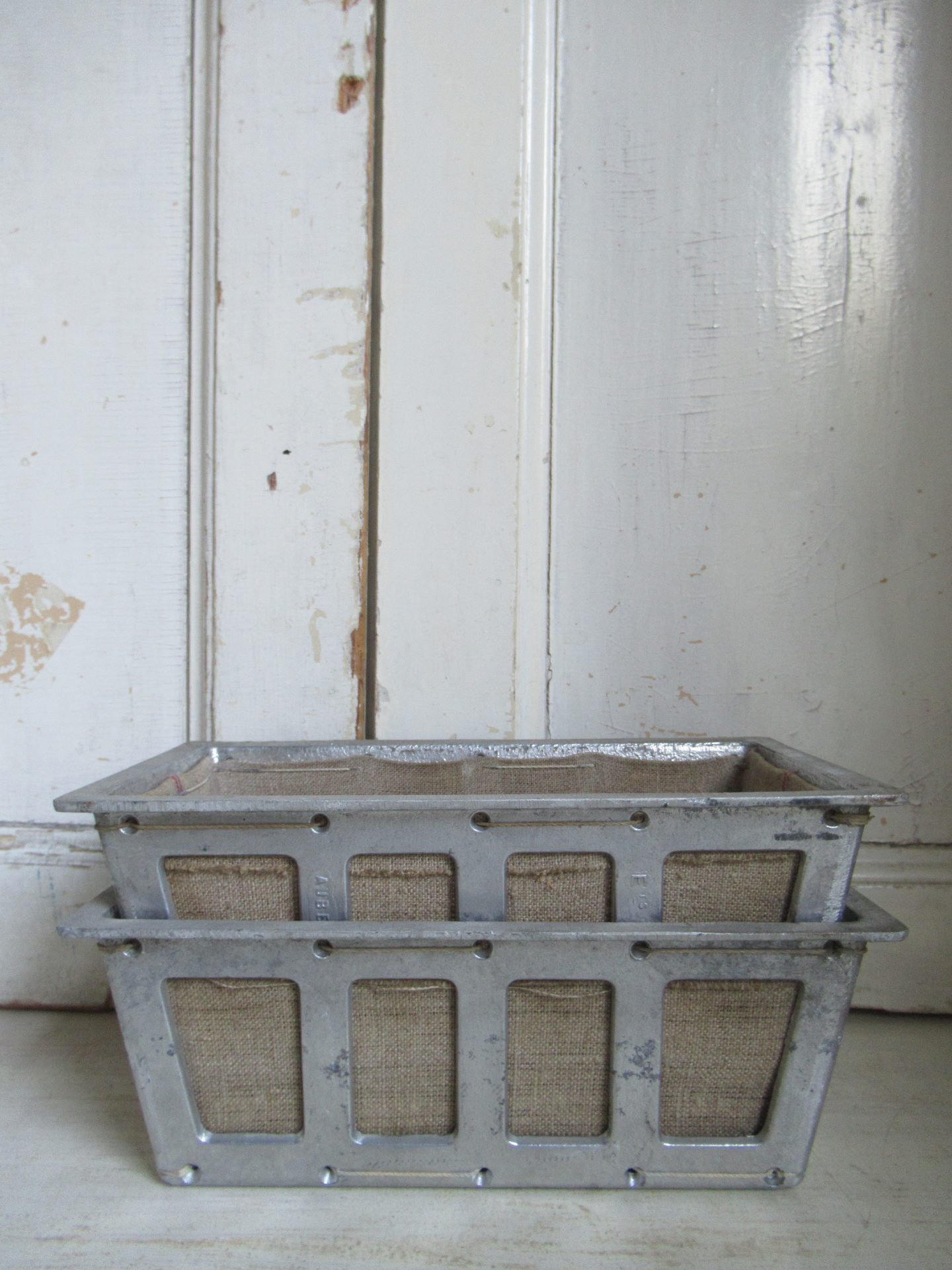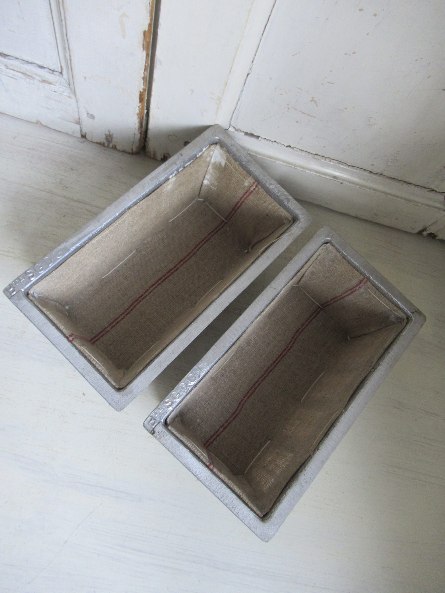 oud Frans bakje, zink aan de binnenkant bekleed met jute, geen idee waar dit voor gebruikt werd, prijs is per stuk (23 bij 12 cm, hoogte 8 cm)