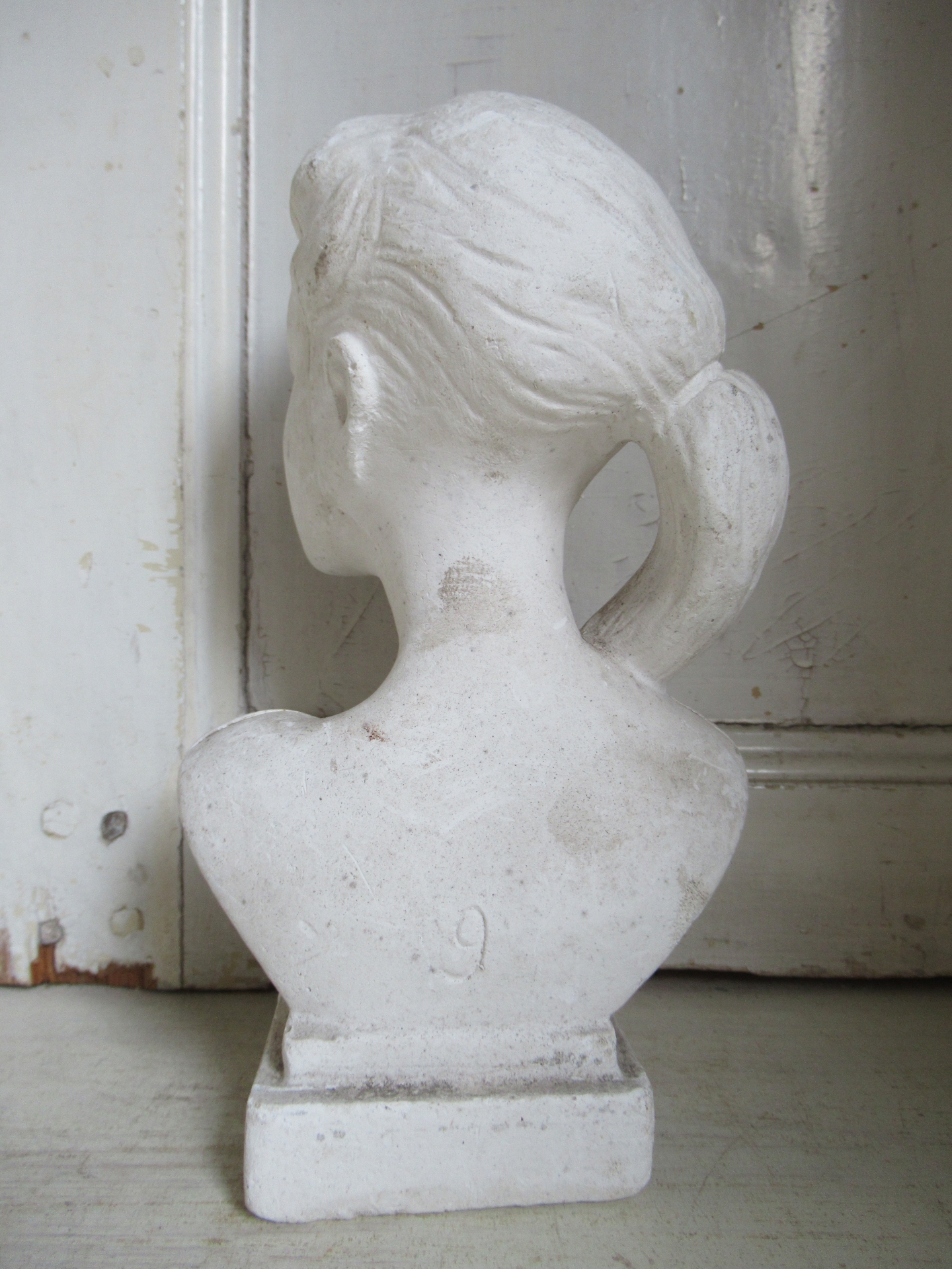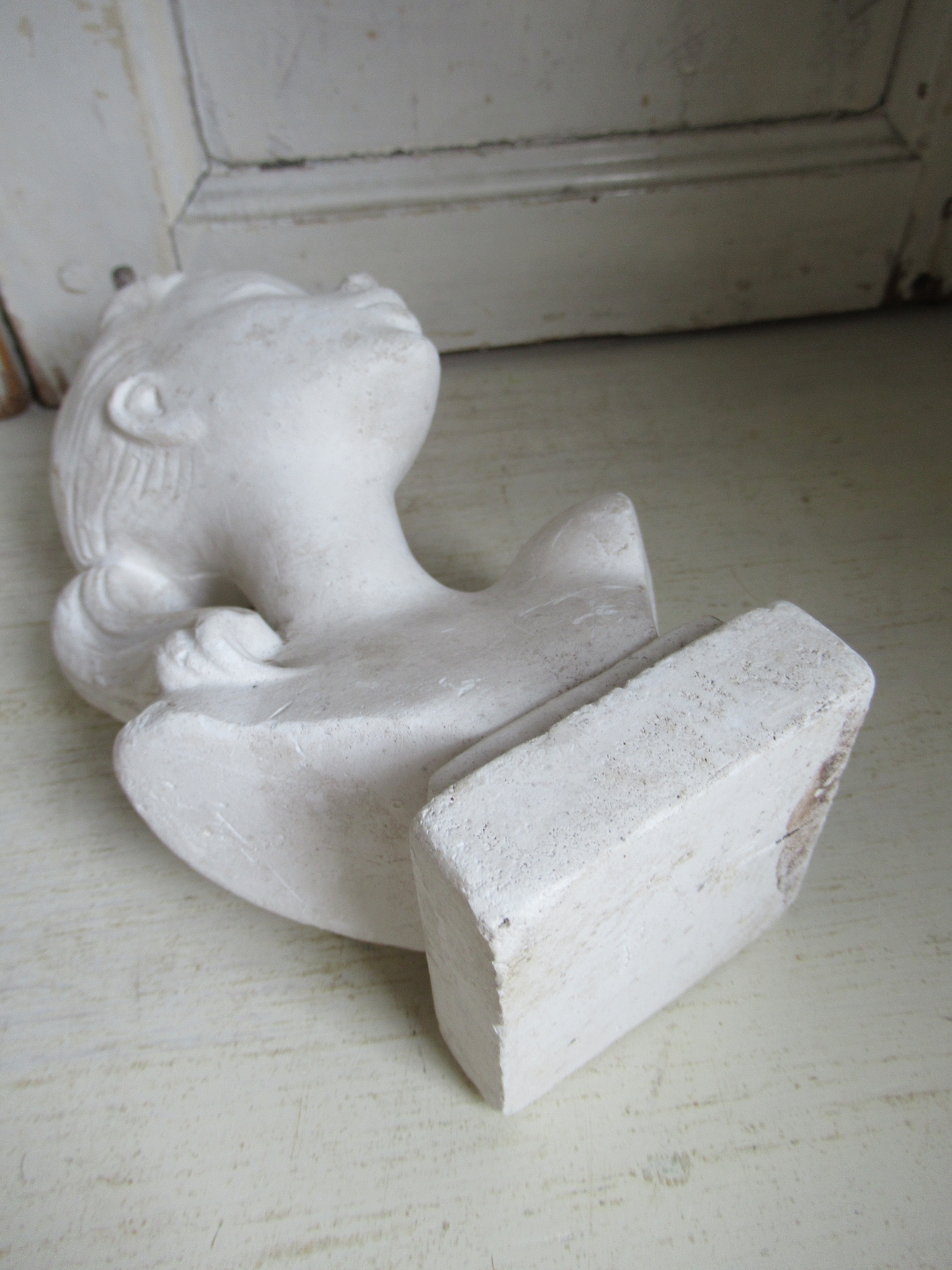 oud Frans beeldje, schattig meisjeshoofd, heeft een ‘vouw’ in het gips aan 1 kant, niet storend, verder wat hele lichte beschadigingen, aan de achterkant genummerd (hoogte 20 cm)