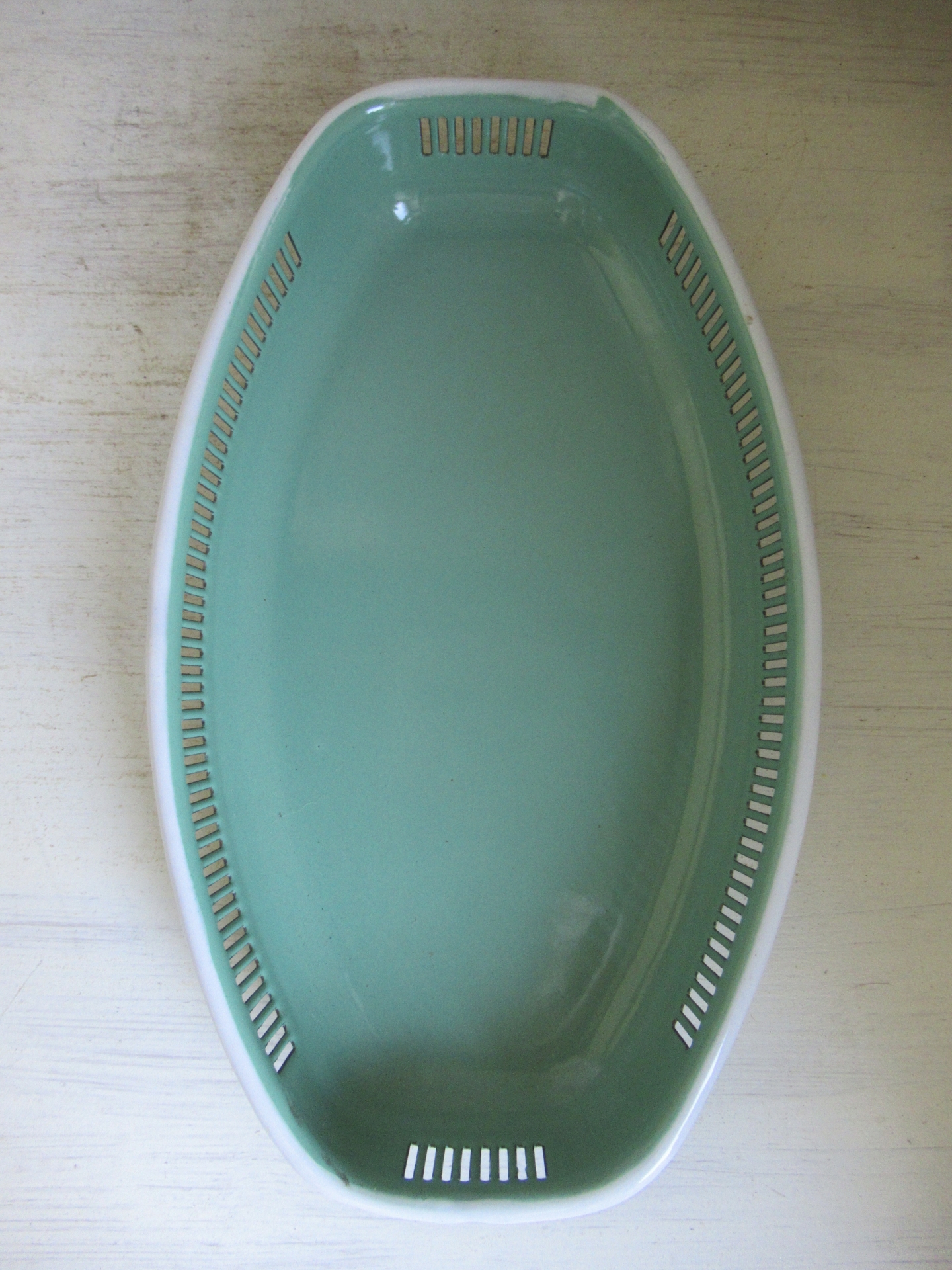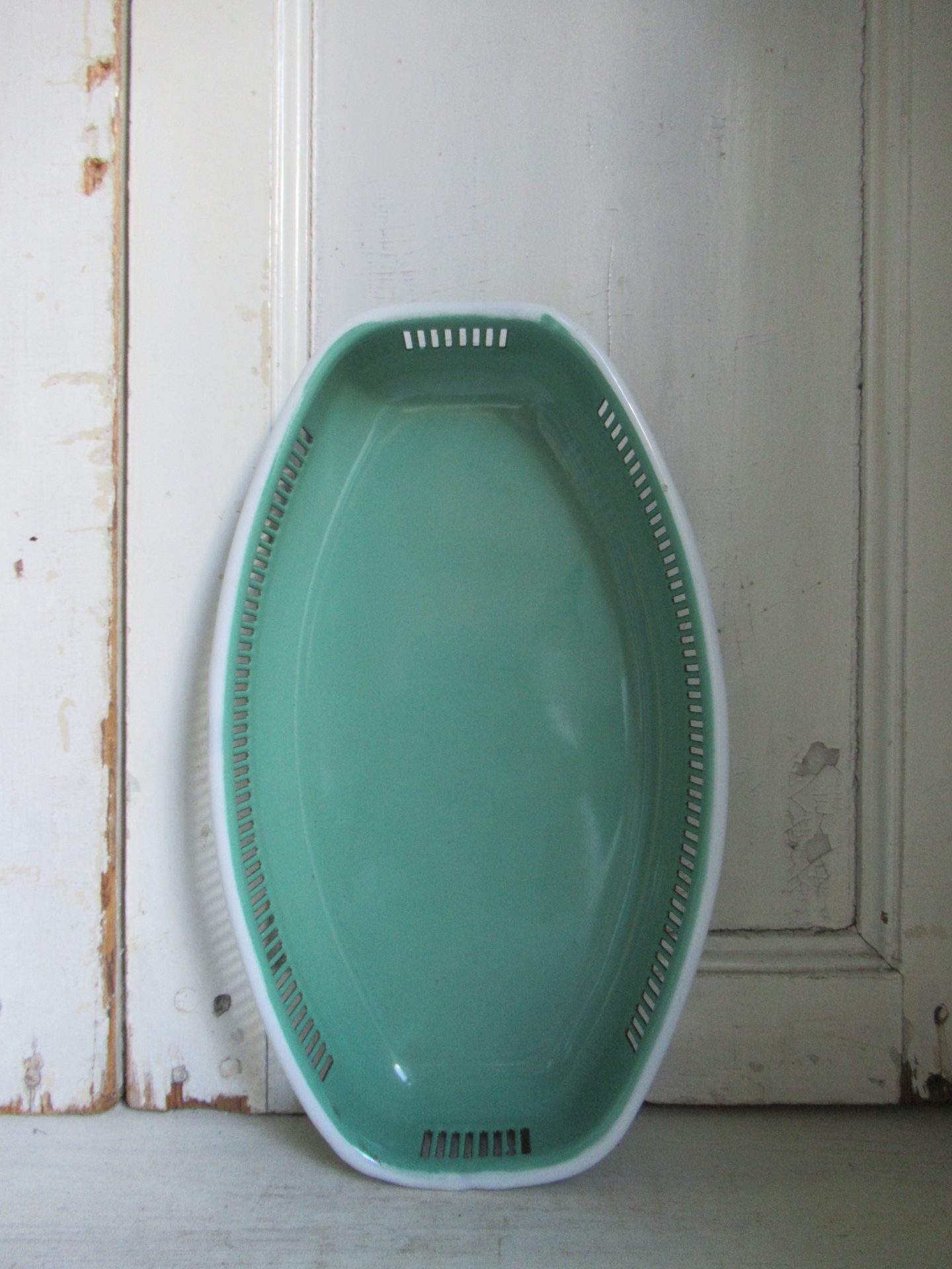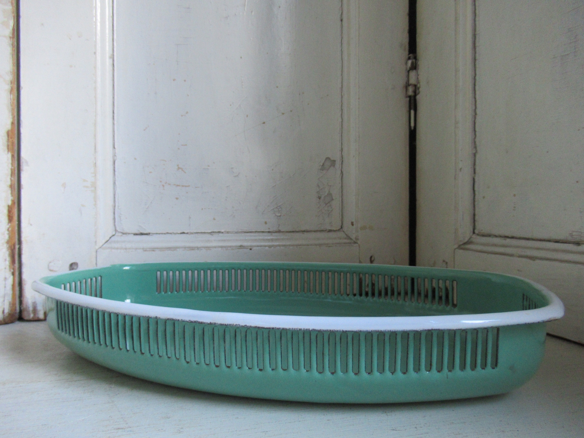 oud Frans emaille broodmandje, in prachtige staat (31,5 bij 19 cm, hoogte 5 cm)