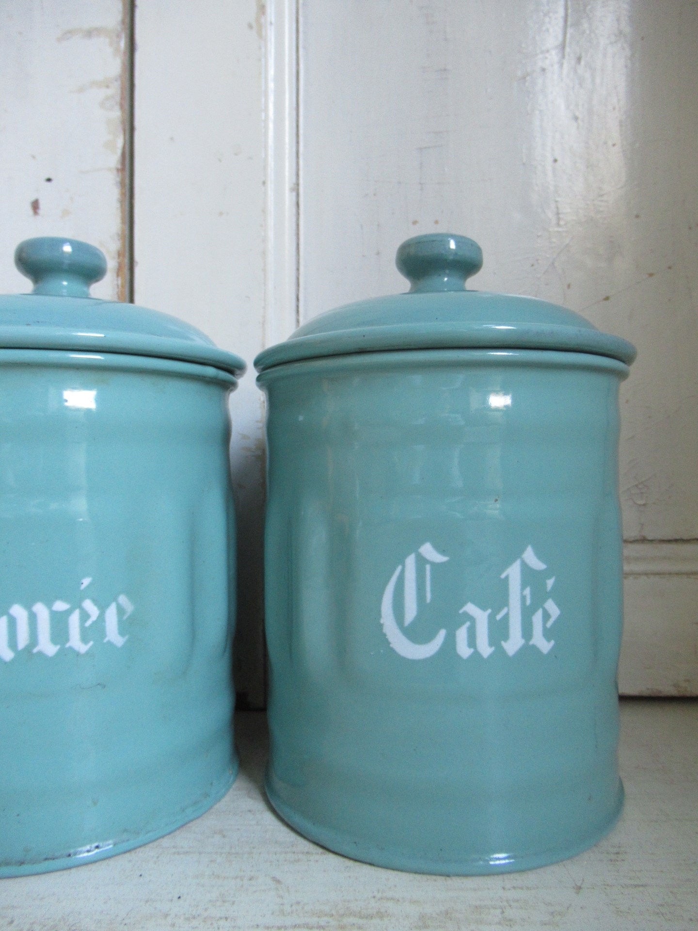 oud Frans emaille voorraadblik, Café