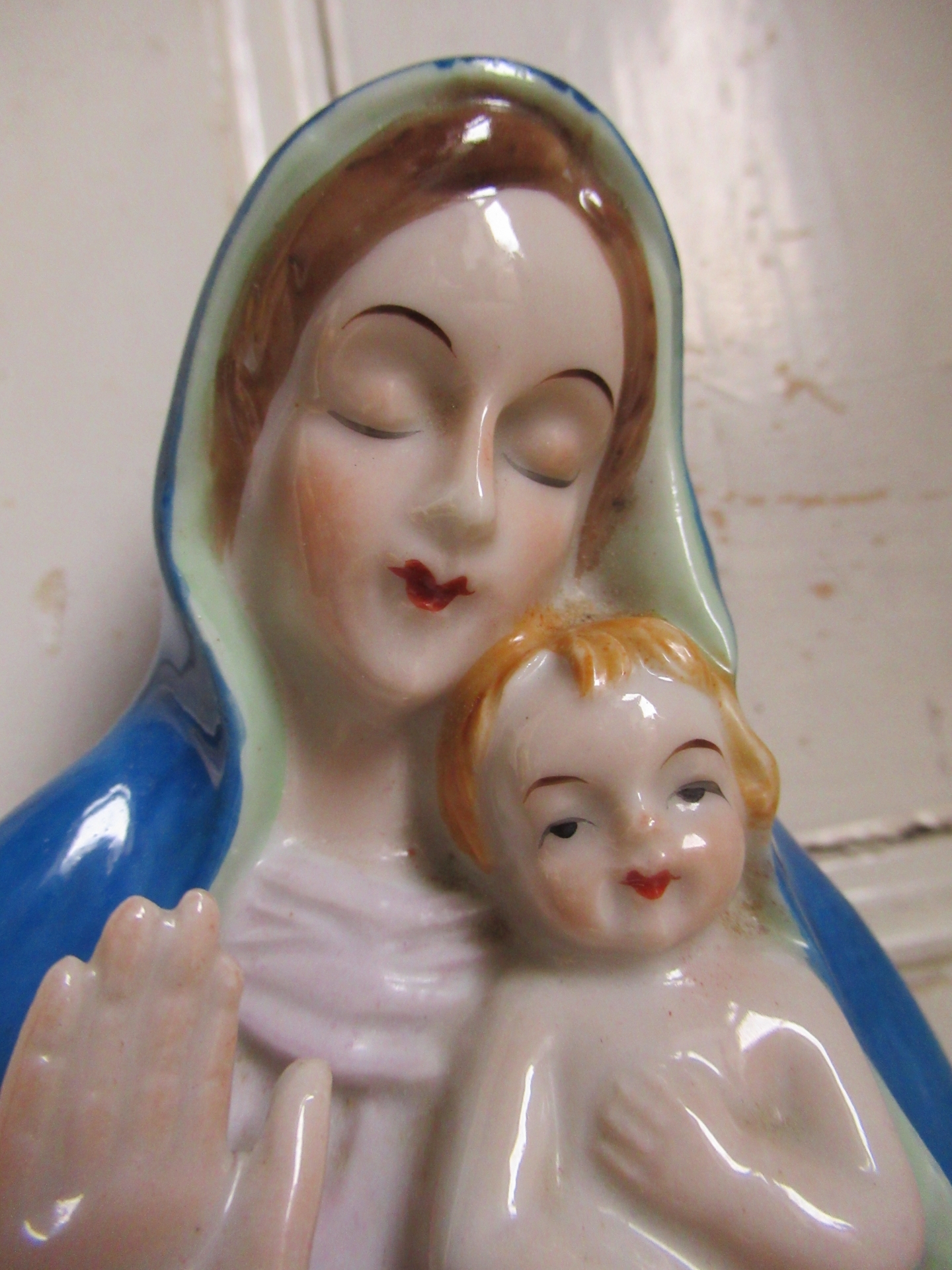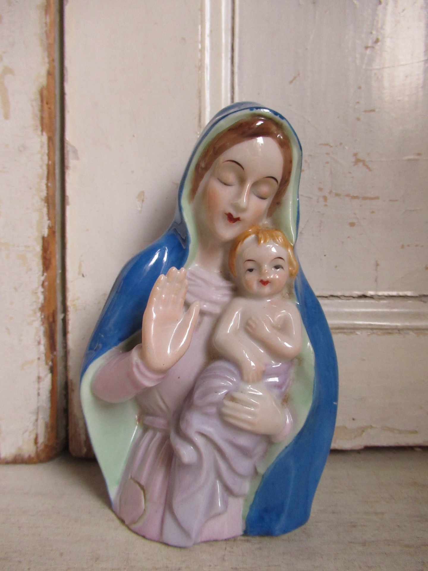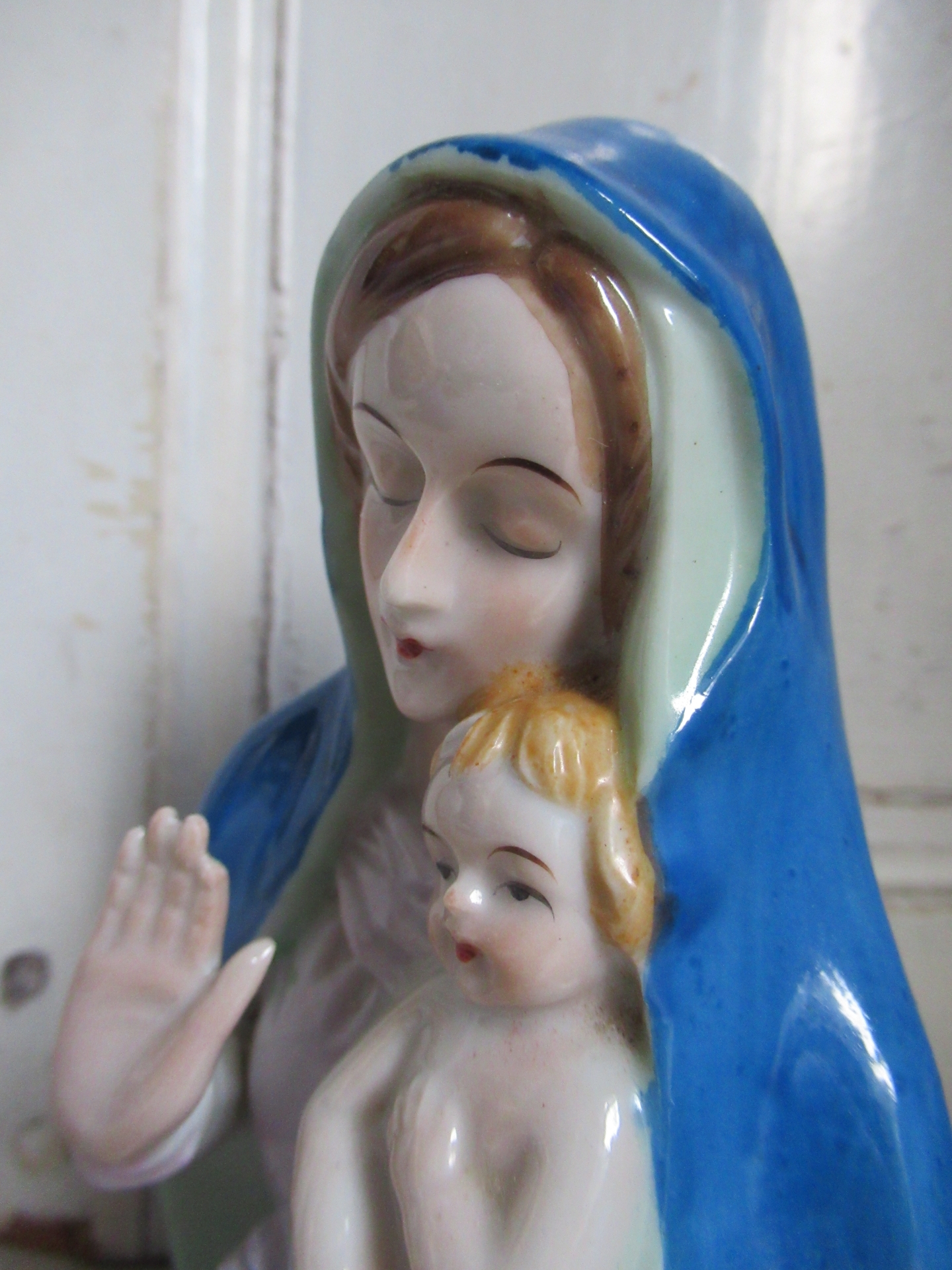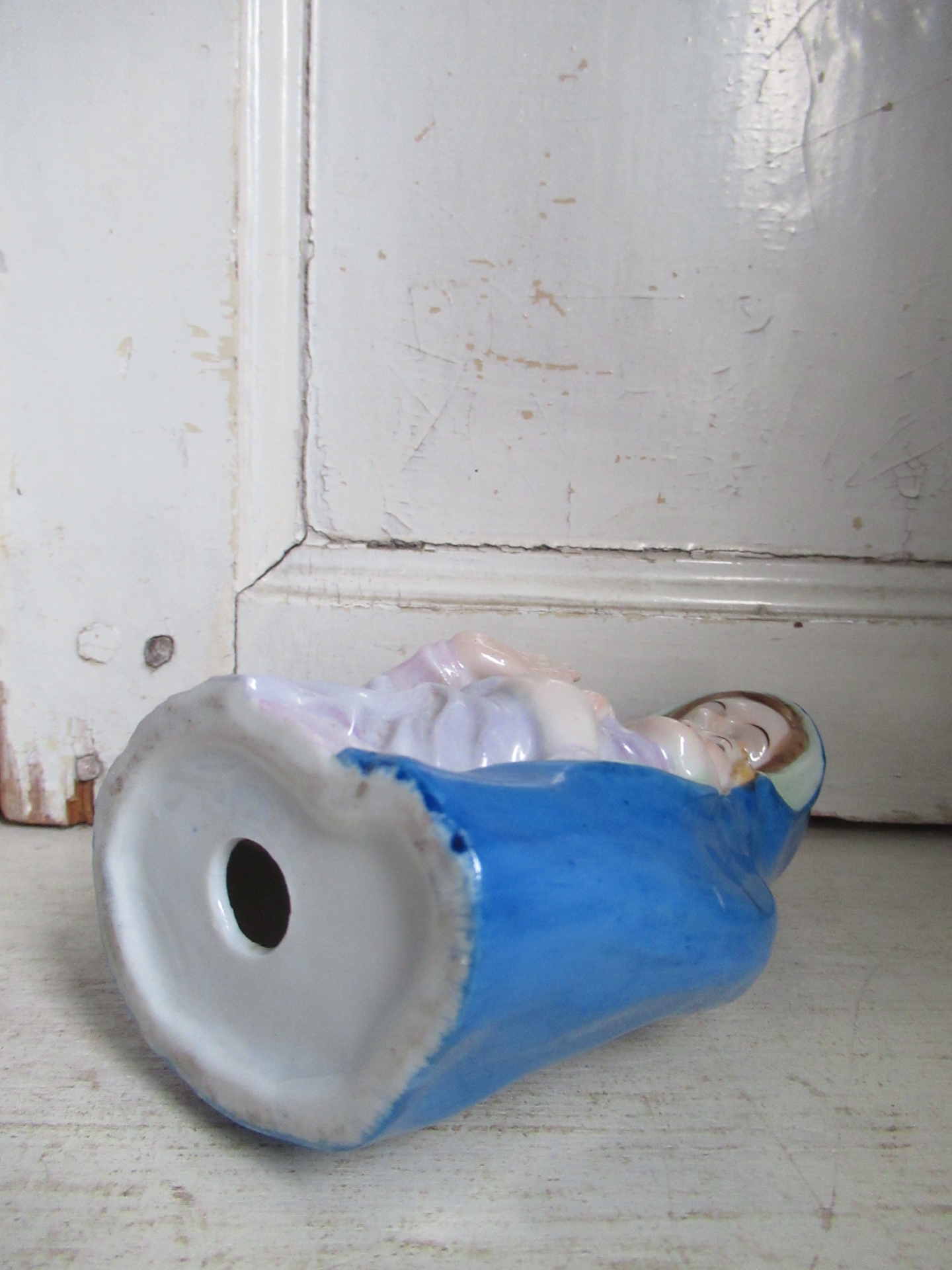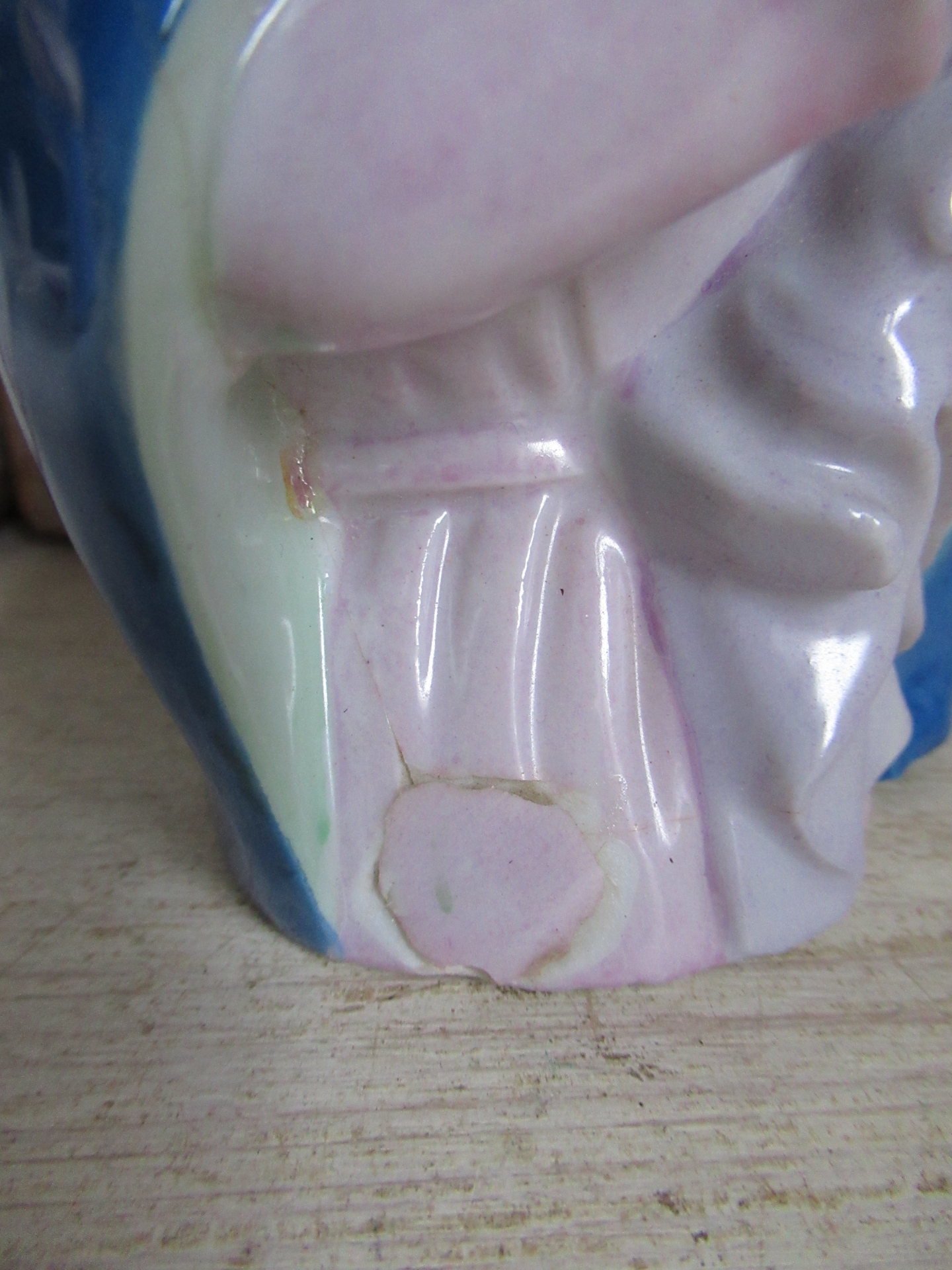 oud Frans heiligen beeldje, aan de onderkant lijkt een stukje geplakt te zijn, valt niet erg op, mondjes zijn in de vorm van hartjes (hoogte 14 cm)