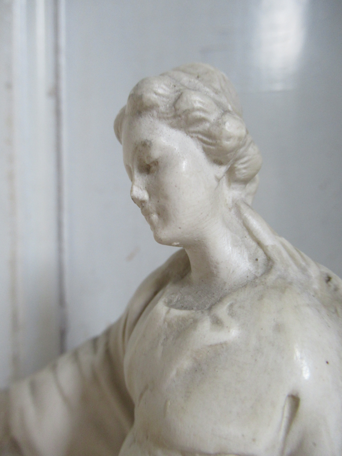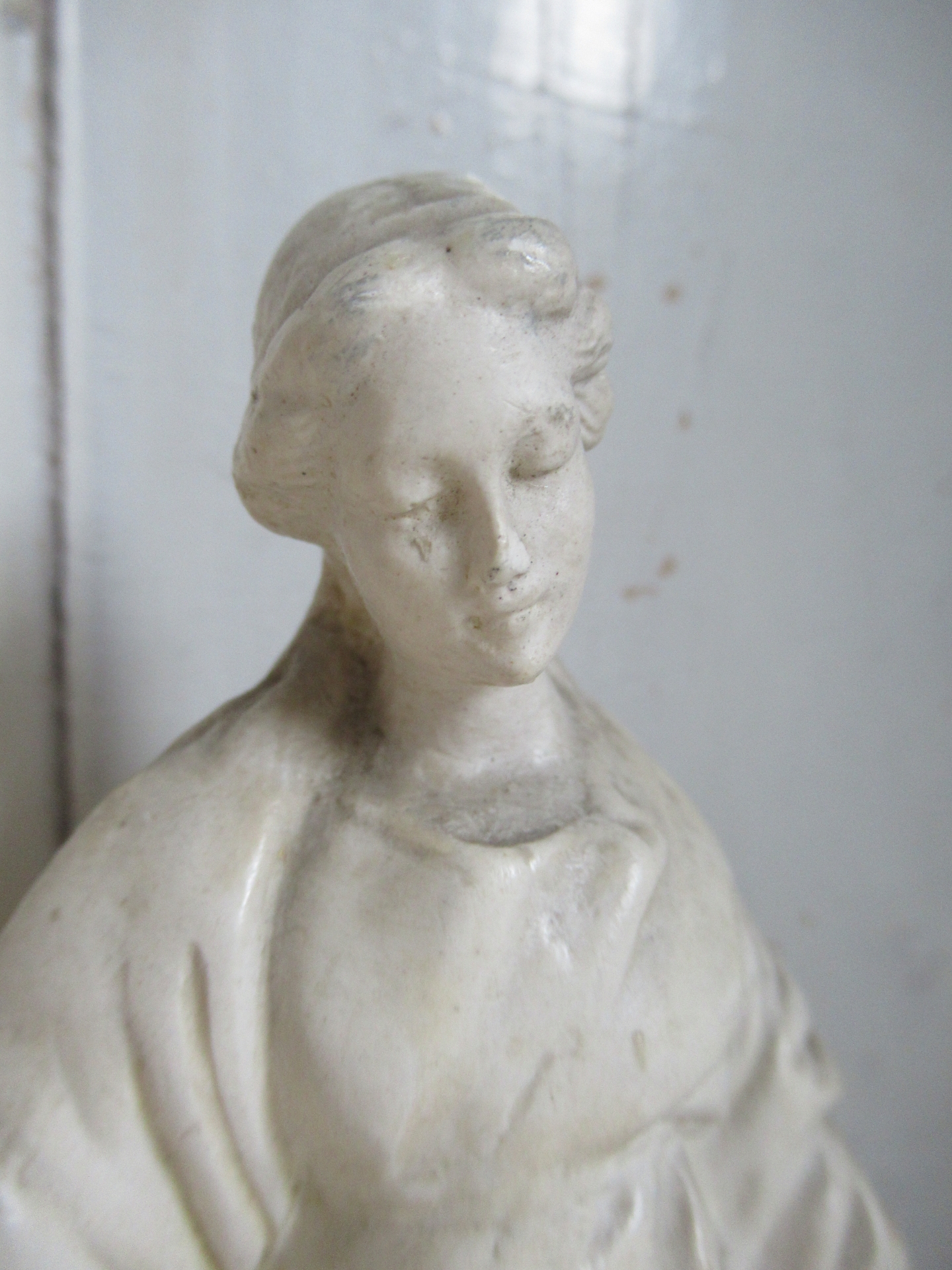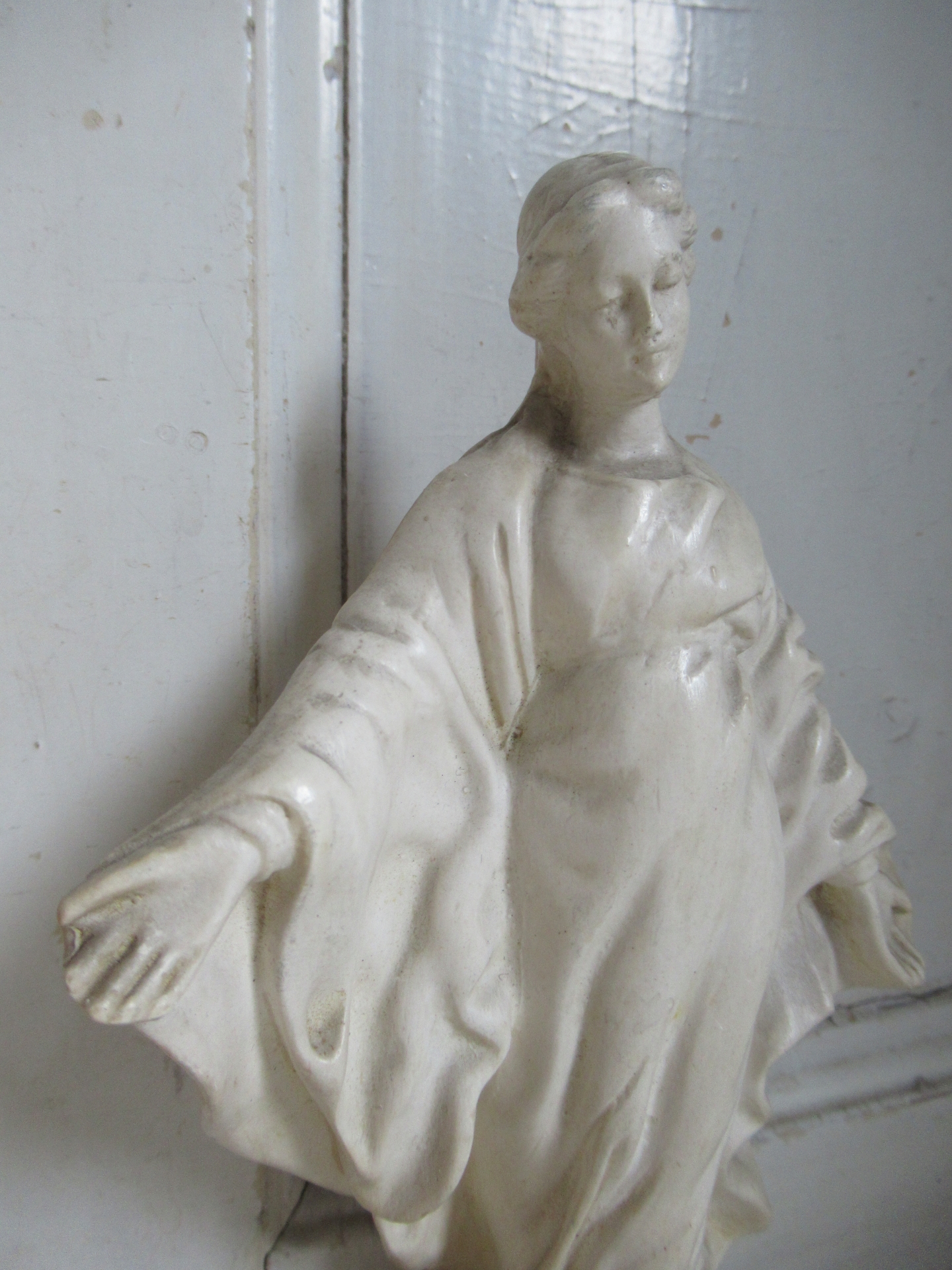oud Frans heiligen beeldje, Vierge du Sourire (maagd van de glimlach), mist een heel klein schaafje aan de neus, valt nauwelijks op (hoogte 21 cm)