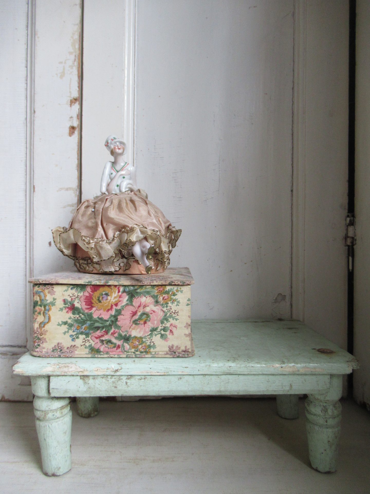 oud Frans krukje, echt heel oud en dat is goed te zien, maar daarom juist zó leuk brocante, dat kleurtje! (31,5 bij 18,5 cm, hoogte 11,5 cm)