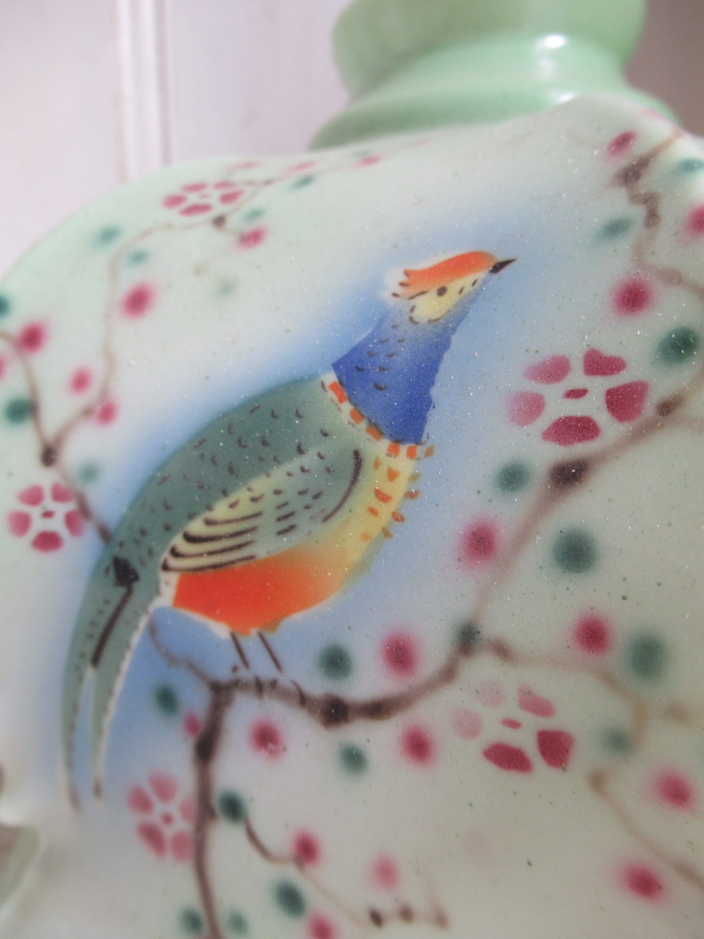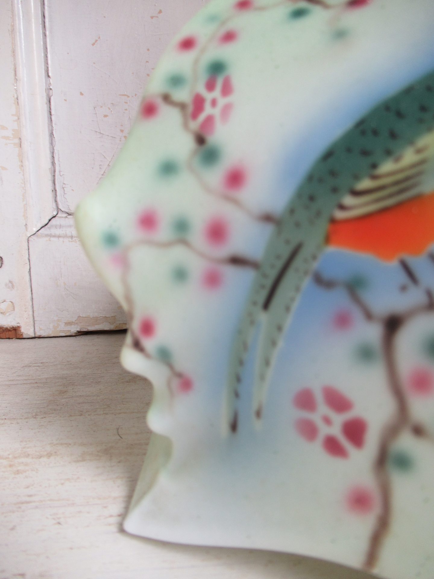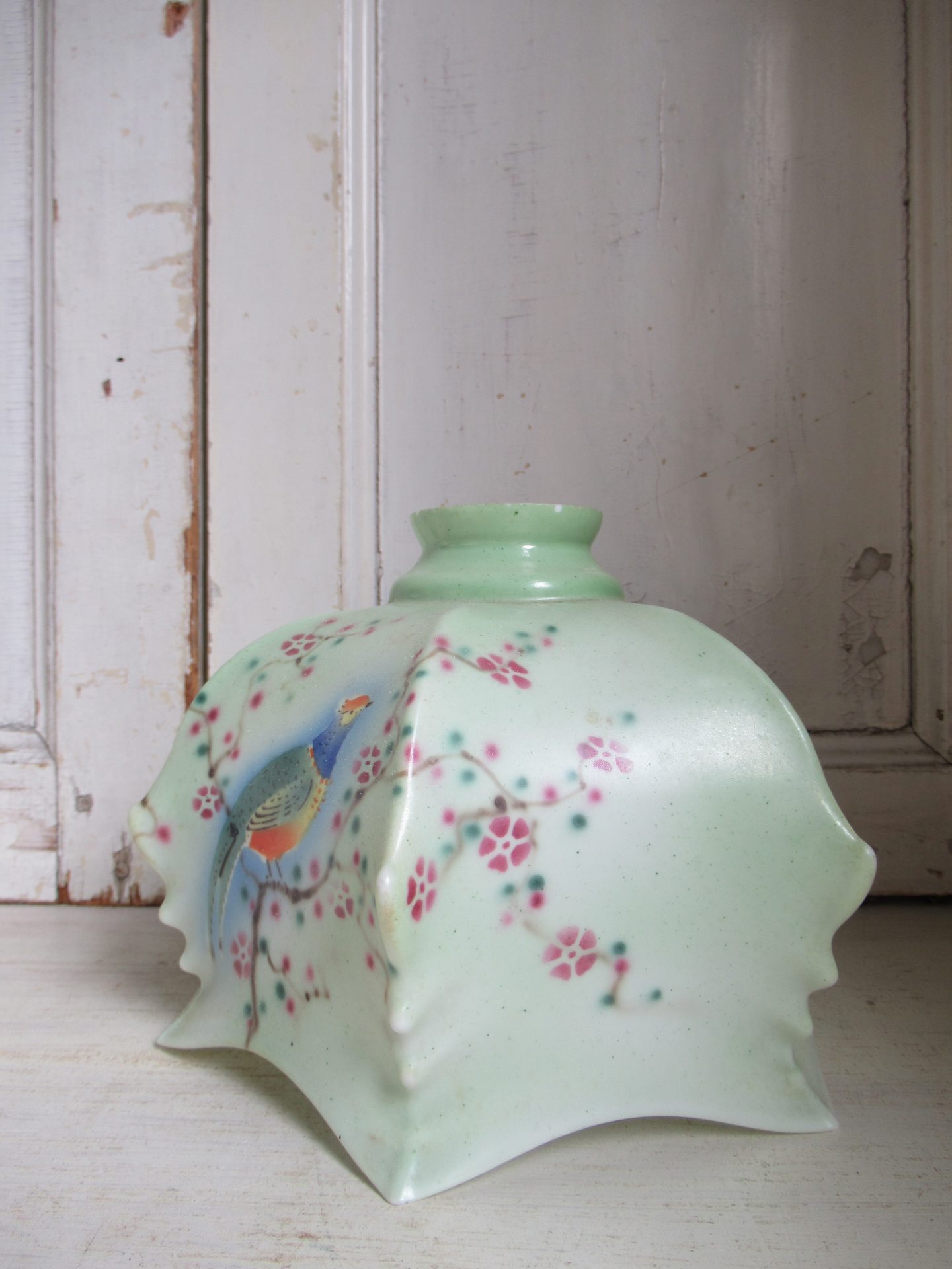 oud Frans lampenkapje, heel bijzonder!, geen fitting etc. maar die zijn eenvoudig online te vinden (doorsnede 20 cm, hoogte 15 cm, doorsnede opening fitting 5,5 cm)