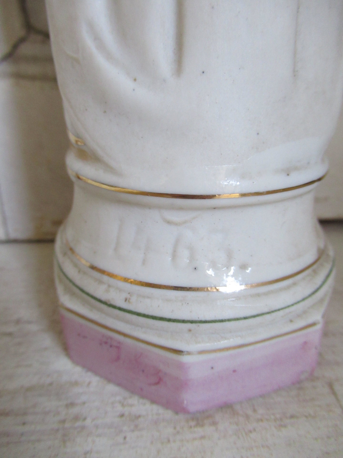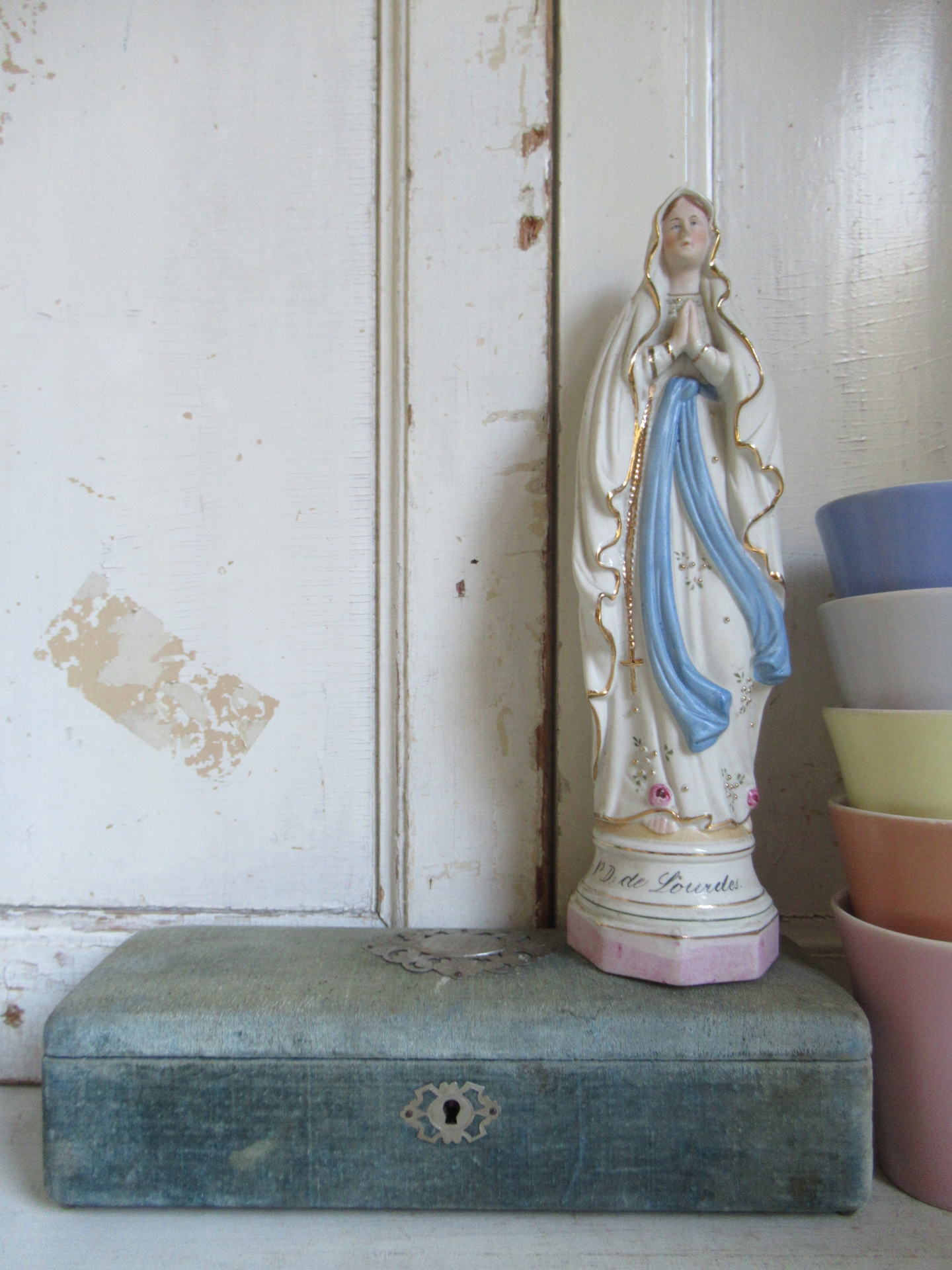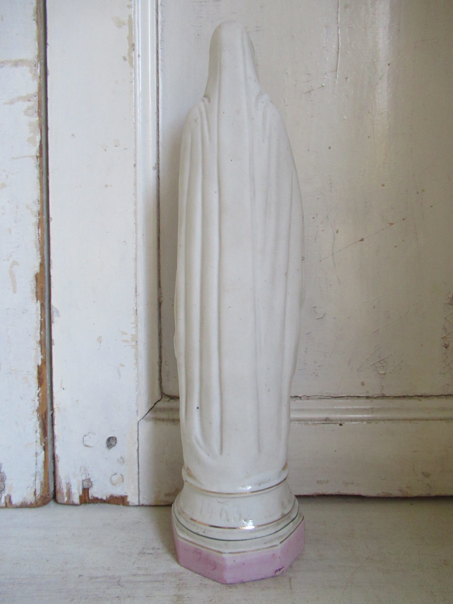 oud Frans Maria beeld, biscuit, goudkleurige en reliëf details, Lourdes (hoogte 30 cm)