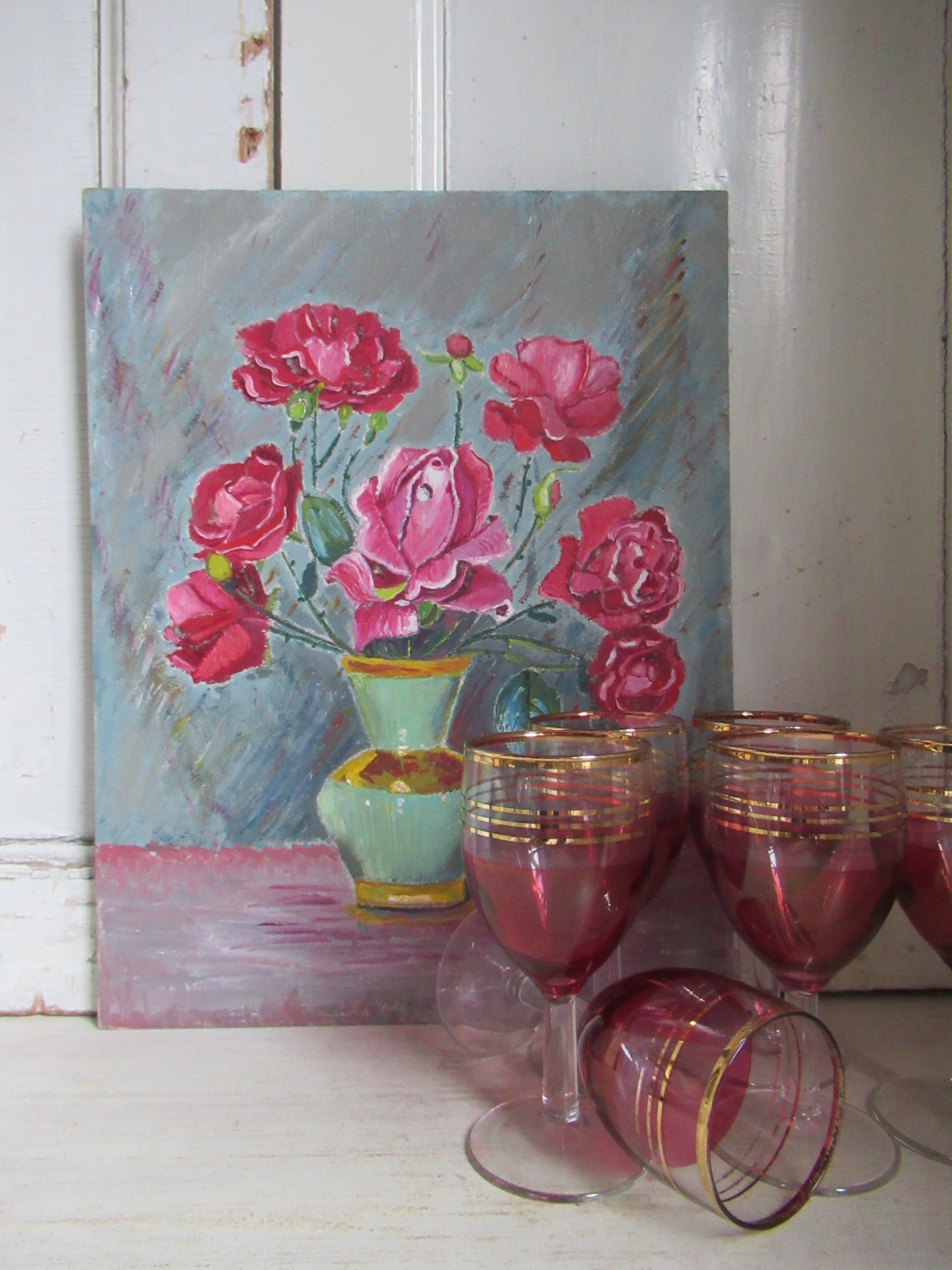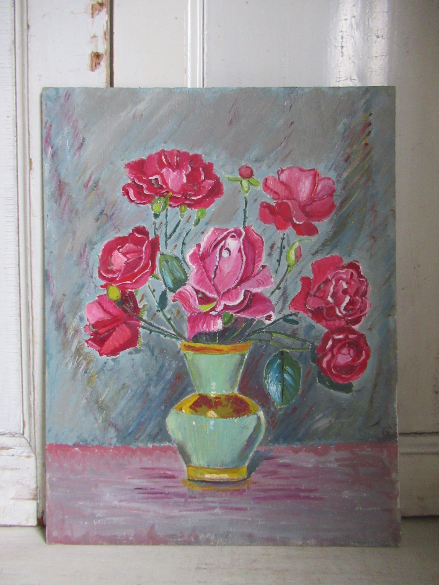 oud Frans schilderwerkje op board (35 bij 27 cm)