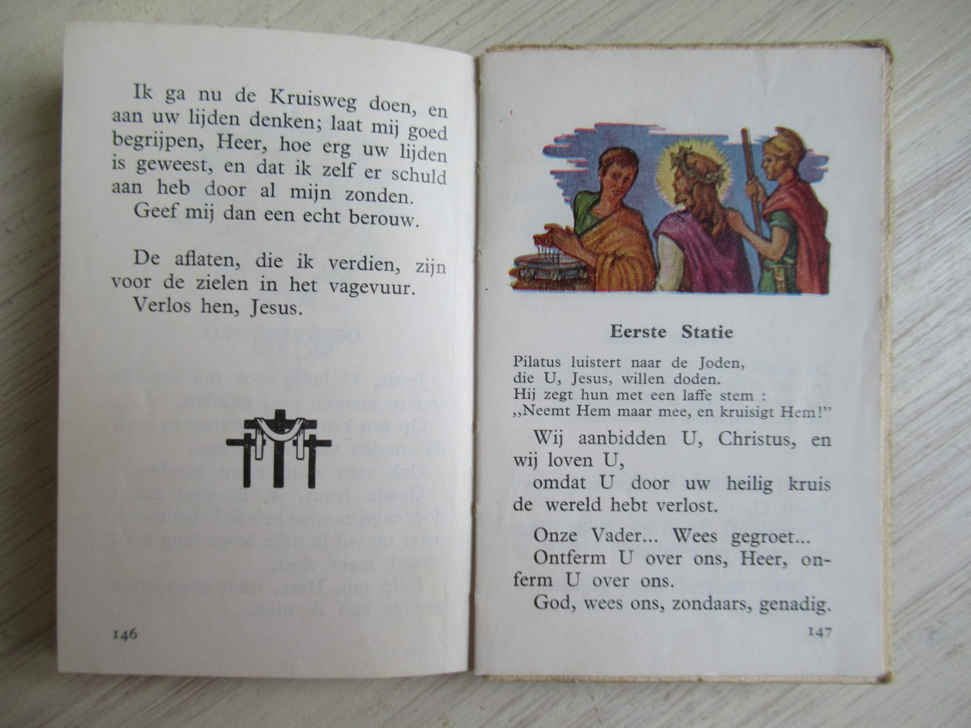 oud gebedenboekje voor de jeugd in hoesje (12,5 bij 9 cm, 1,5 cm dik)