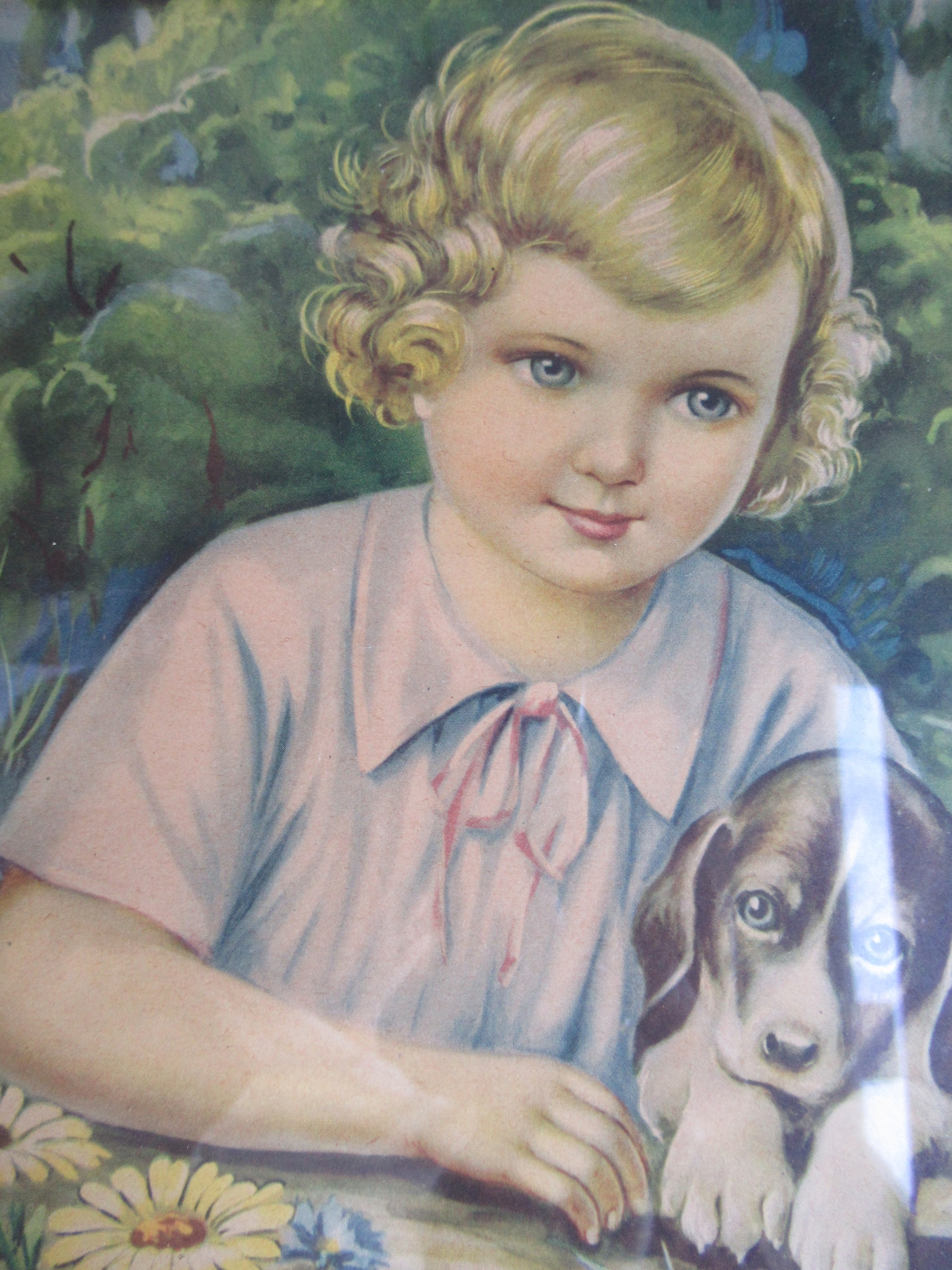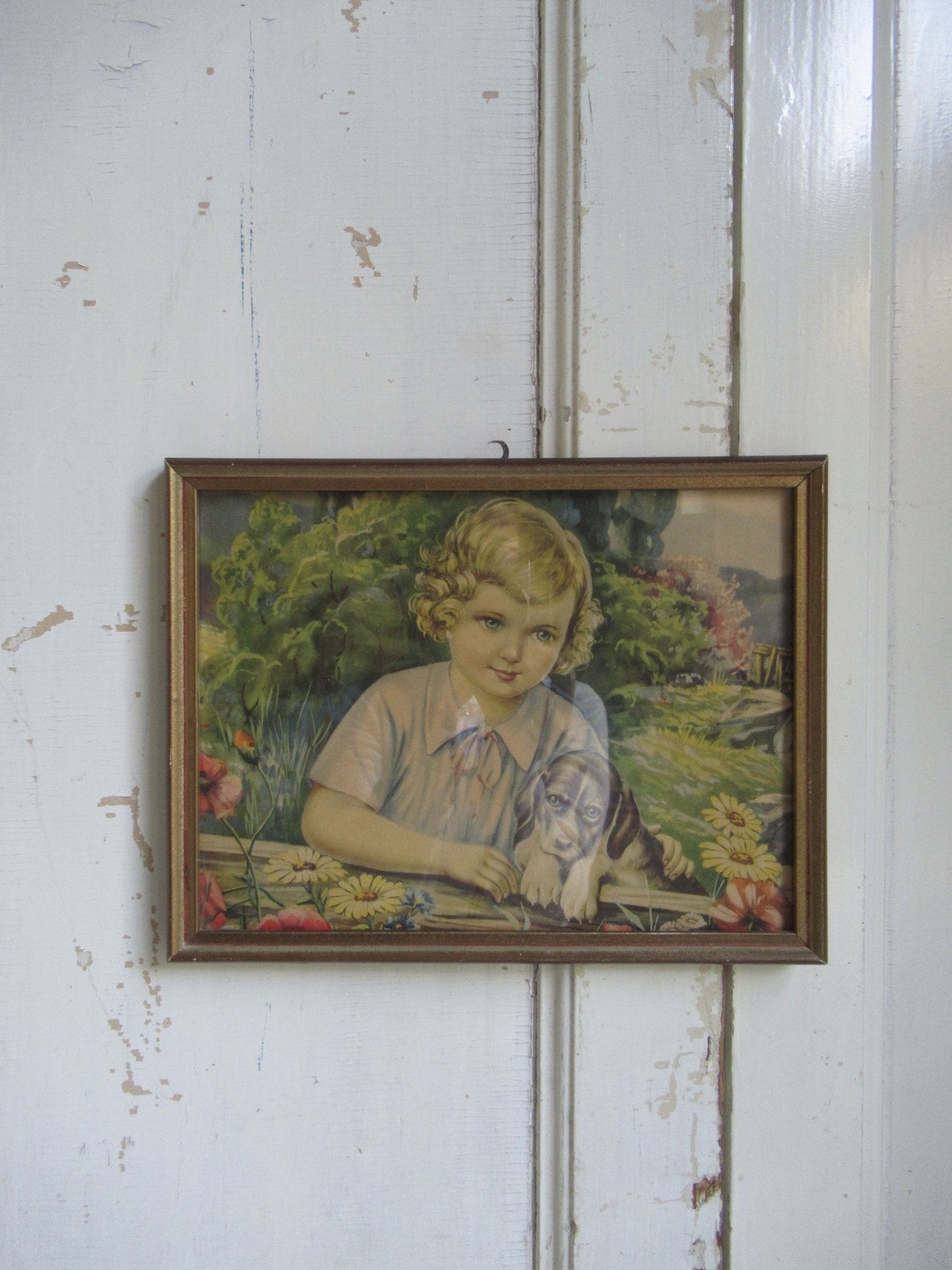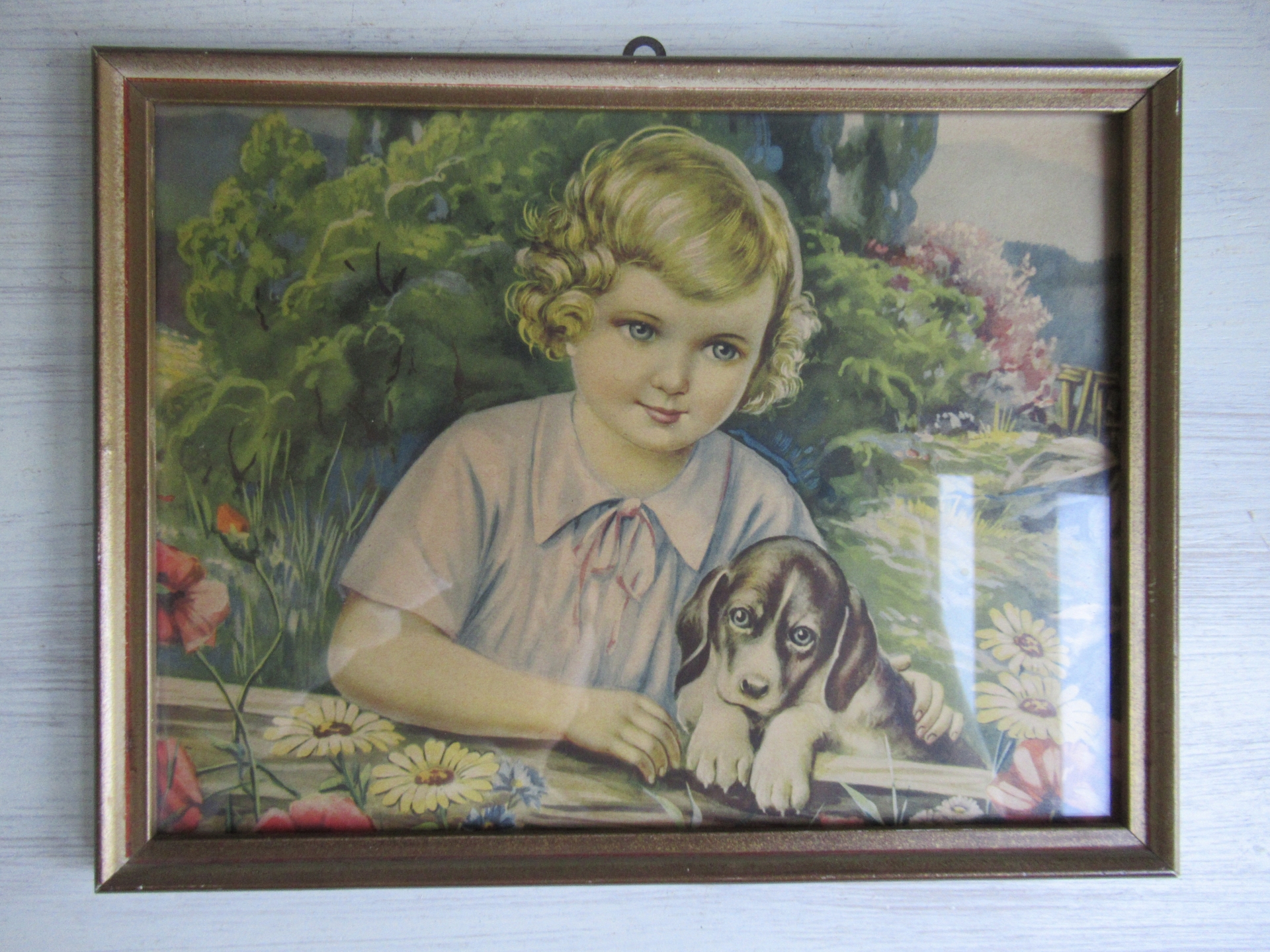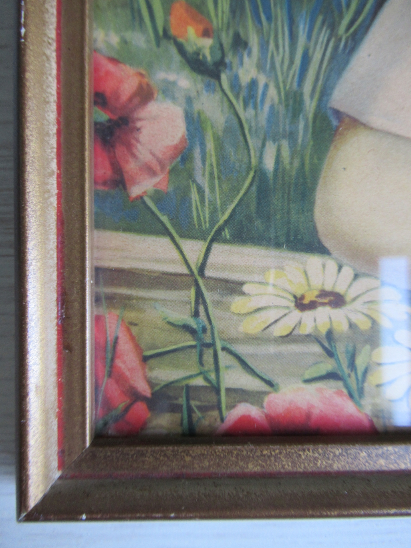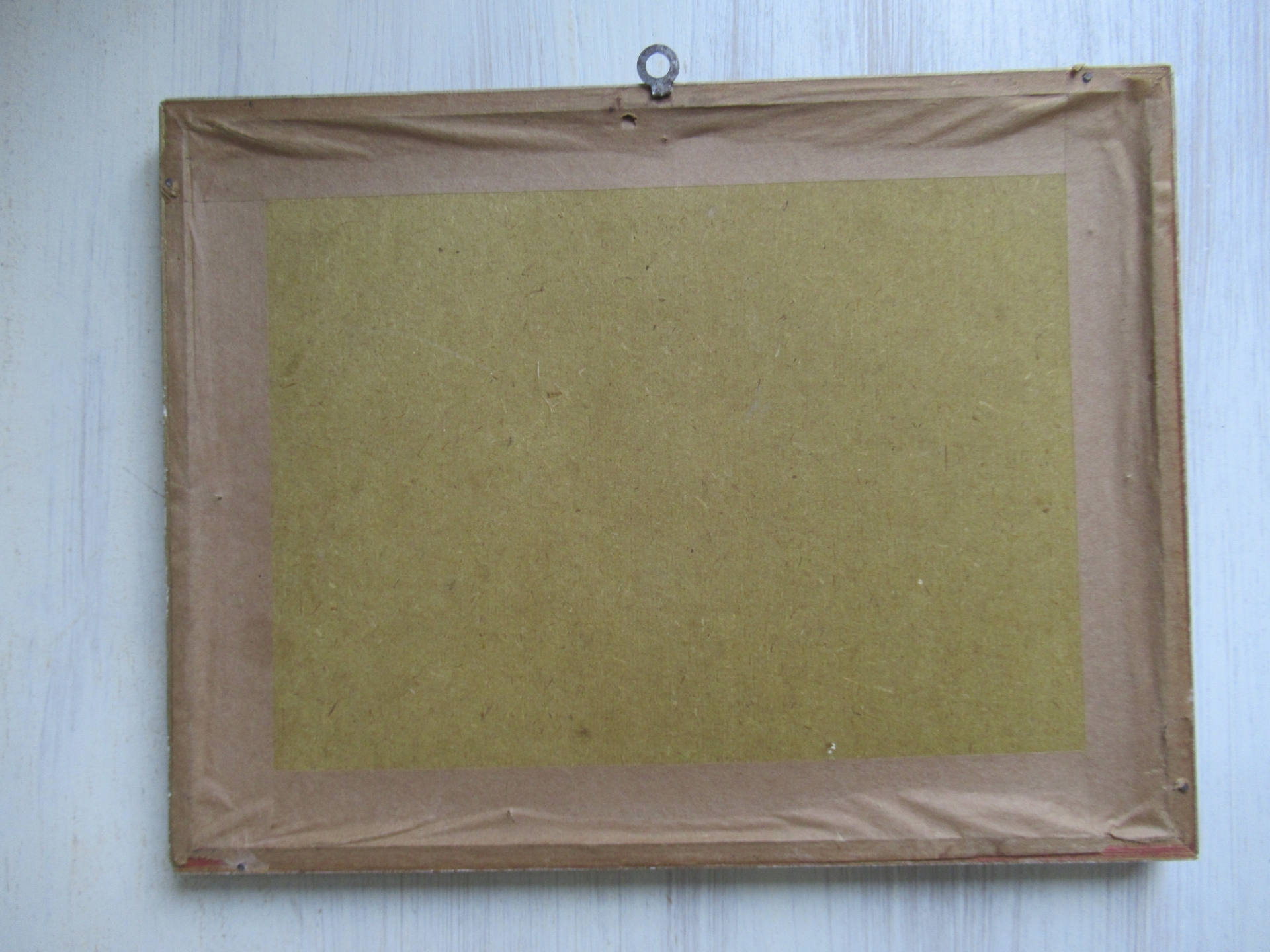 oud houten lijstje met prent achter glas (26 bij 20 cm)