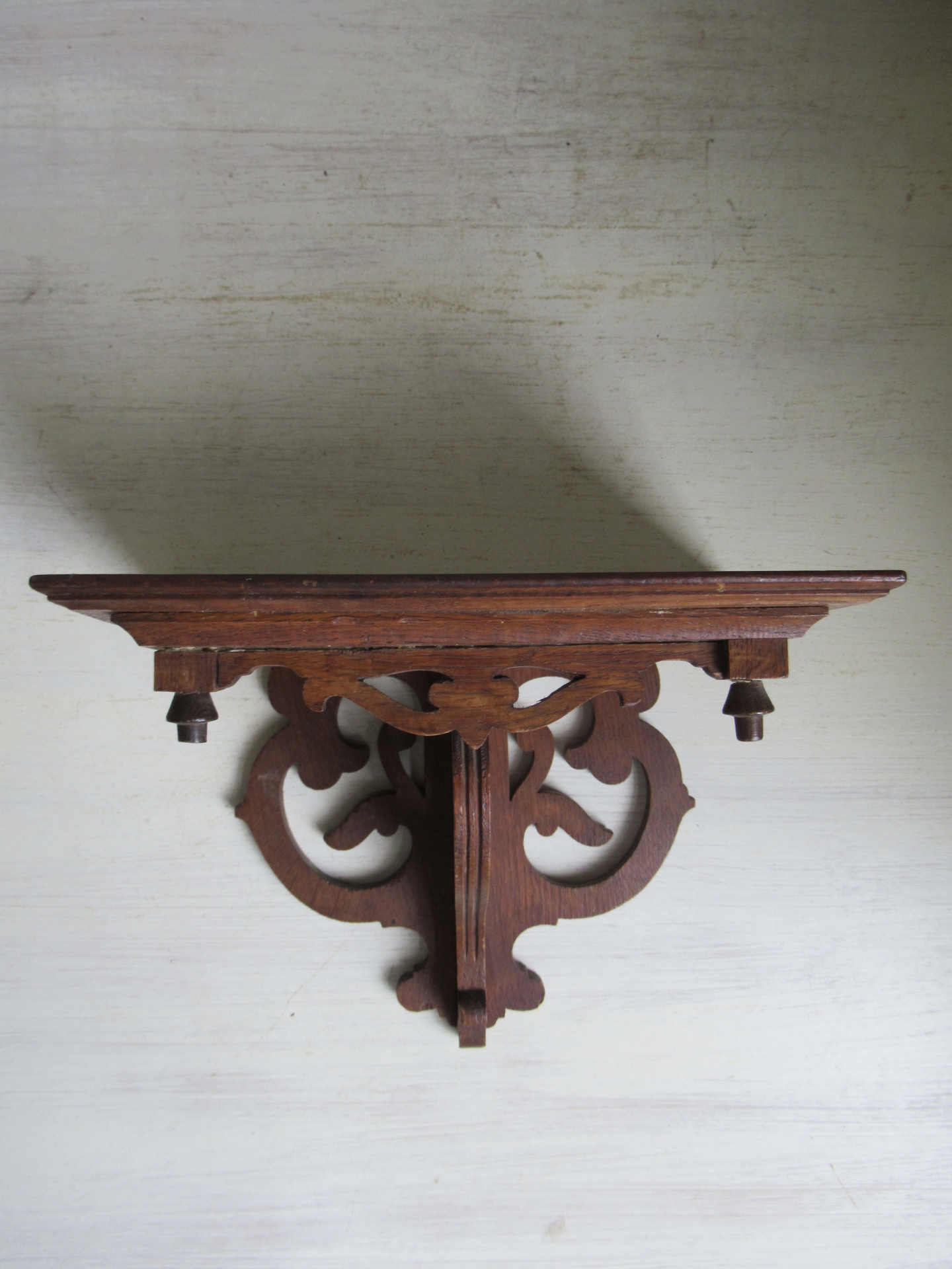 oud houten wandplankje / console, houtsnijwerk (24 bij 15 cm, 19 cm hoog)