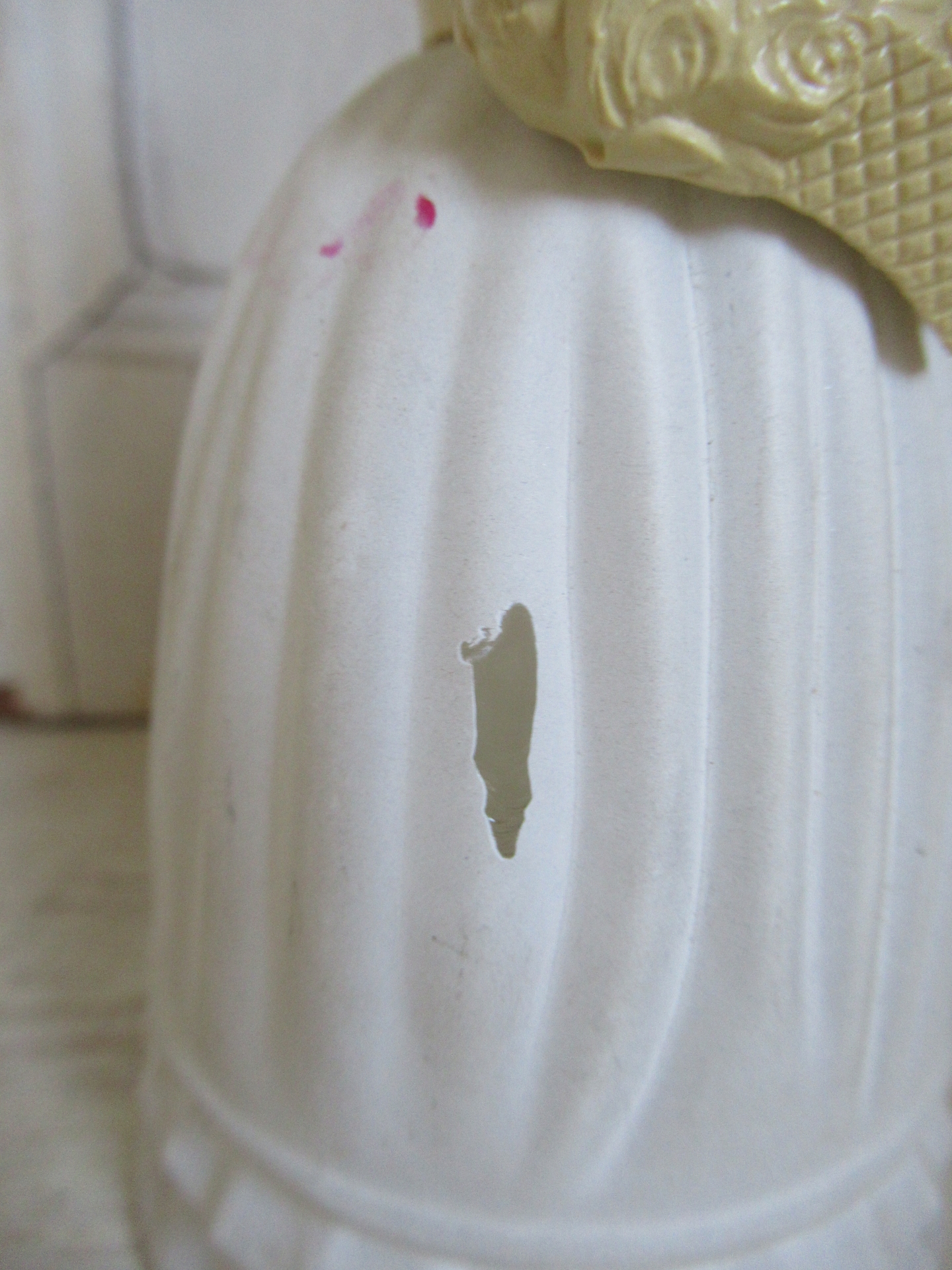 schattig oud parfumflesje, Avon, er mist een klein stukje verf van de rok, maar dat kun je zo draaien dat je het niet ziet (hoogte 15 cm)
