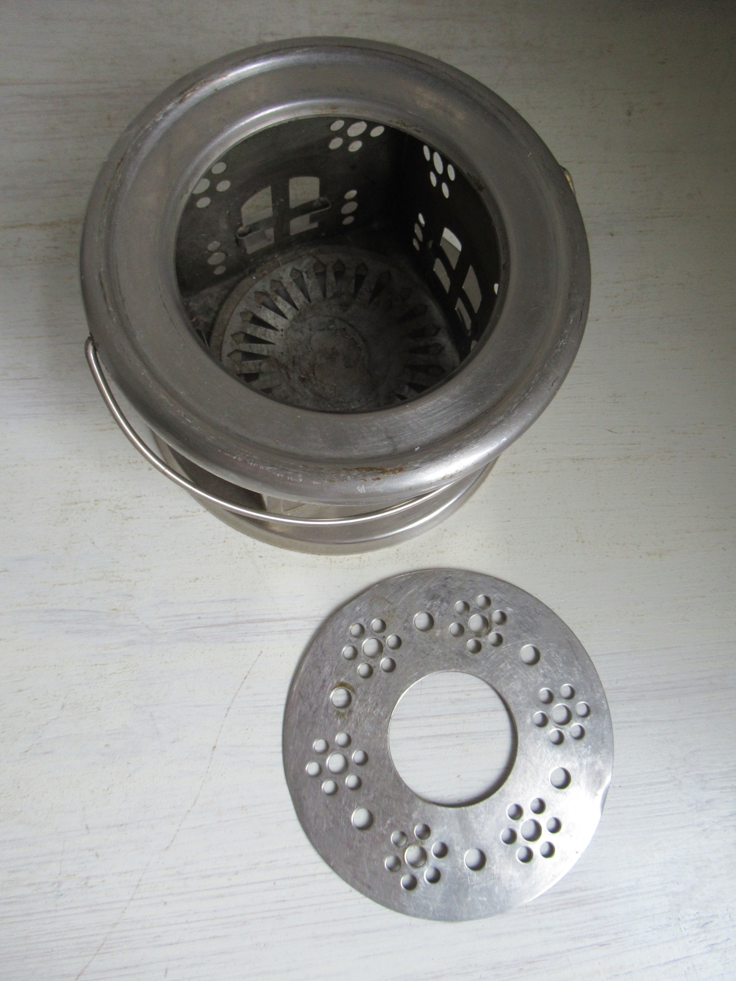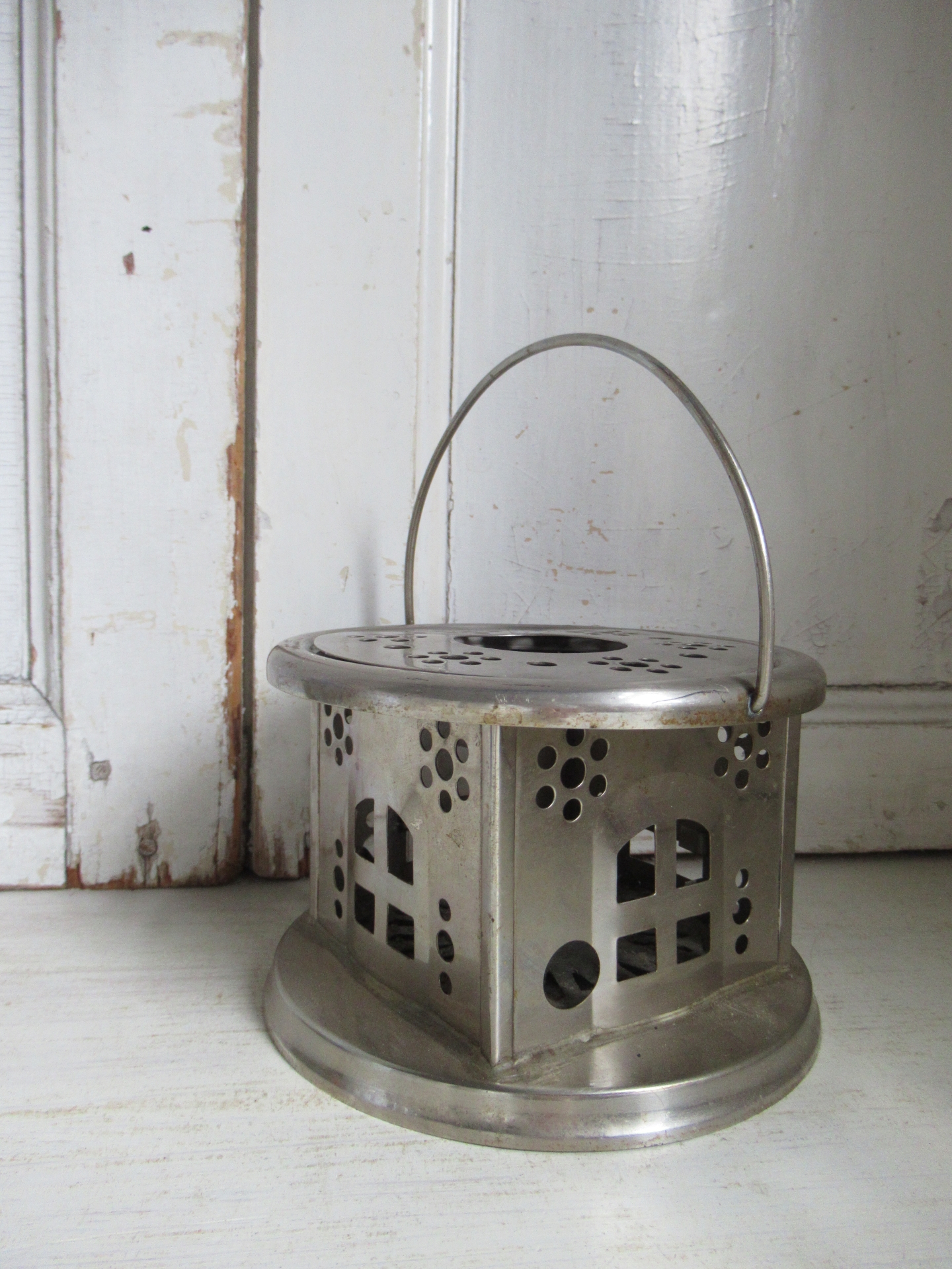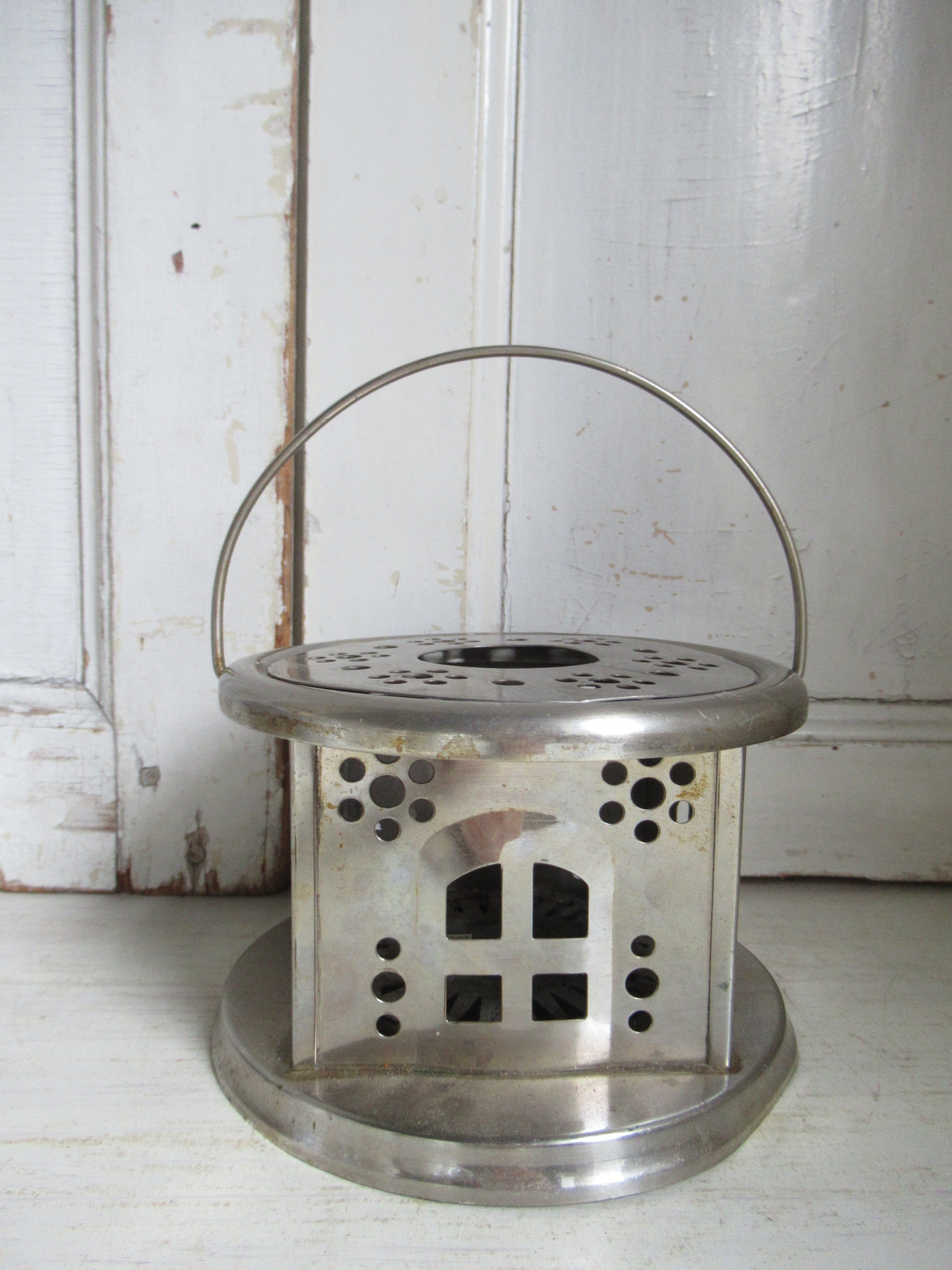 oud theelichtje, metaal (hoogte 10 cm, doorsnee 15 cm)