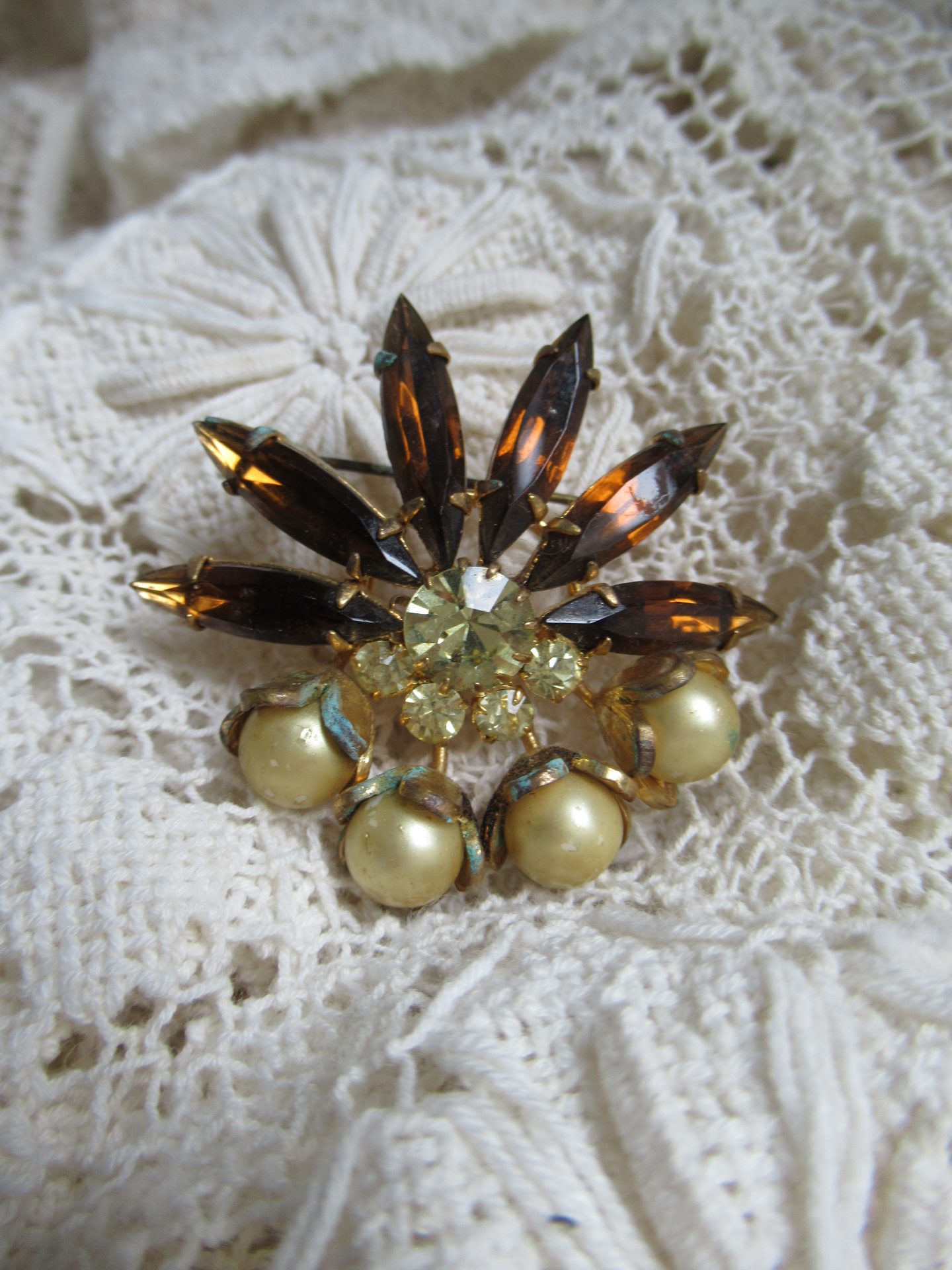 • oude broche met strass