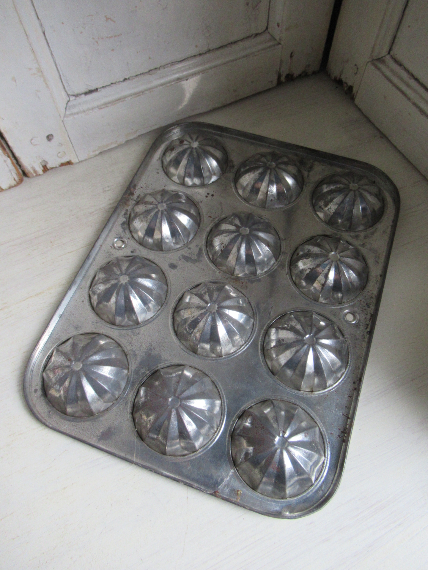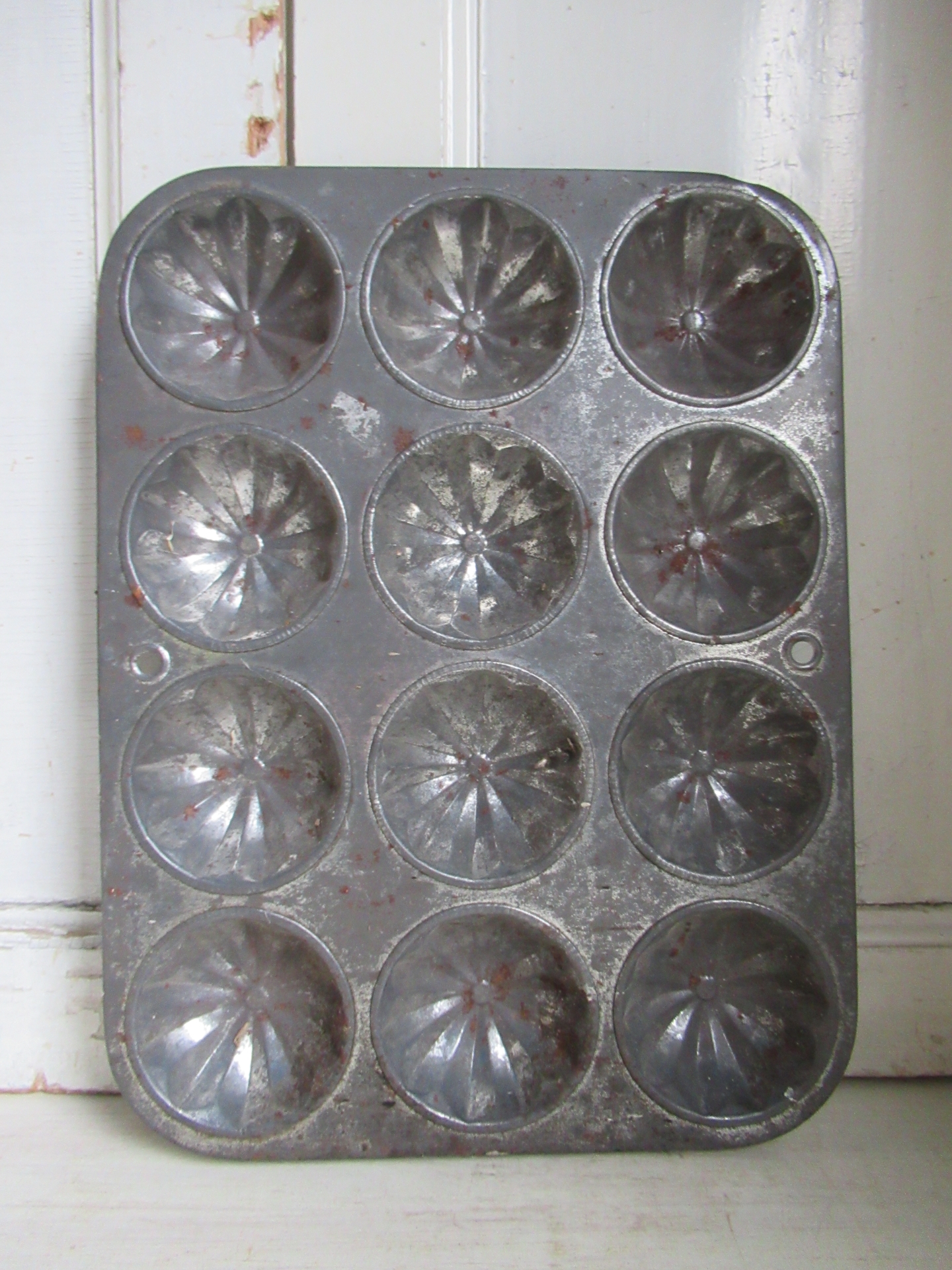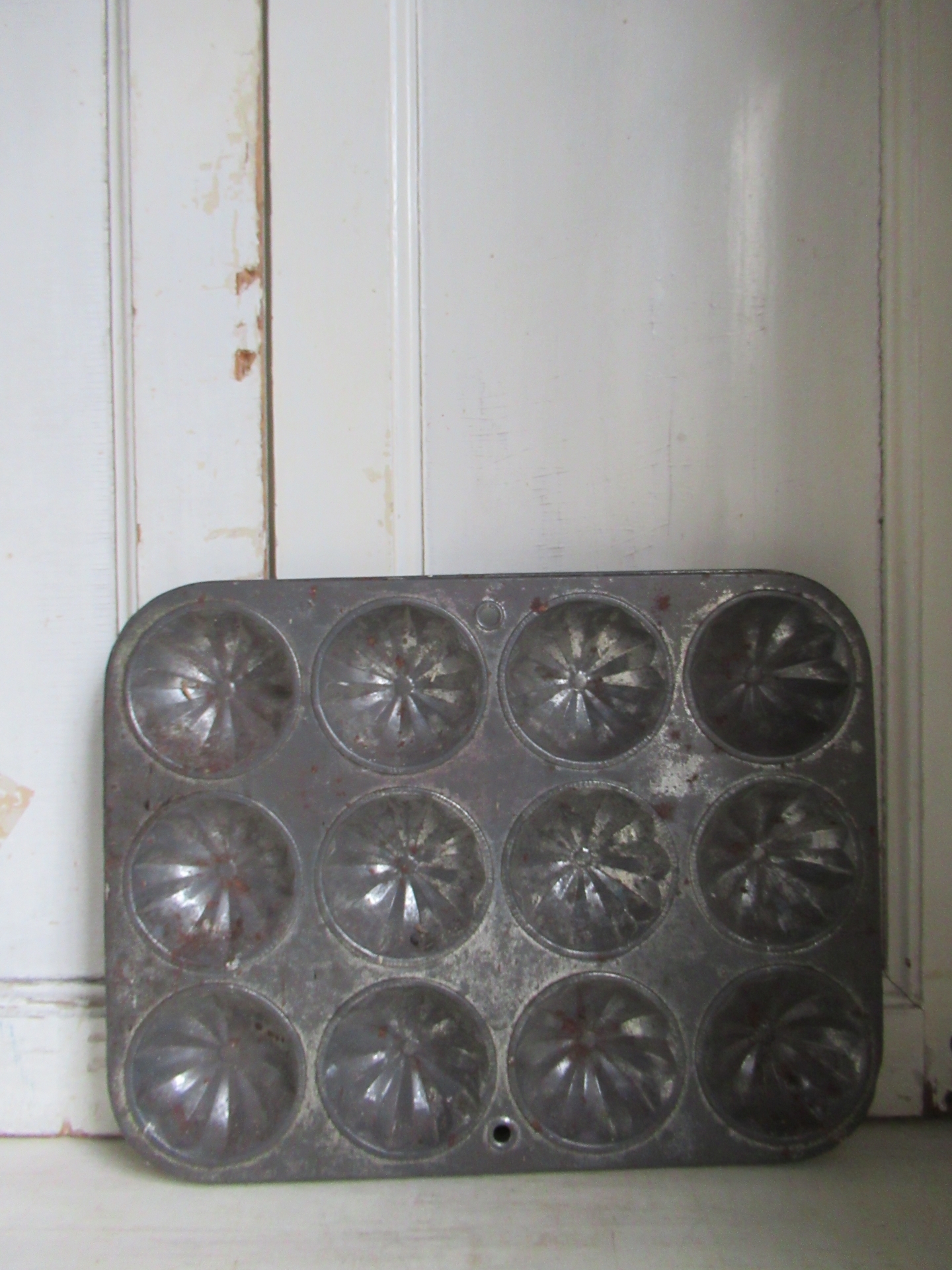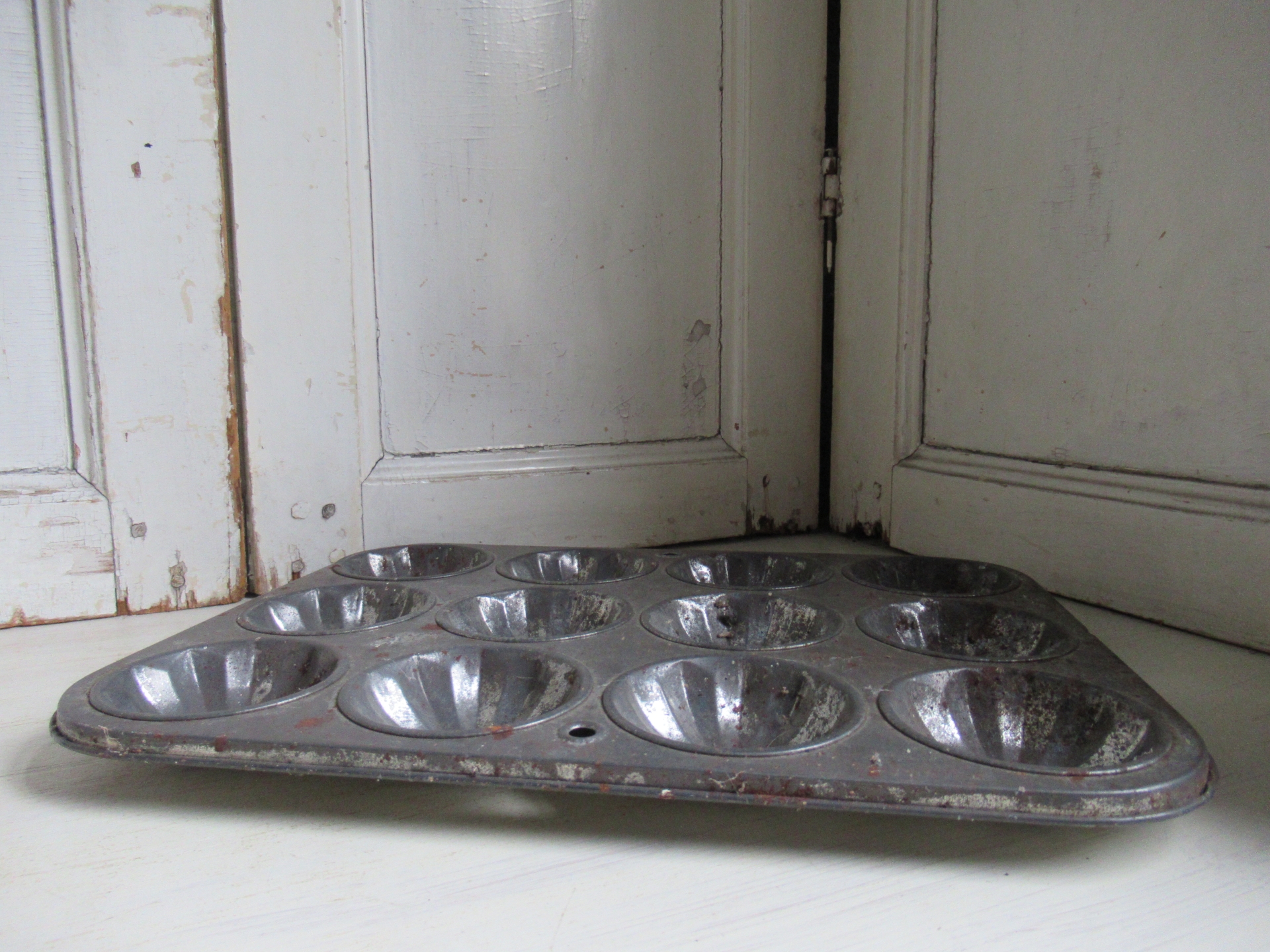 oude Engelse bakvorm, niet meer te gebruiken omdat er wat roestplekjes op zitten, kan hangen (36 bij 27,5 cm)