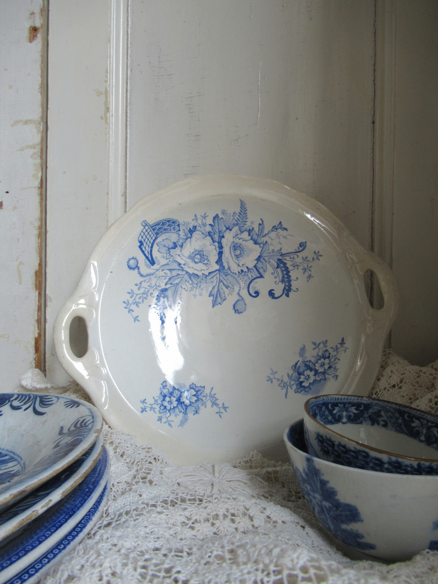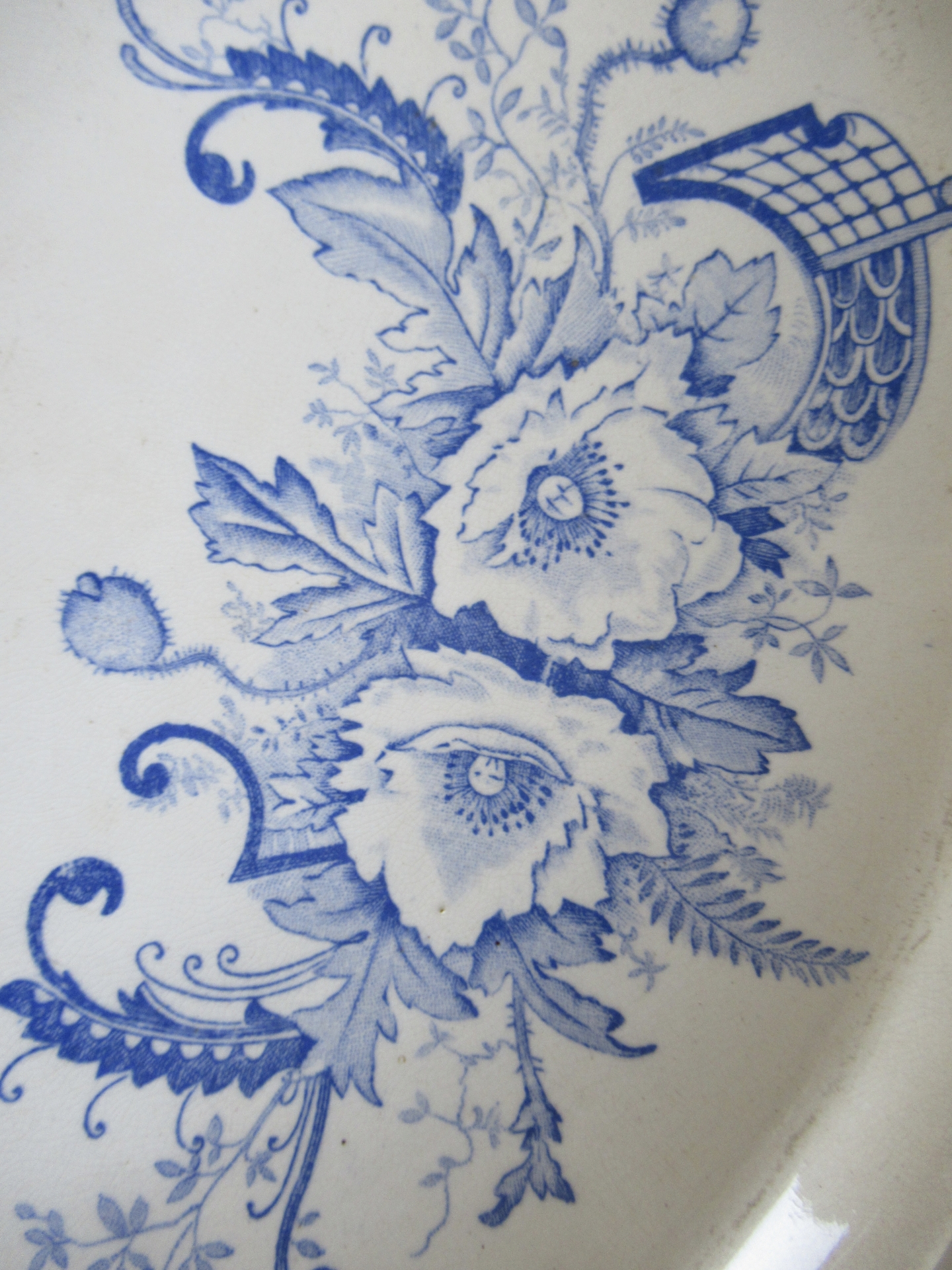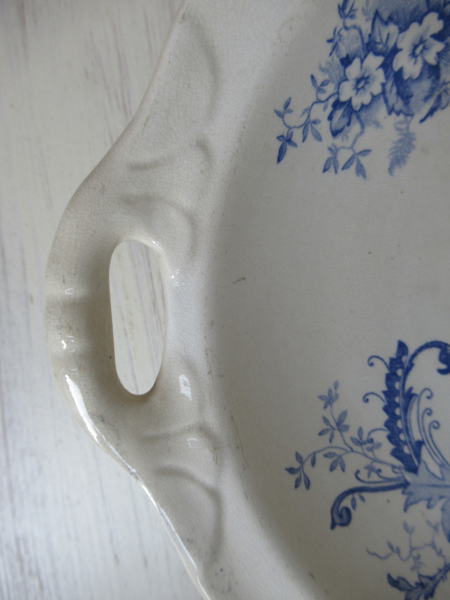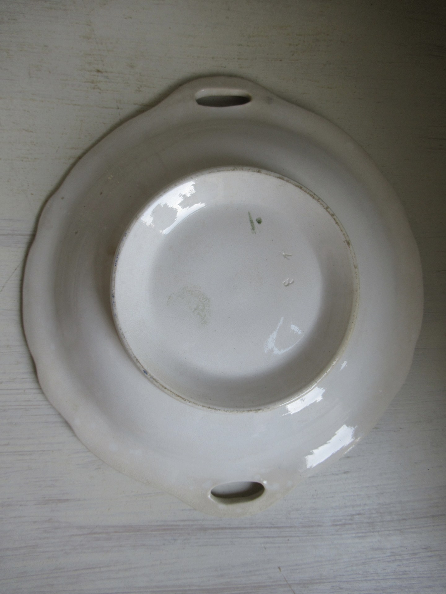 oude Franse schaal, is gemerkt, maar ik kan het merkje niet lezen (doorsnede 24,5 cm, hoogte 4,5 cm)