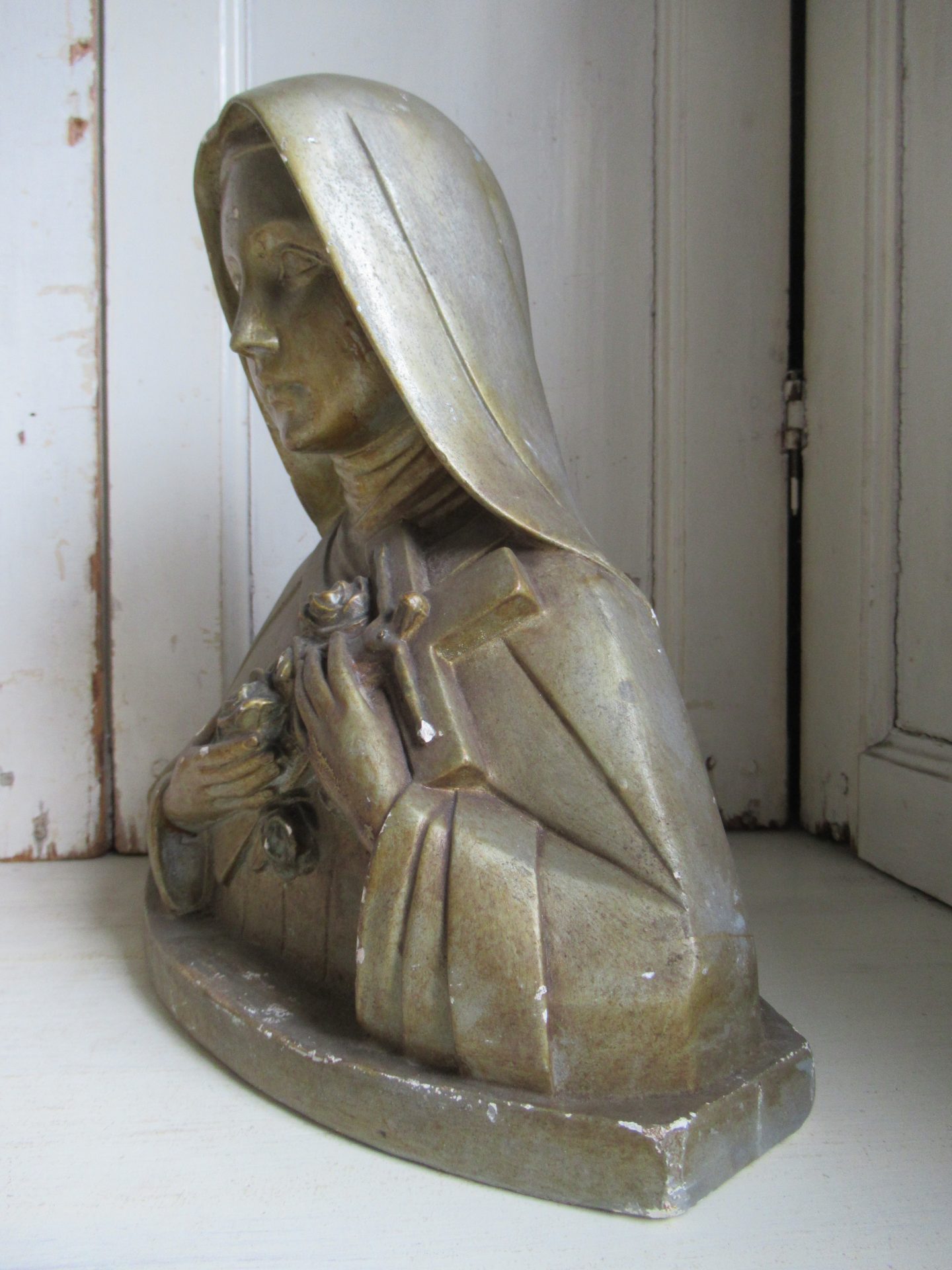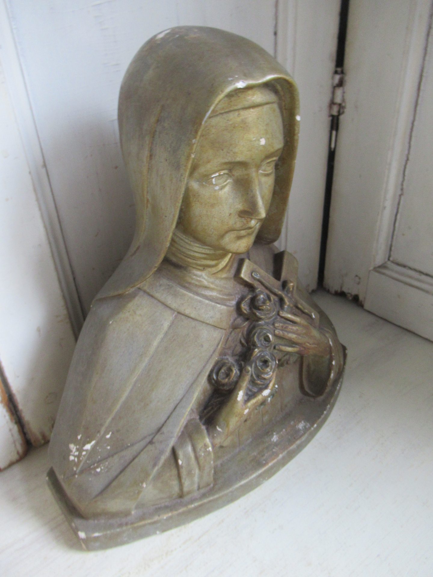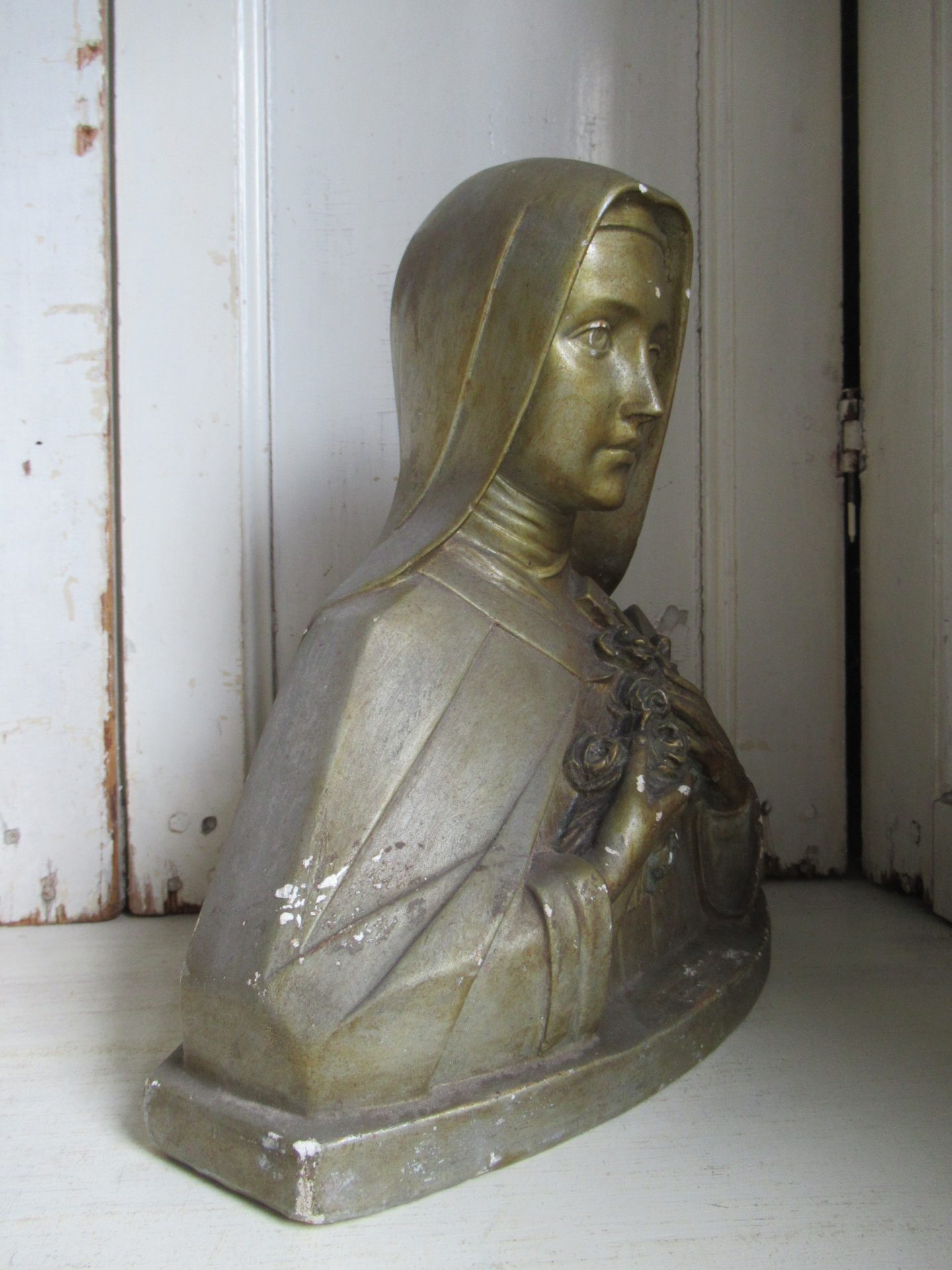 oude Franse Teresa buste, prachtig sober van kleur (29 bij 15 cm, hoogte 30 cm)