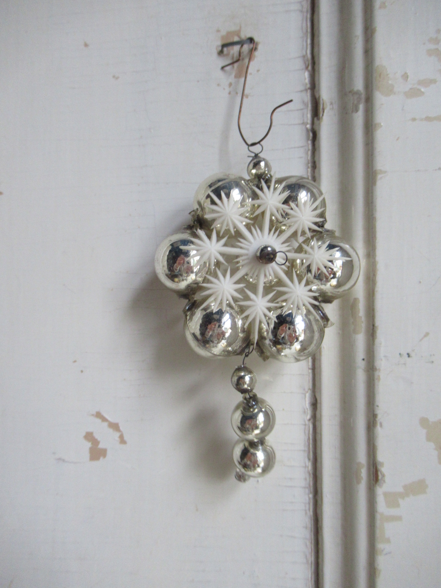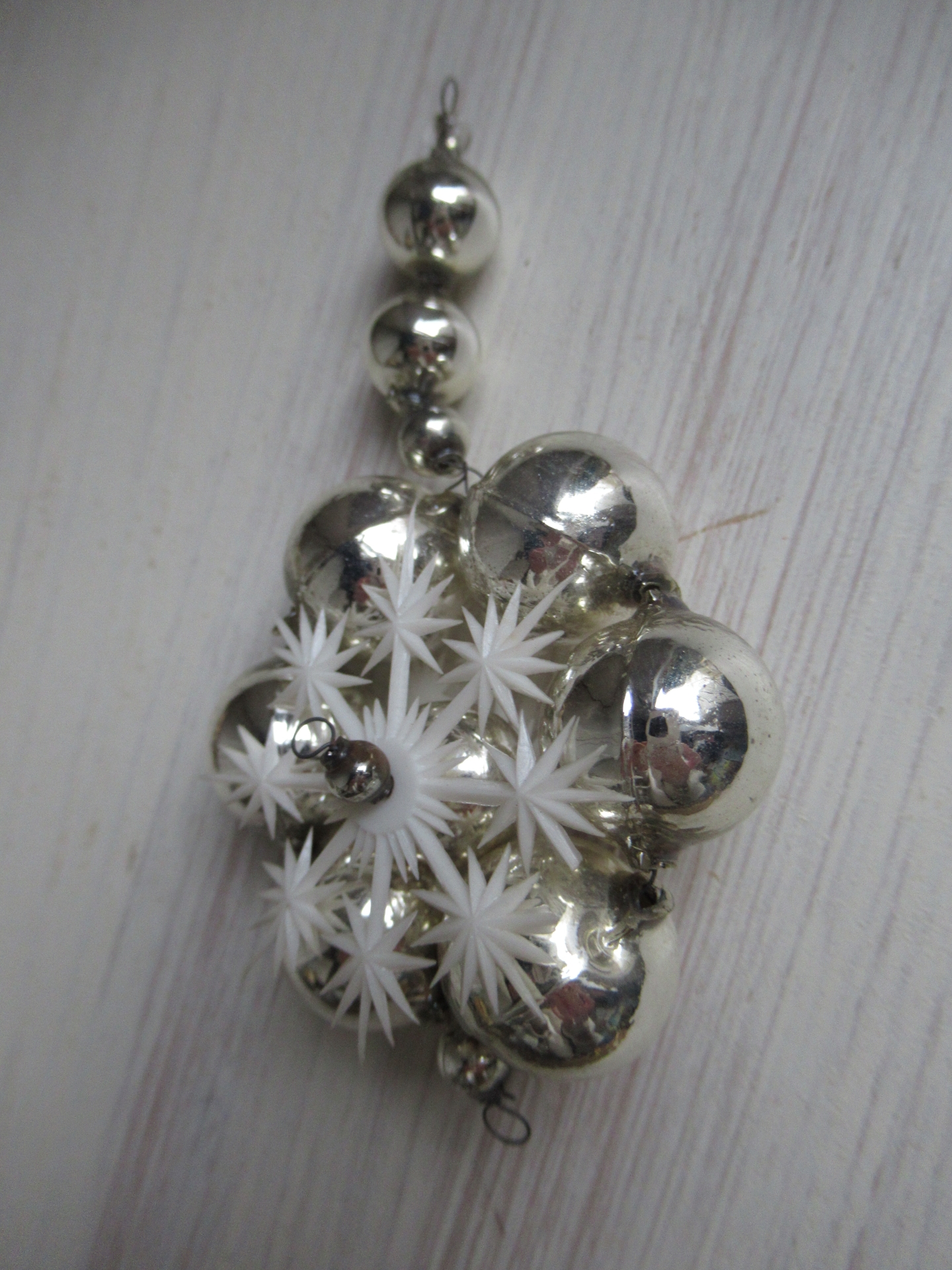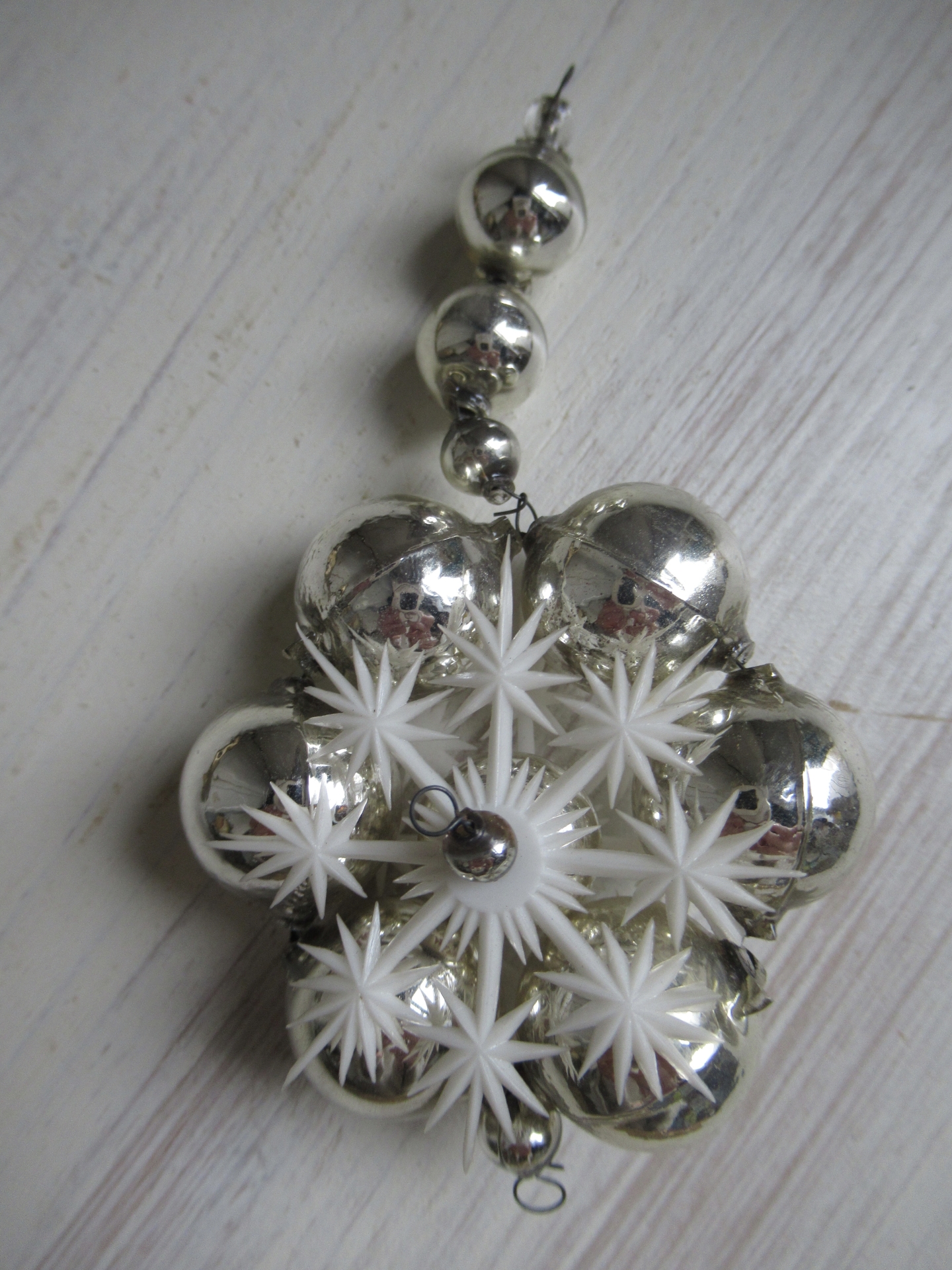 oude gablonzer, bloemetje met sneeuwster (lengte 10 cm)