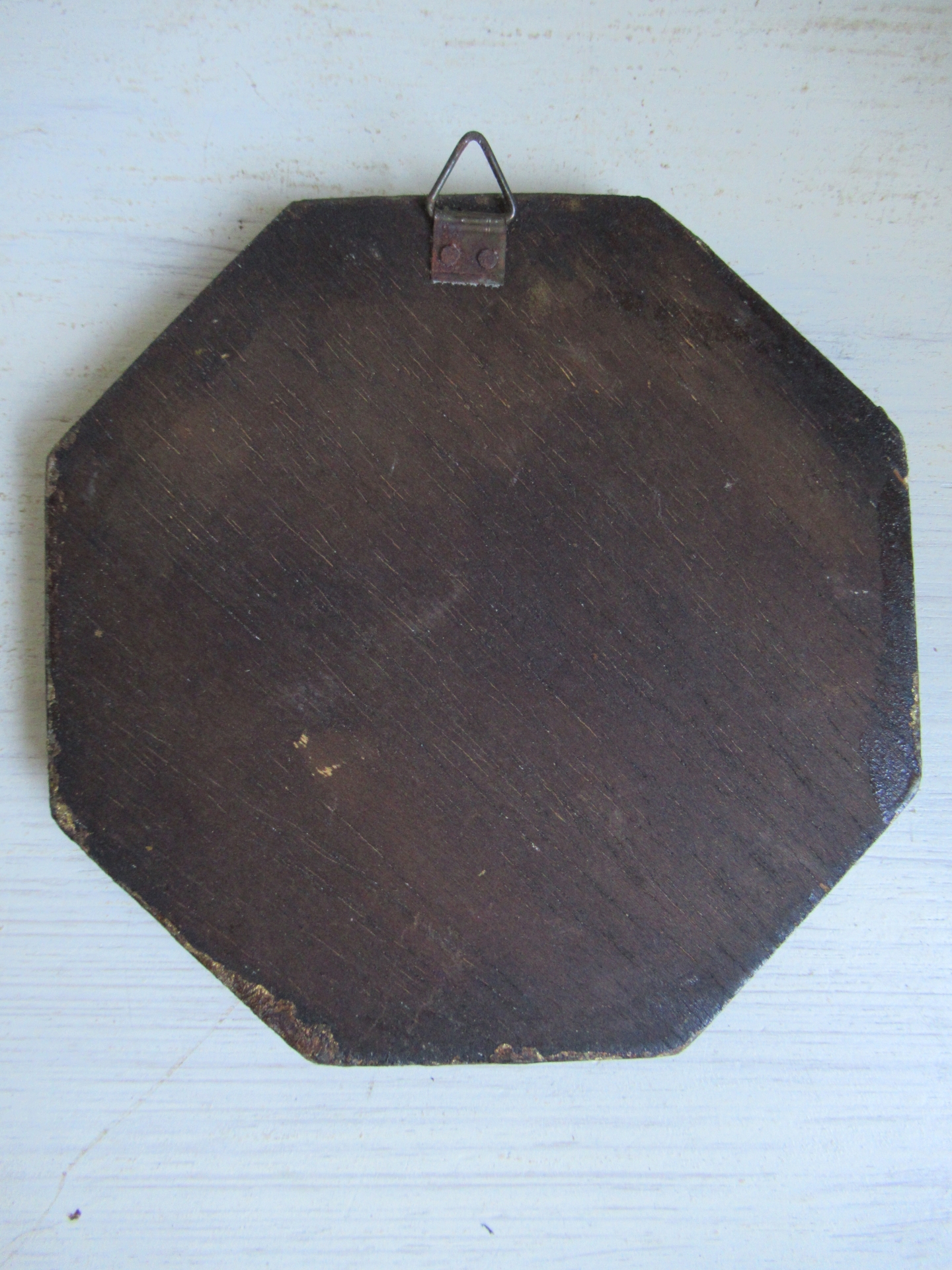 oude houten religieuze afbeelding, meegenomen uit Frankrijk, kan hangen (12 bij 12 cm)