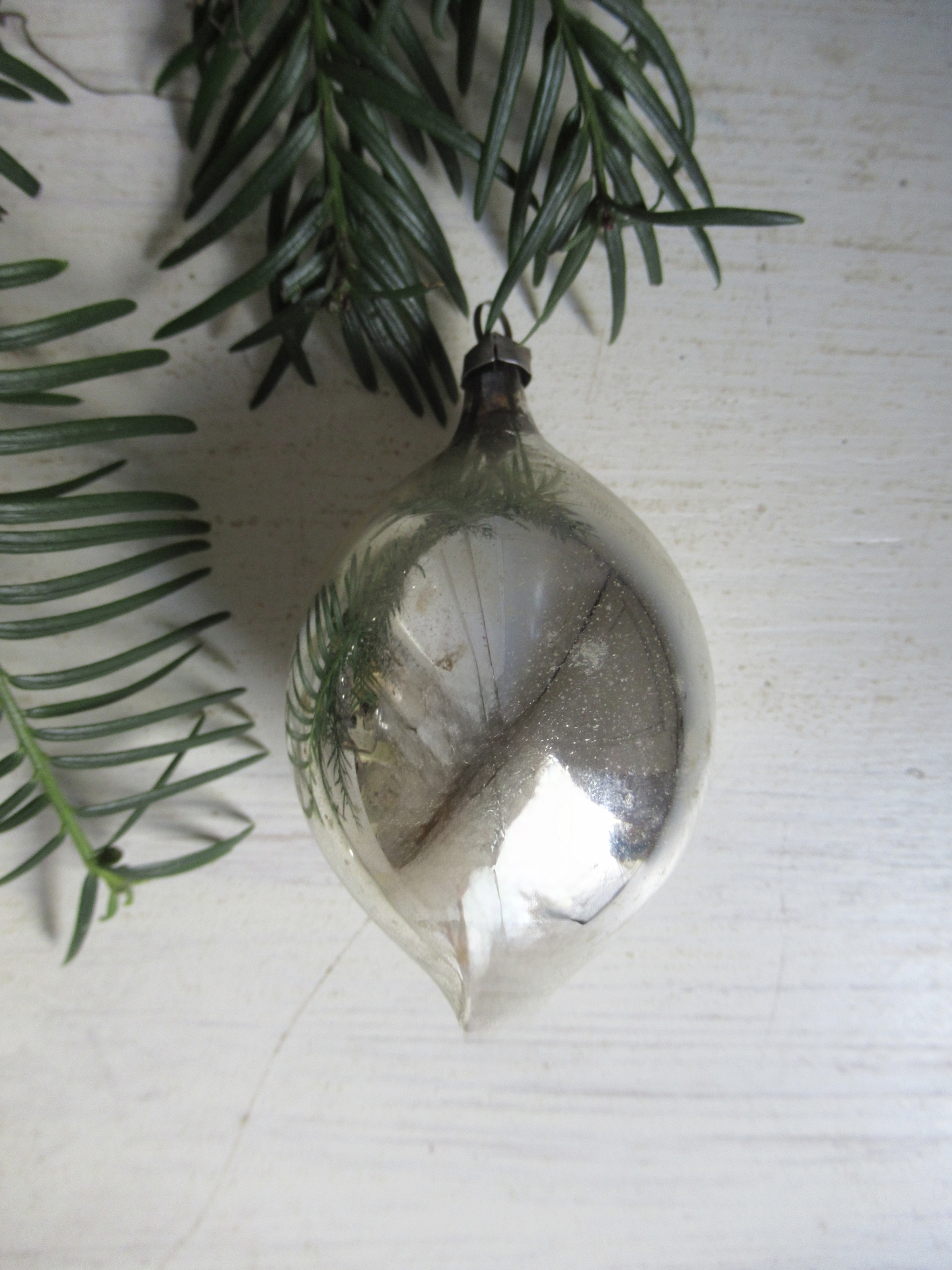 oude kerstbal, rode besneeuwde dennenappel (lengte 8 cm)