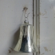 oude kerstbal, paars kerkje, heeft twee brandgaatjes (hoogte 7 cm)