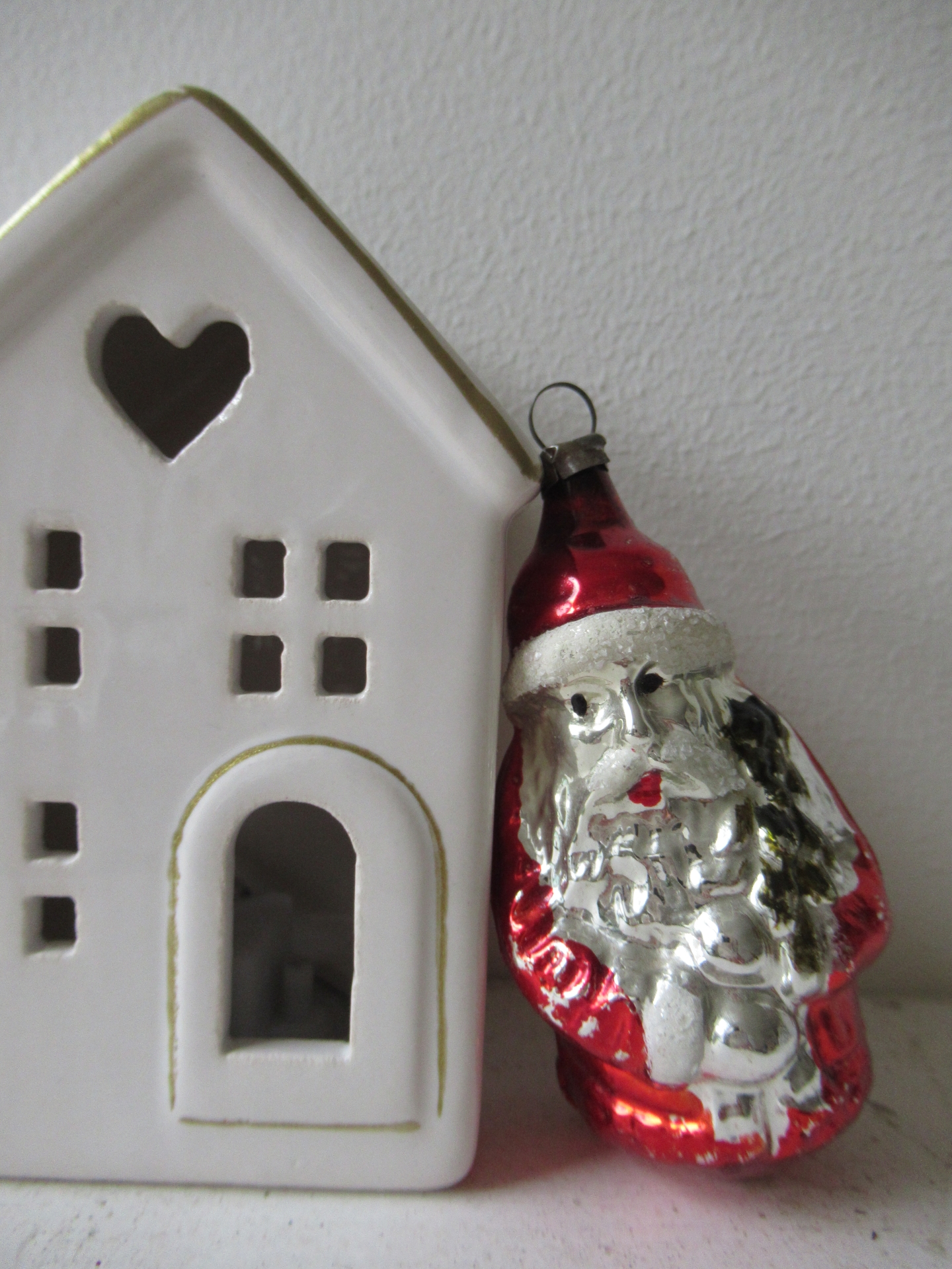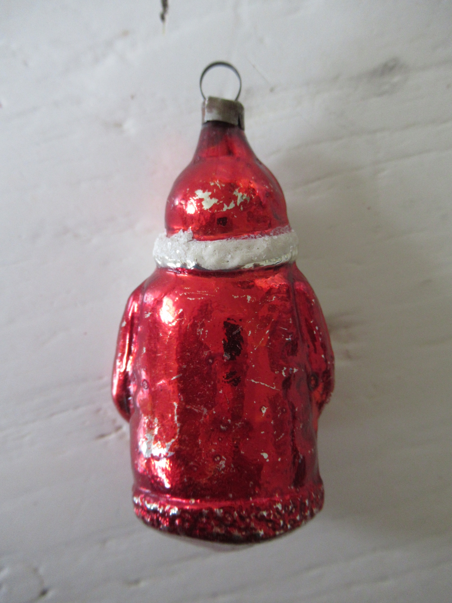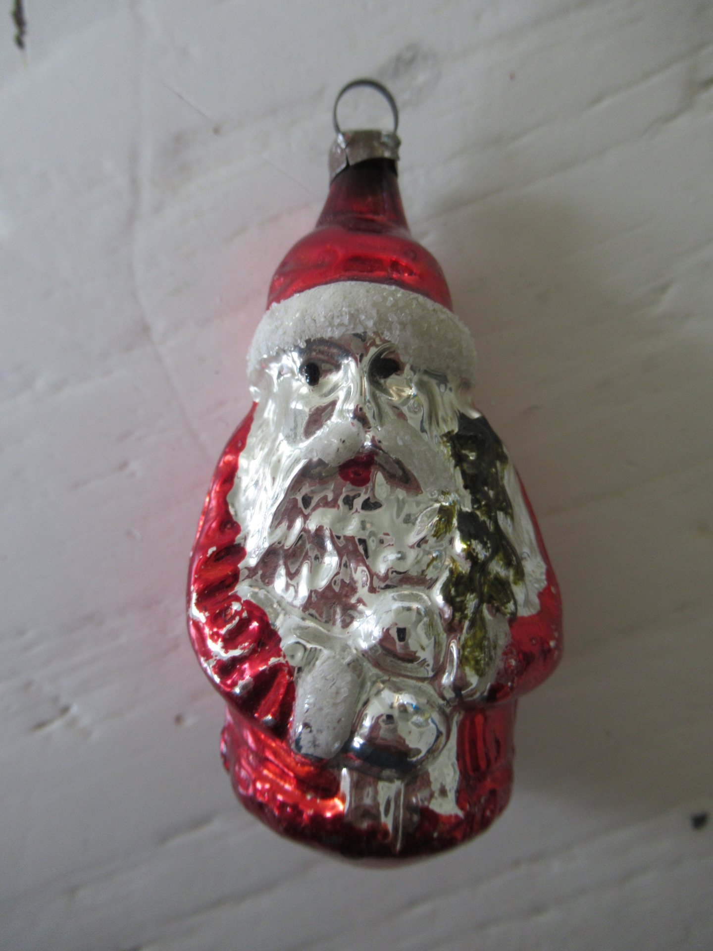 oude kerstbal, kerstmannetje met een kerstboom in de hand (lengte 8 cm)