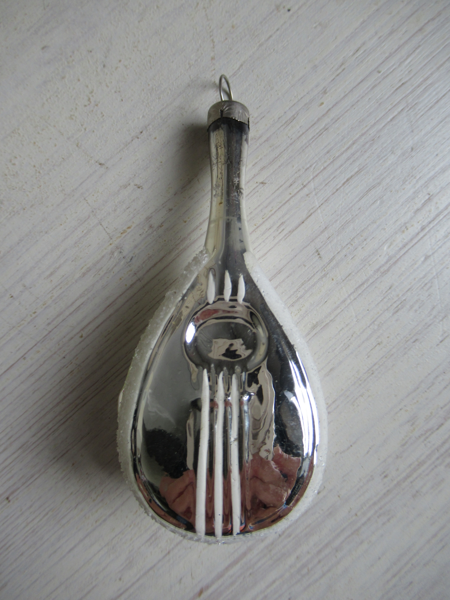 oude kerstbal, muziekinstrument (lengte 9 cm)
