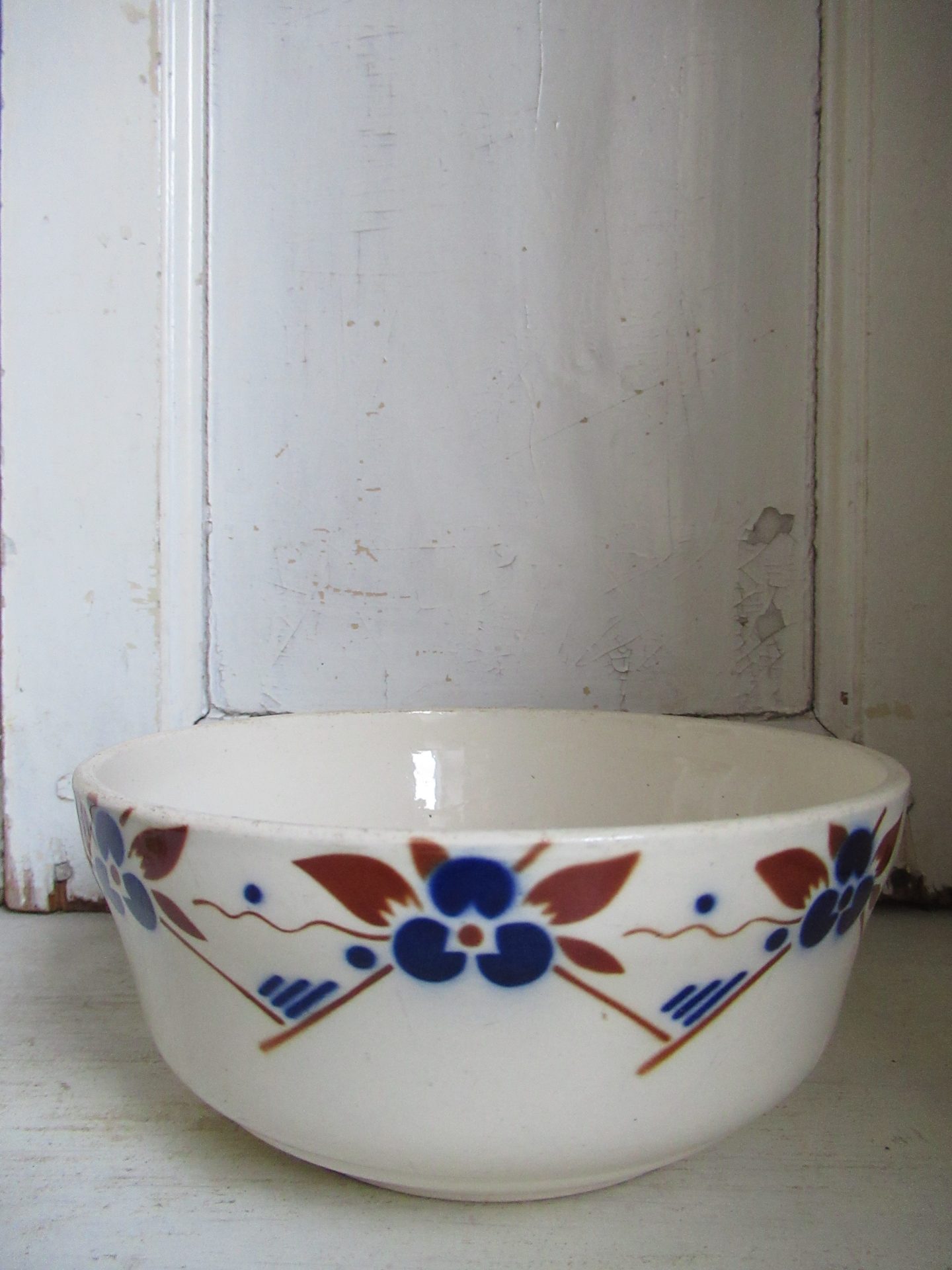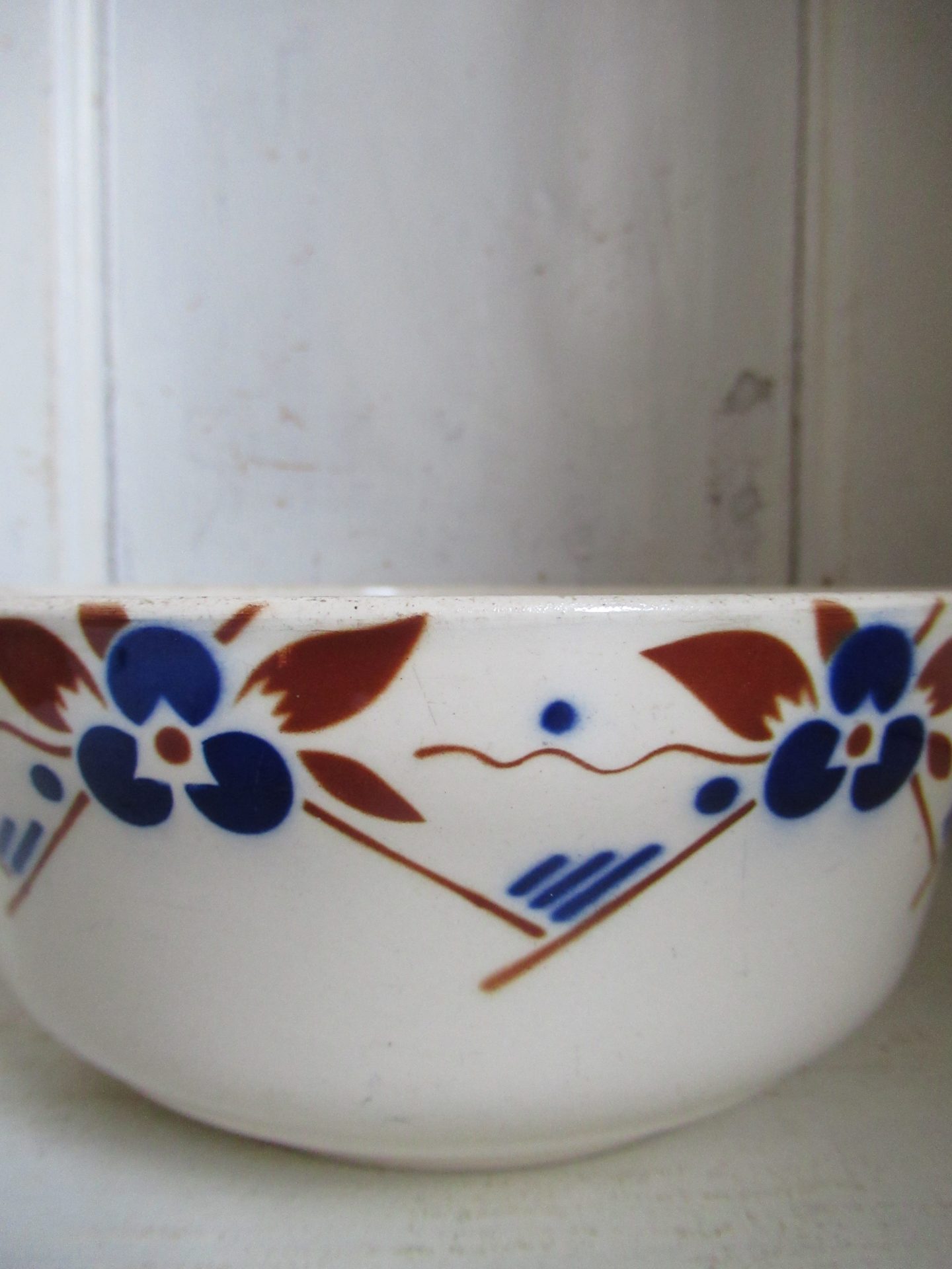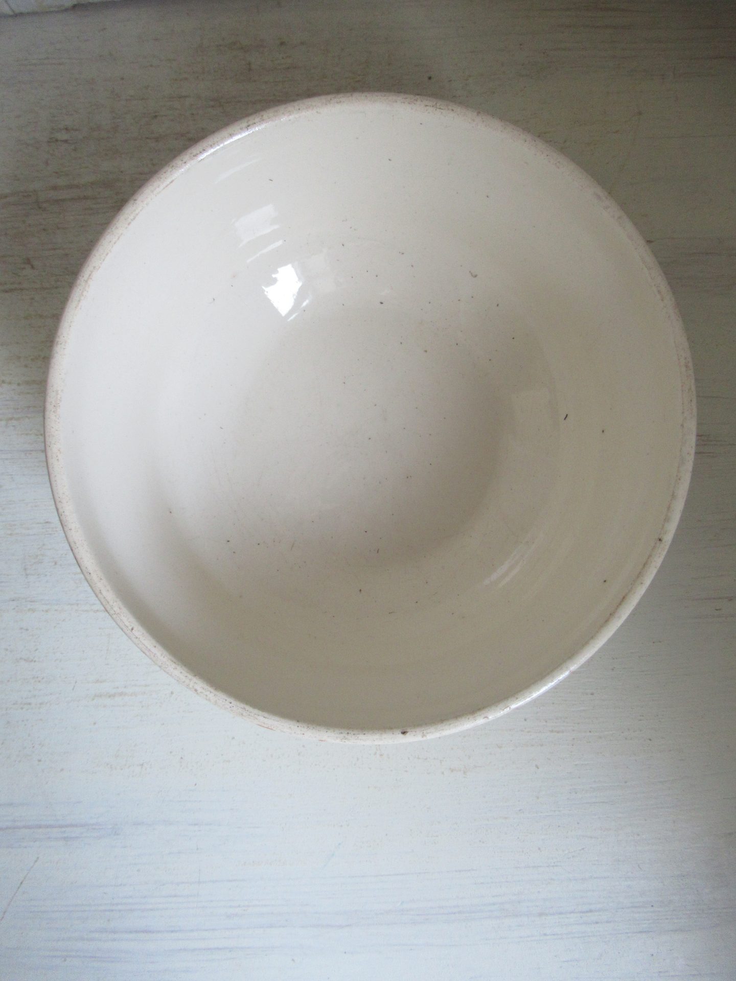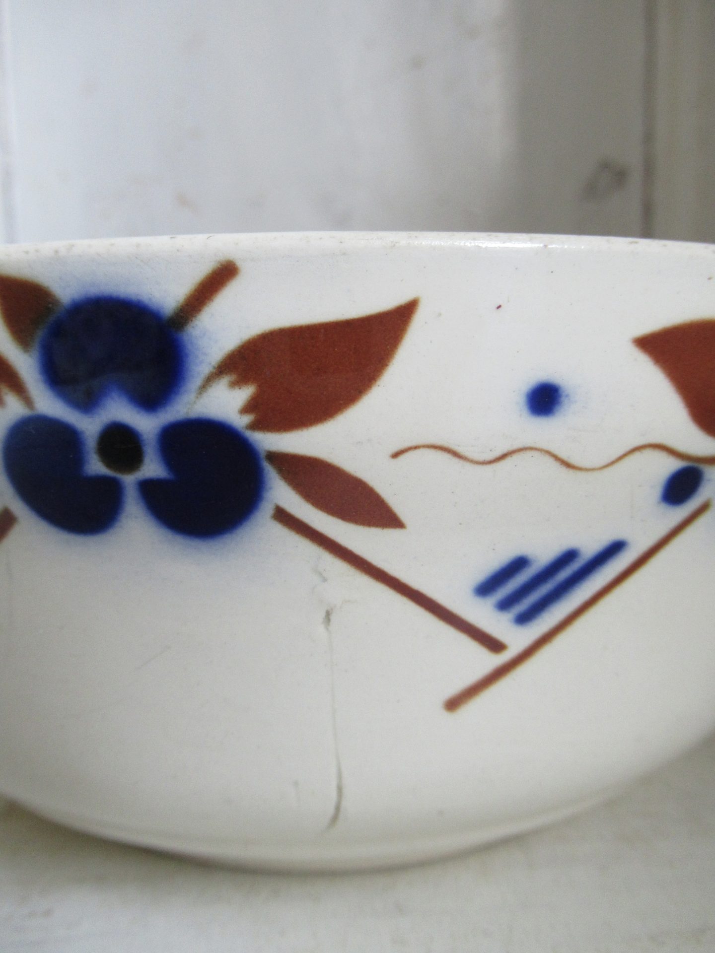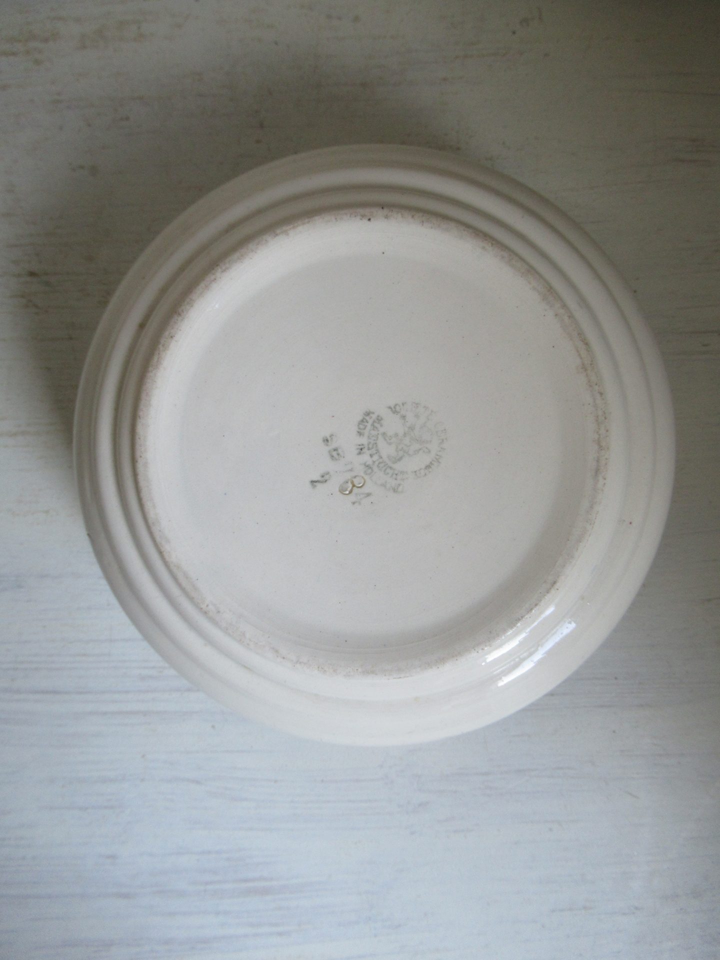 oude kom, Petrus Regout, heeft een ingebakken ‘snee’, alleen aan de buitenkant, is niet door (doorsnede 18 cm, hoogte 8 cm)