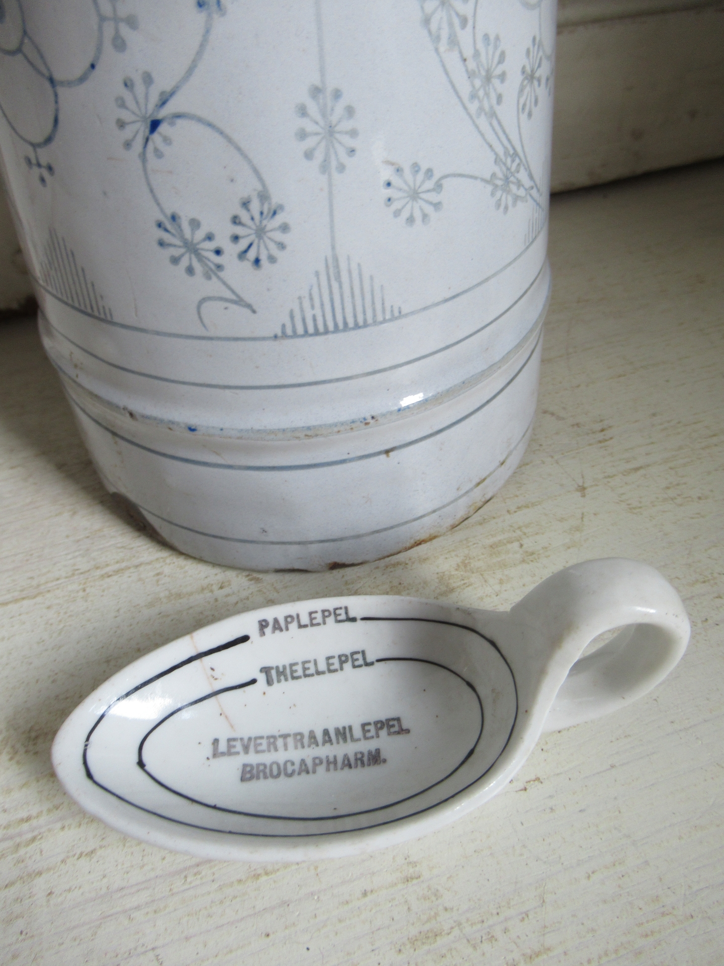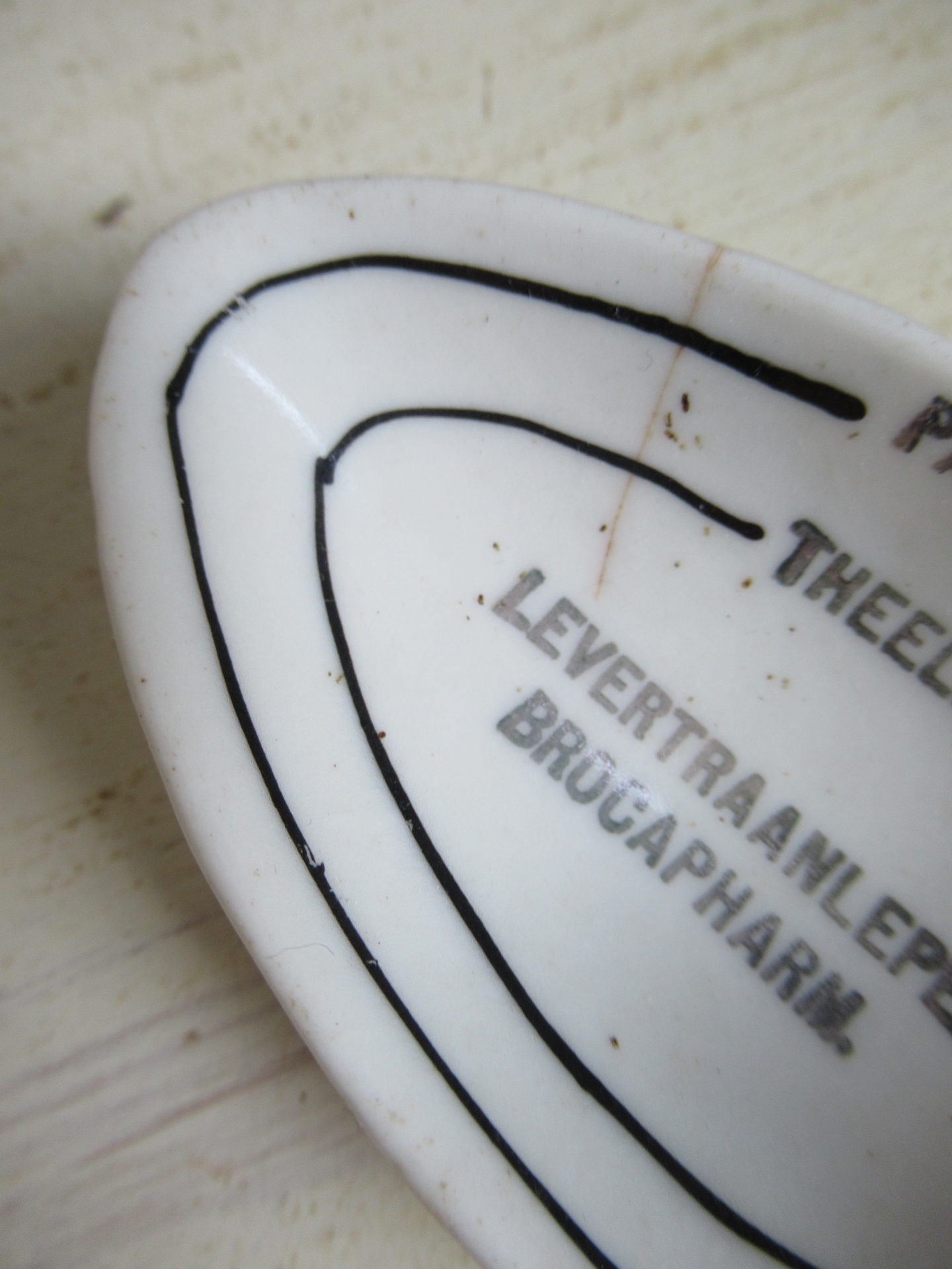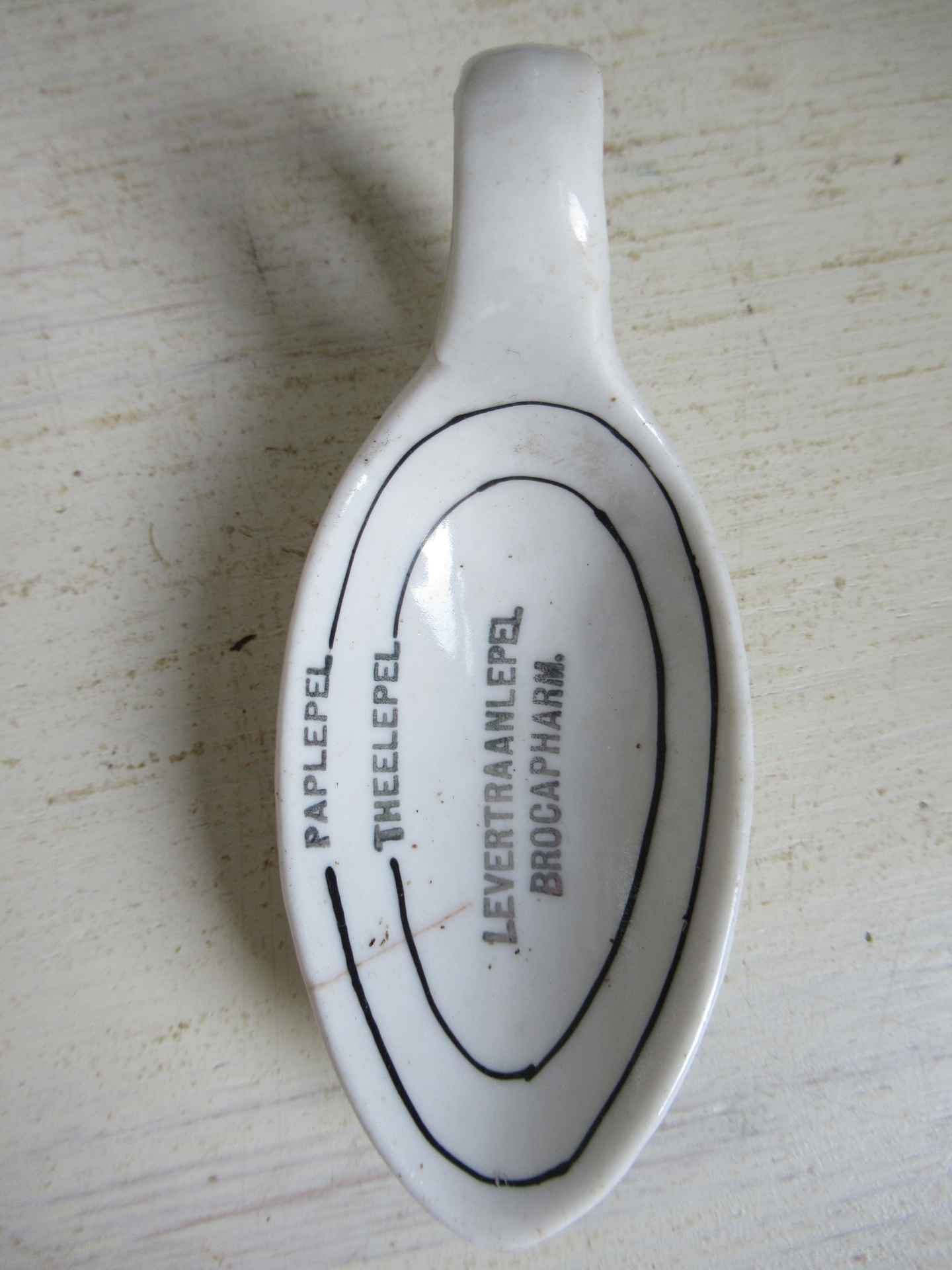 oude maatlepel, heeft een klein haarlijntje, maar die zie je alleen, is niet te voelen en maakt de lepel dus niet extra kwetsbaar (lengte 10 cm)