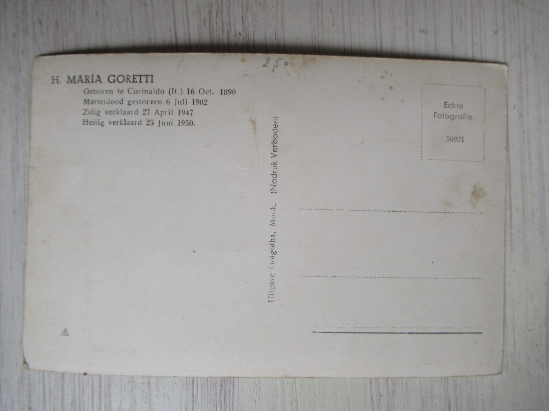 oud onbeschreven ansichtkaart, Heilige Maria Goretti (14 bij 9 cm)