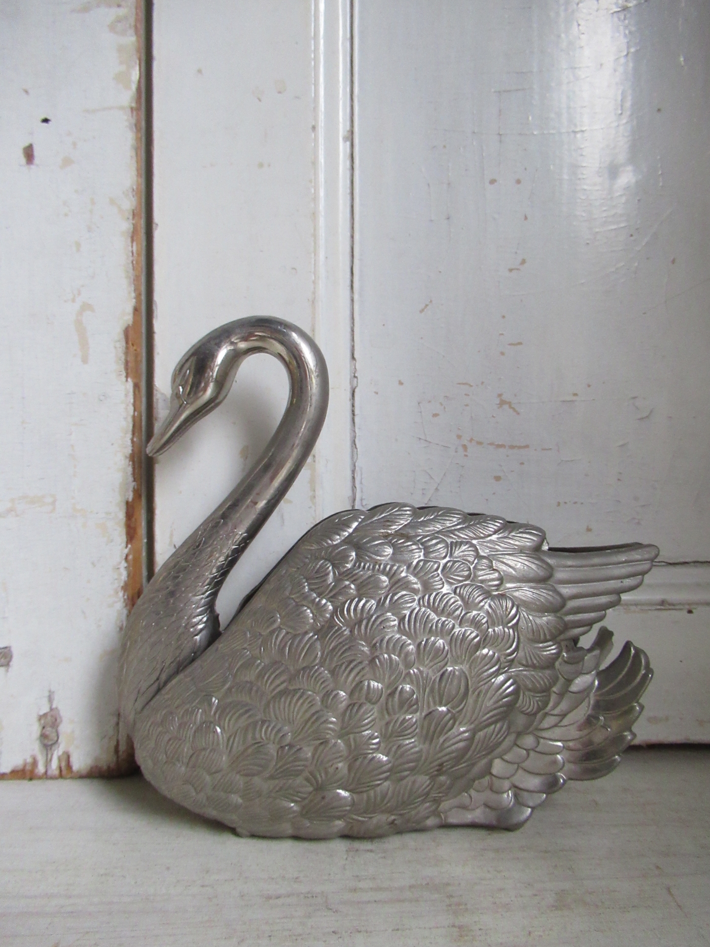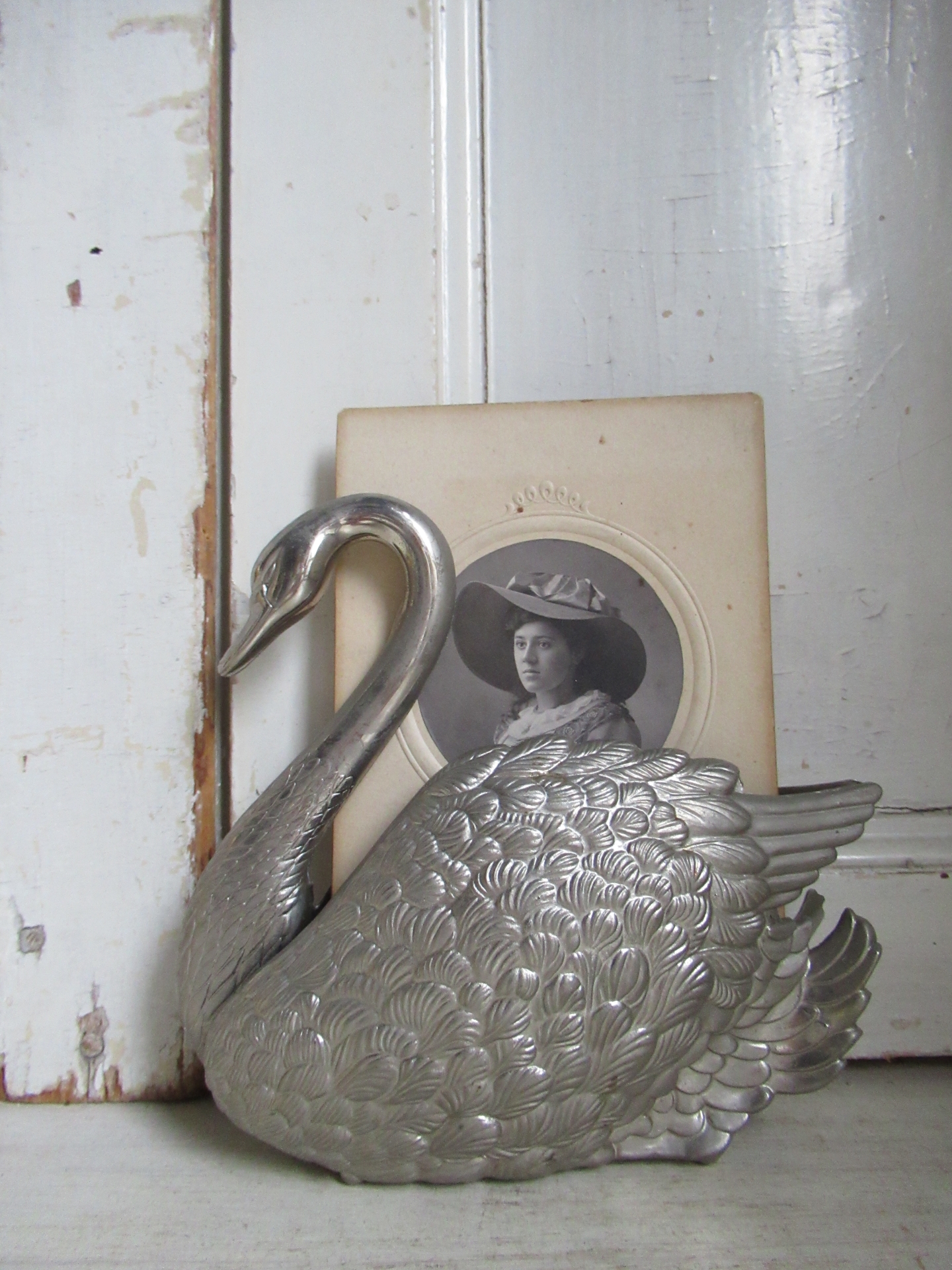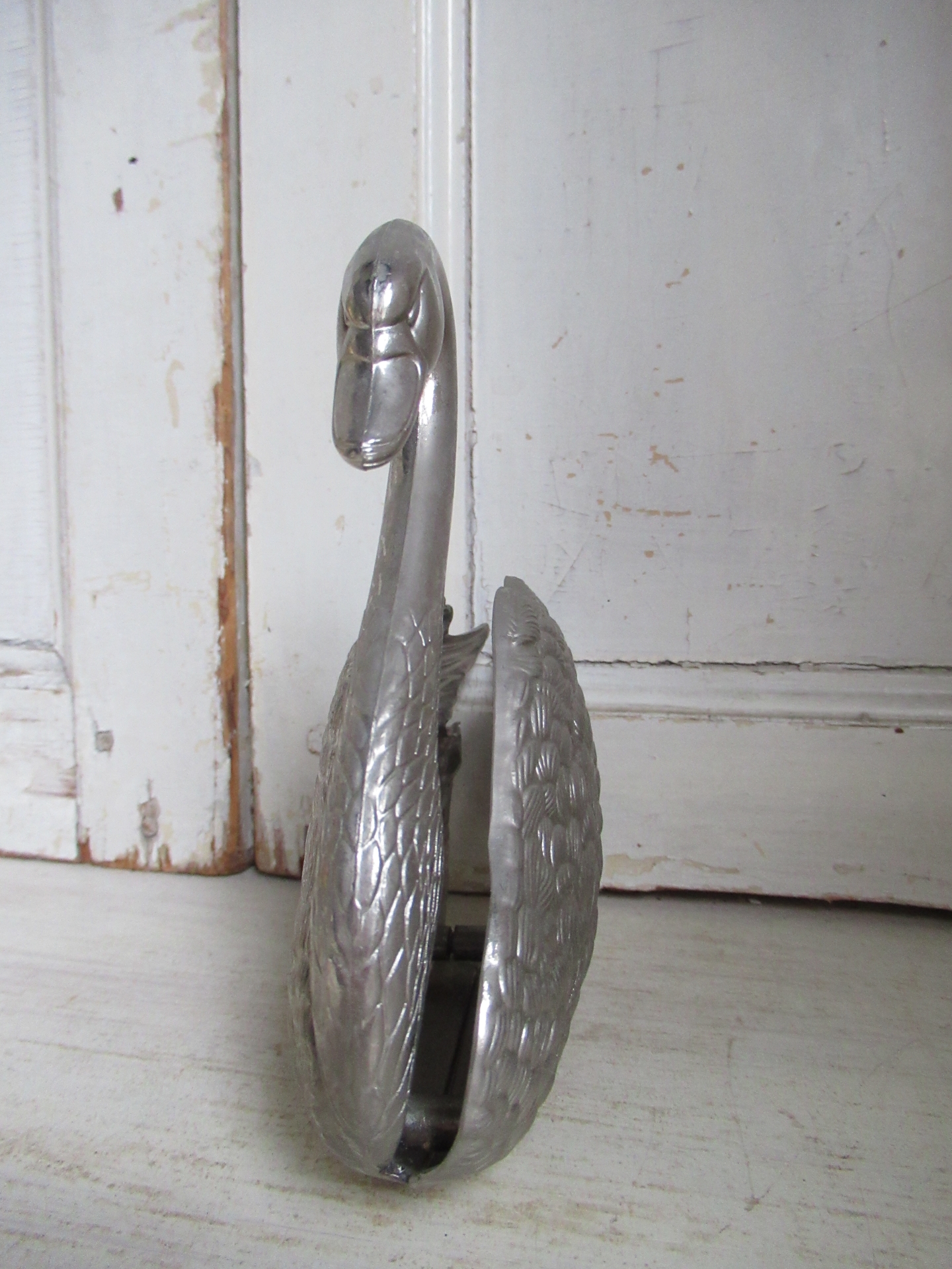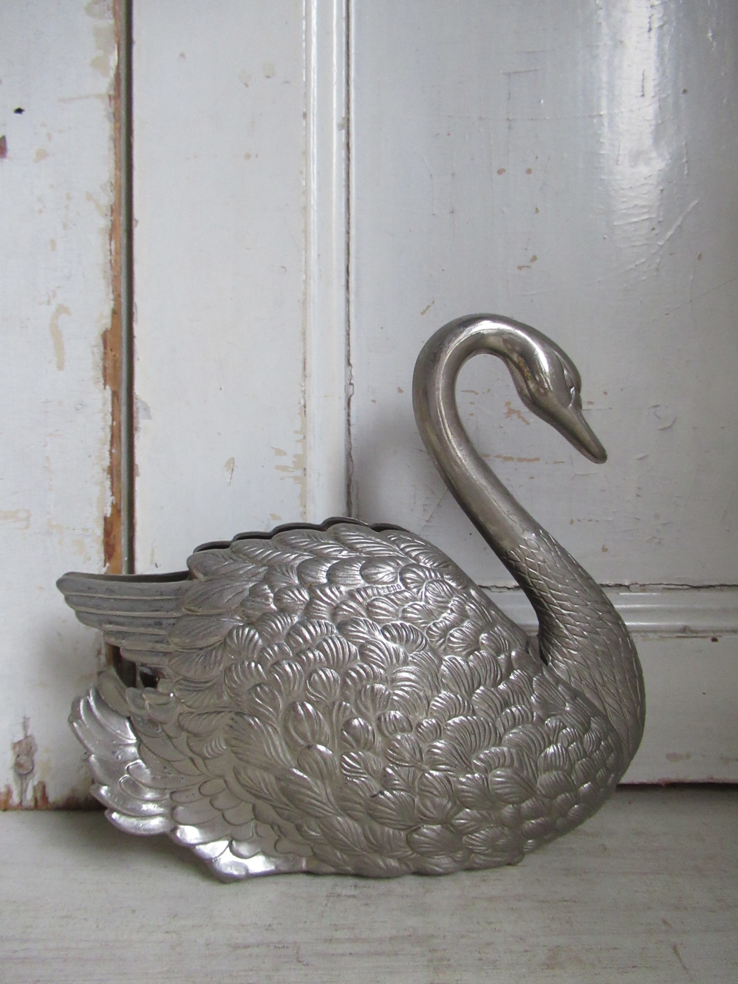 oude servethouder, zwaan, ook te gebruiken als brievenhouder, bijvoorbeeld (18 cm lang en 16 cm hoog)