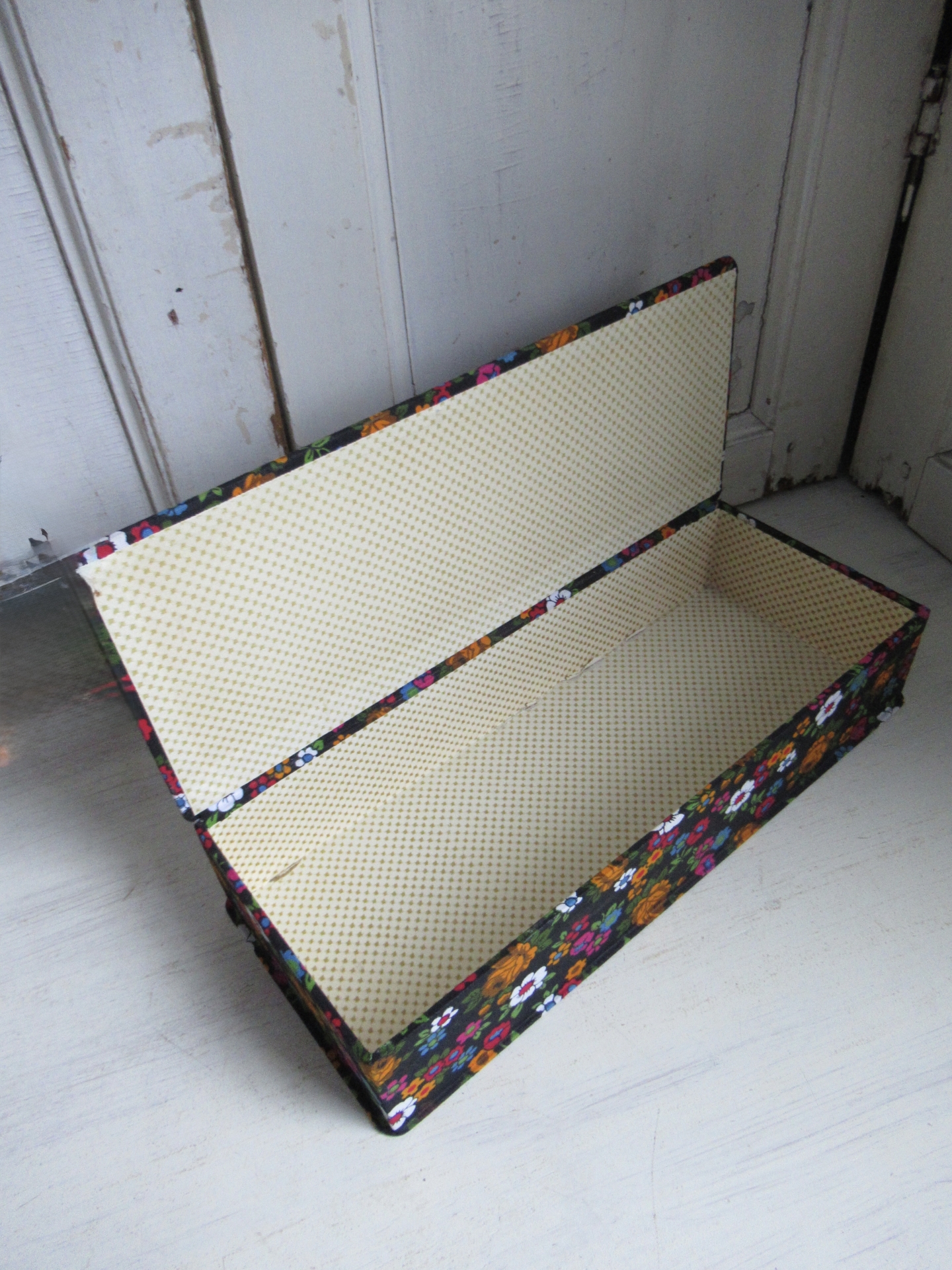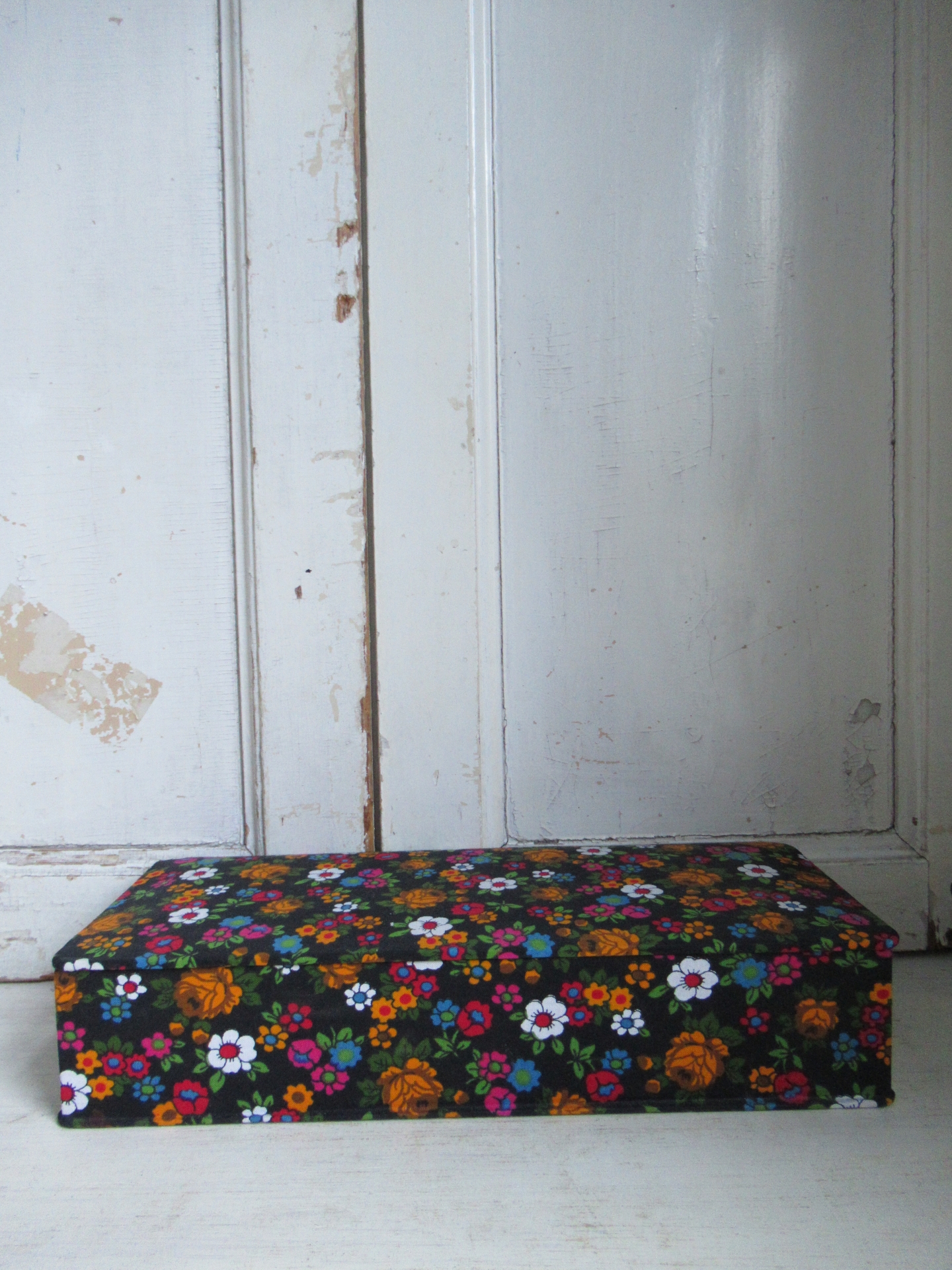 oude stoffen (handschoenen-) doos (35 bij 14,5 cm, hoogte 7 cm)