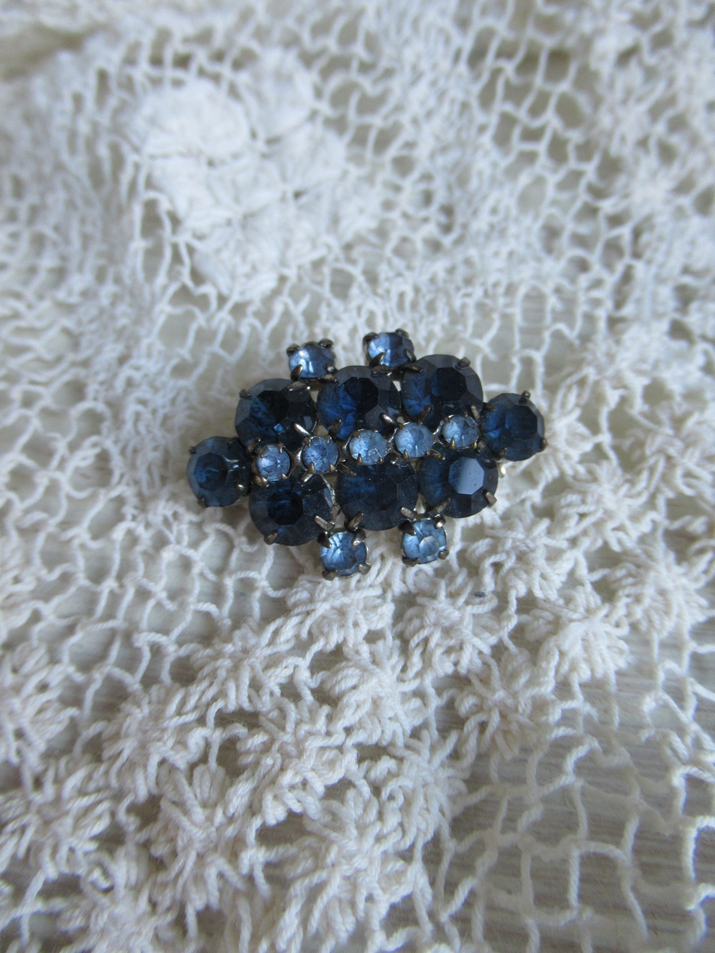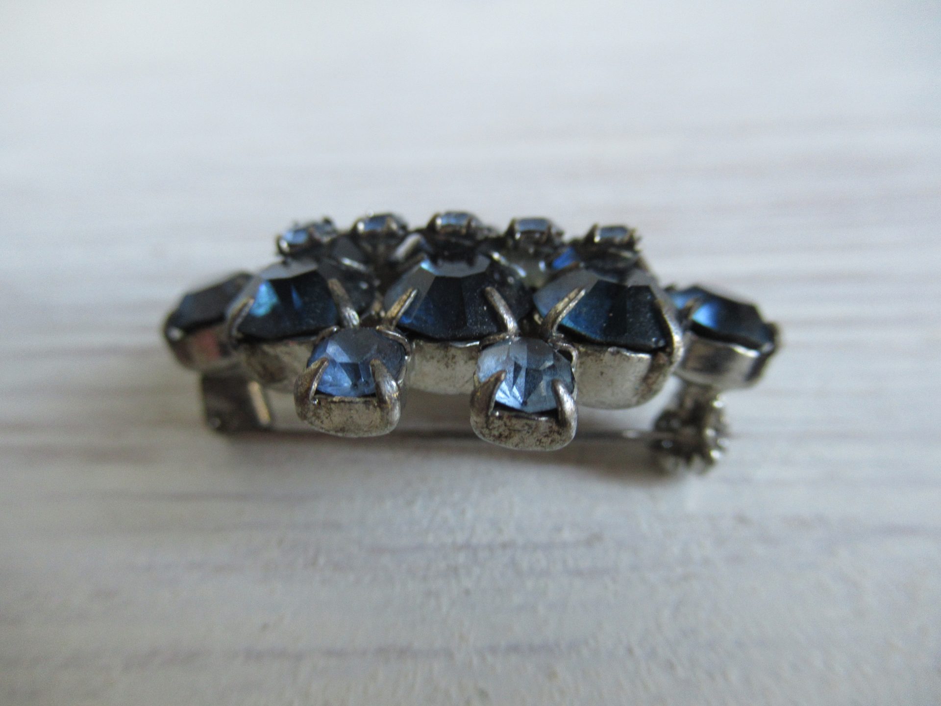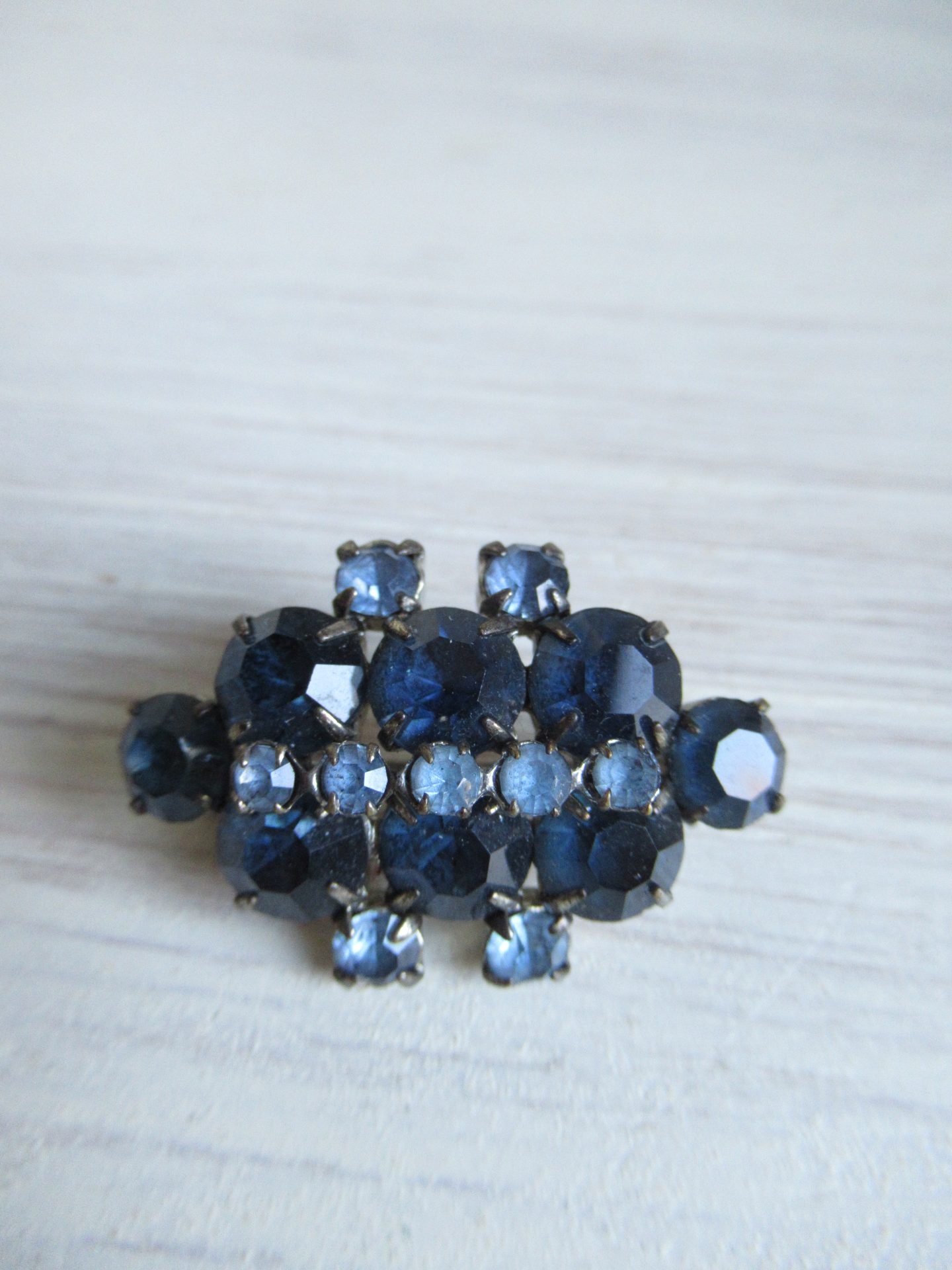 oude strass broche, 2 kleuren blauw, met veiligheidssluiting (3,5 bij 2,5 cm)
