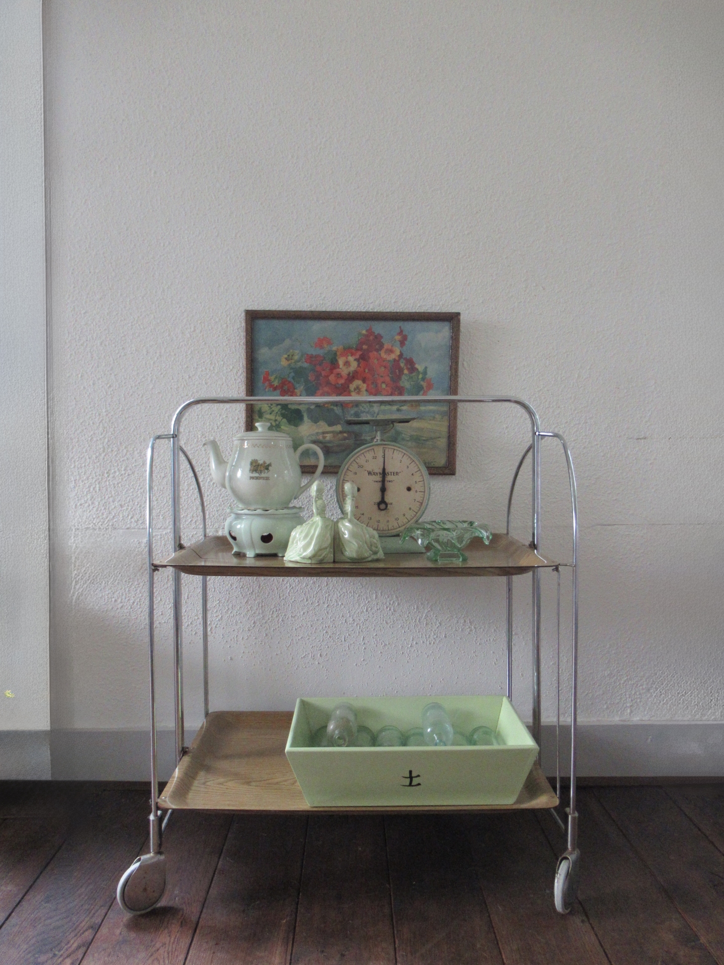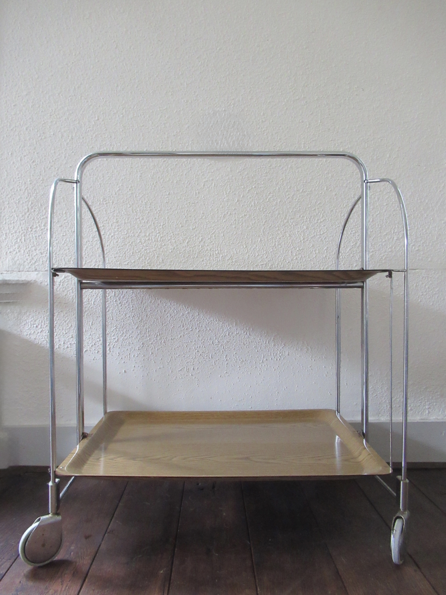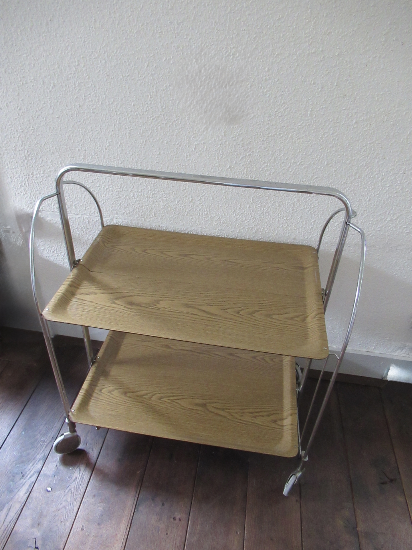 oude theewagen, vintage, half en geheel opklapbaar (69 bij 42 cm, hoogte 80 cm)