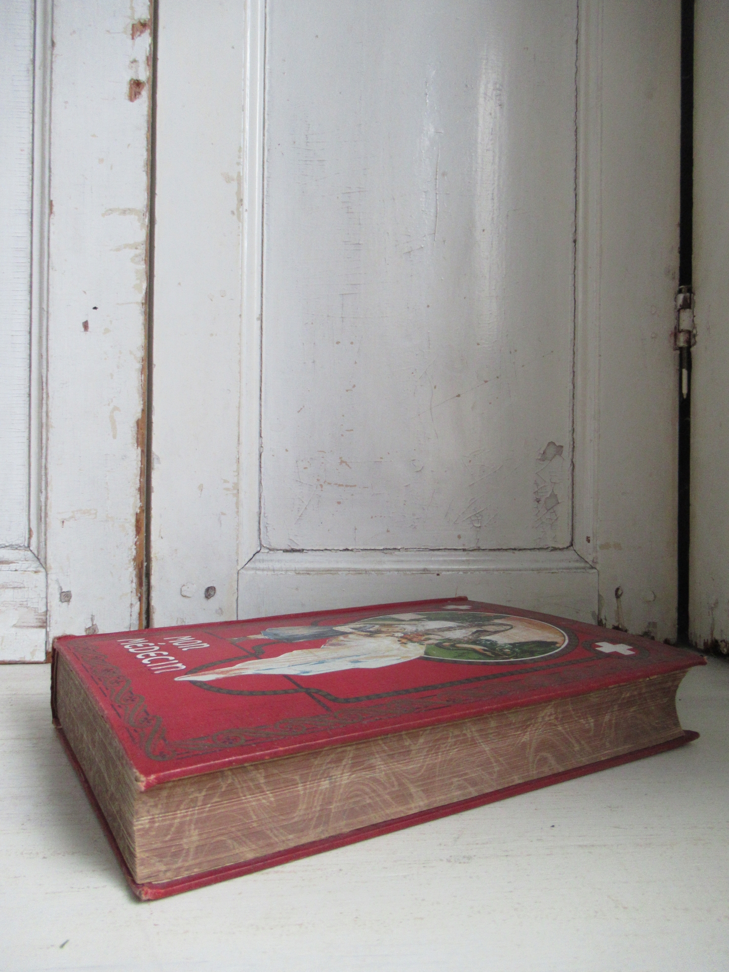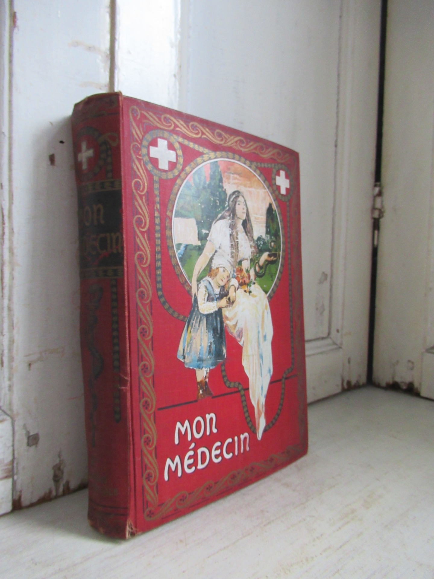 prachtig antiek Frans boek, Mon Médecin, Paris 1907, mooie kaft, dik boek met veel tekst en af en toe een afbeelding, 596 pagina’s (25 bij 18 cm, 4 cm dik)