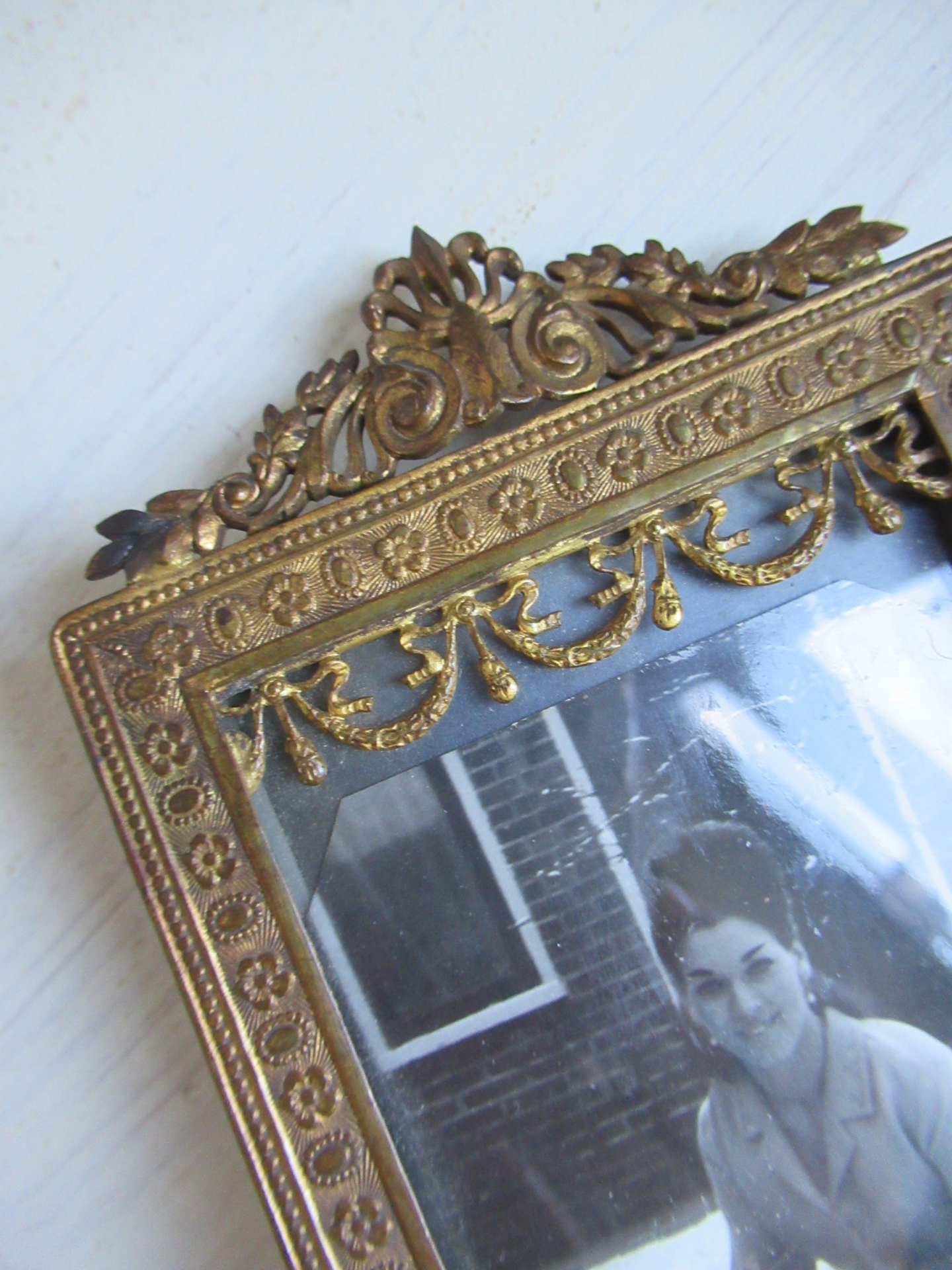 prachtig oud Frans fotolijstje (14 cm hoog, 10 cm breed, ruimte voor afbeelding 9 cm hoog en 5 cm breed)