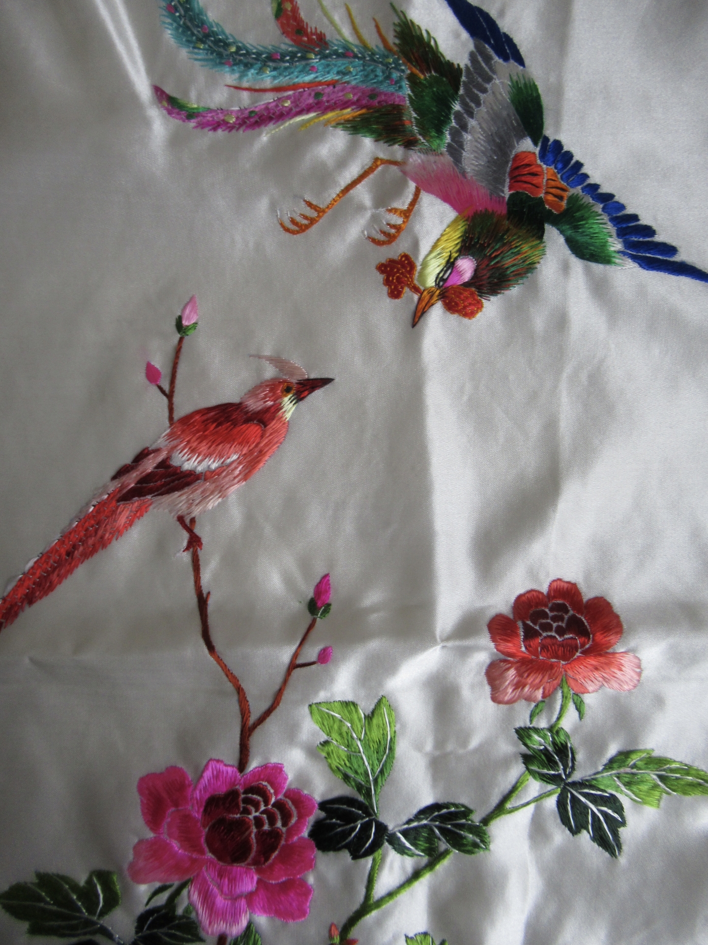 geborduurd lapje, zijde?, leuk om een kussen van te maken, bijvoorbeeld (48 bij 32 cm)