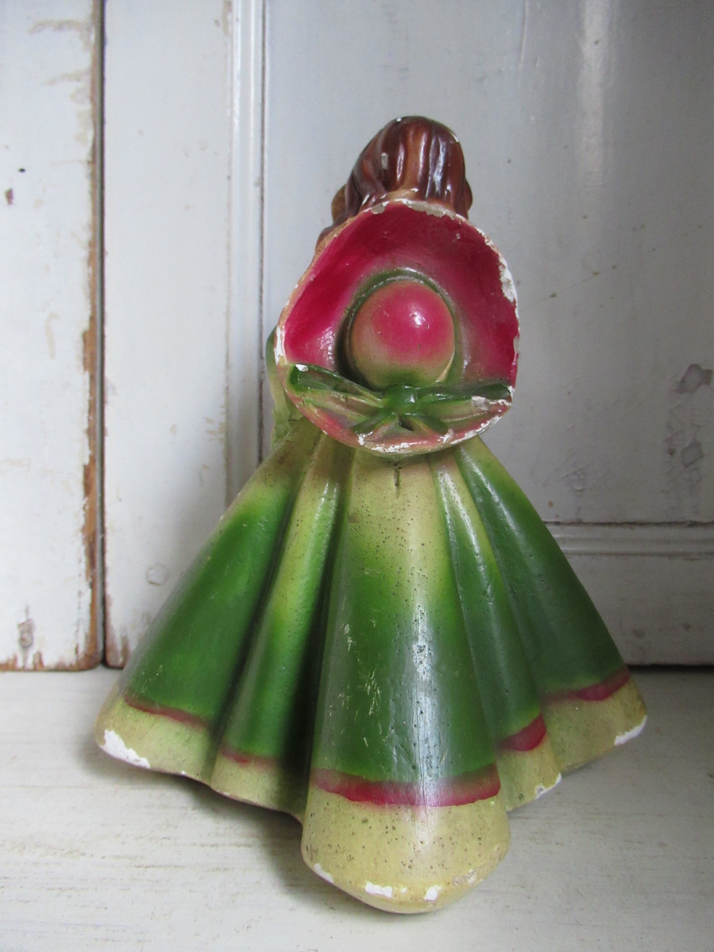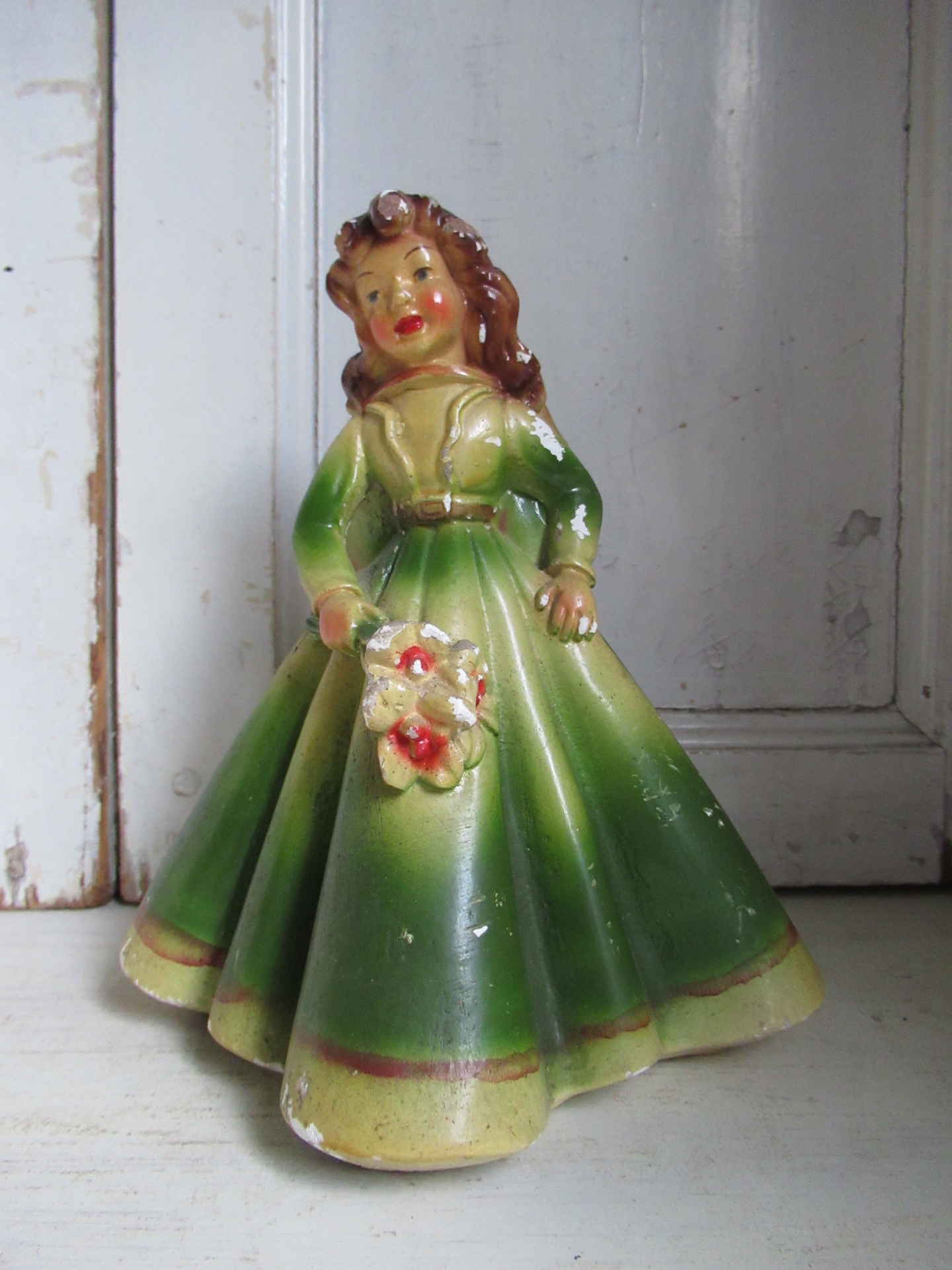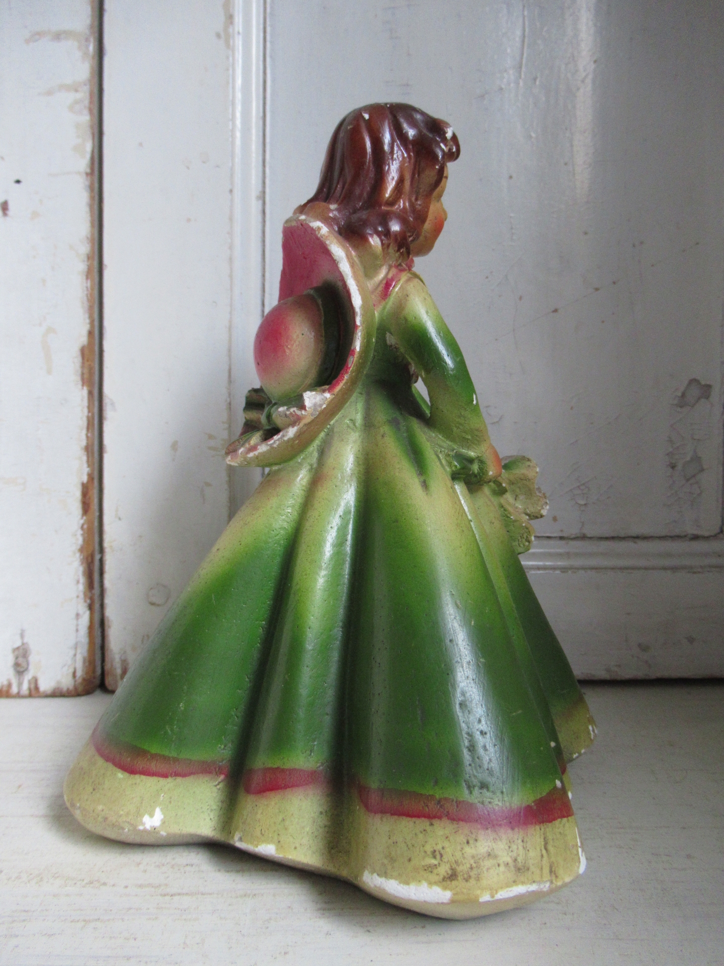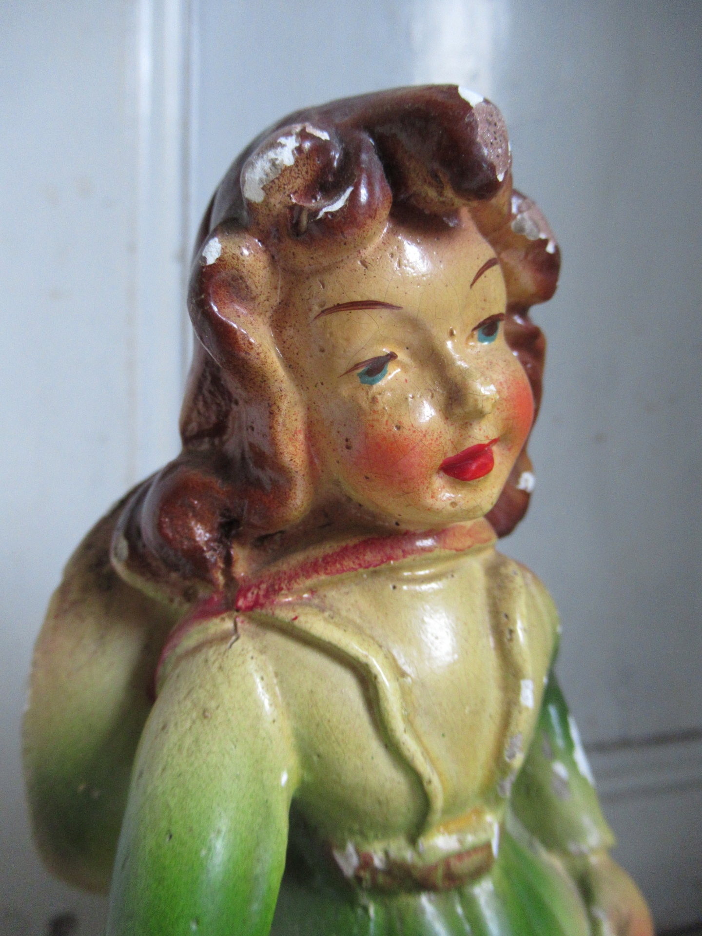 schattig oud Frans beeldje, gips, mist op meerdere plekken kleine stukjes verf (hoogte 22 cm)