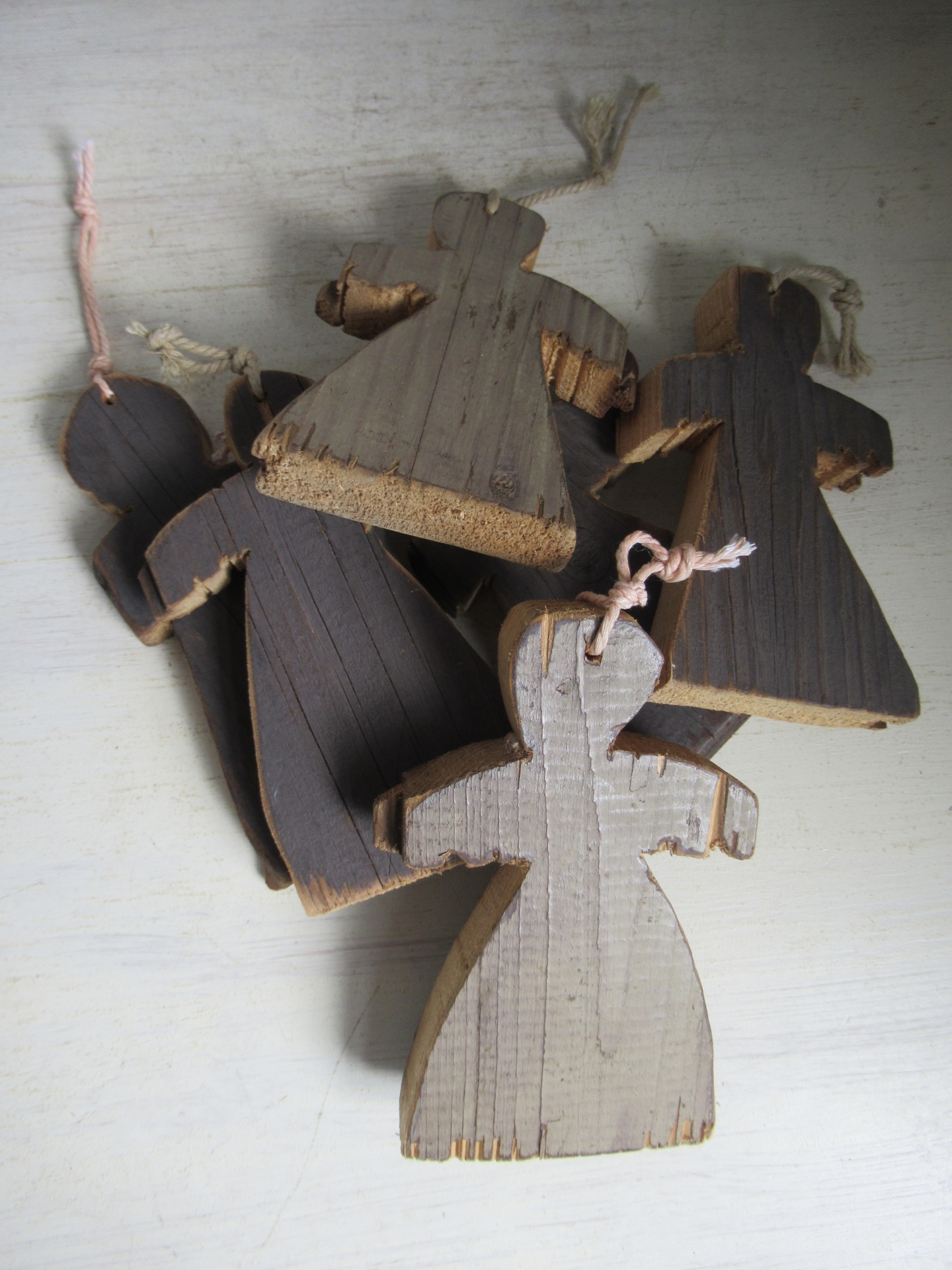 sloophouten engel, niet oud wel leuk, kan zowel hangen als staan, prijs is per stuk (hoogte ongeveer 15 cm)